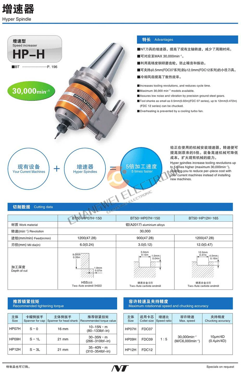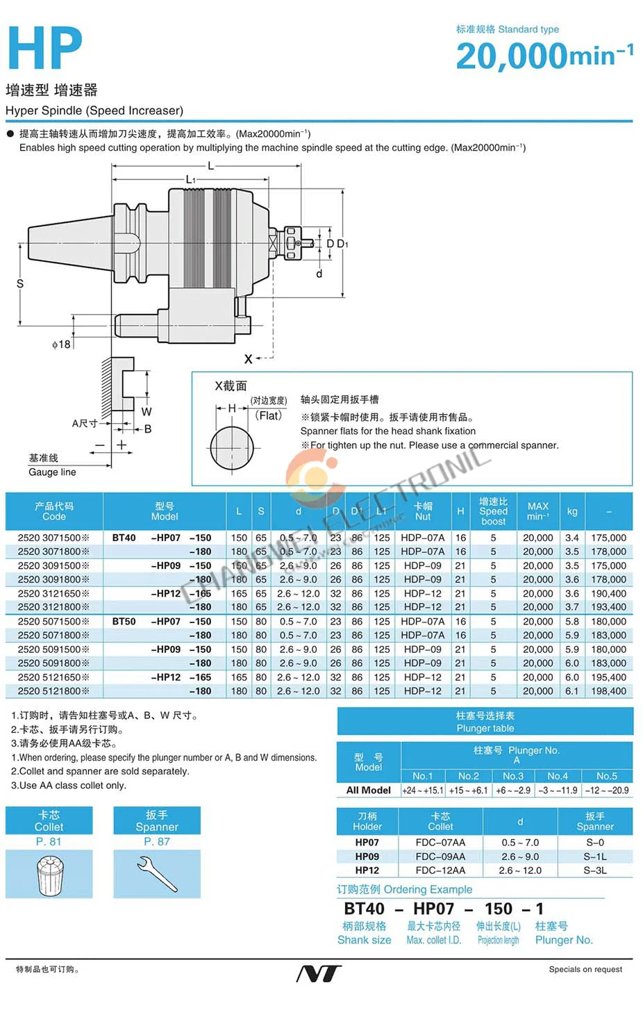 Japan NT brand spindle speed increaser tool handle CNC machine tool speed increase tool handle BT50-HP12-180 Max speed 30000rpm