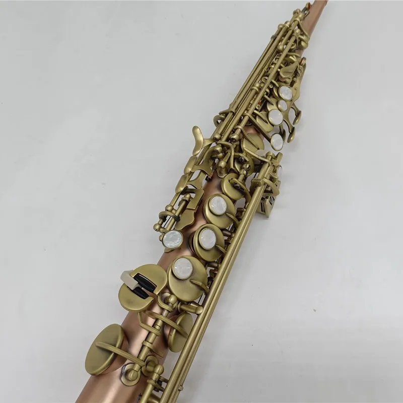 Japan S--901 Brass Straight Soprano Sax Saxophone Bb B Flat Woodwind Instrument Natural Shell Key Carve Pattern