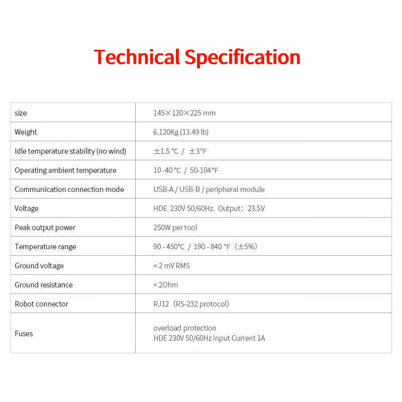 • HDE Heavy Duty Control Unit, its new power supply (SMPS) ensures high efficiency and increased performance on soldering applications that require large amount of heat.