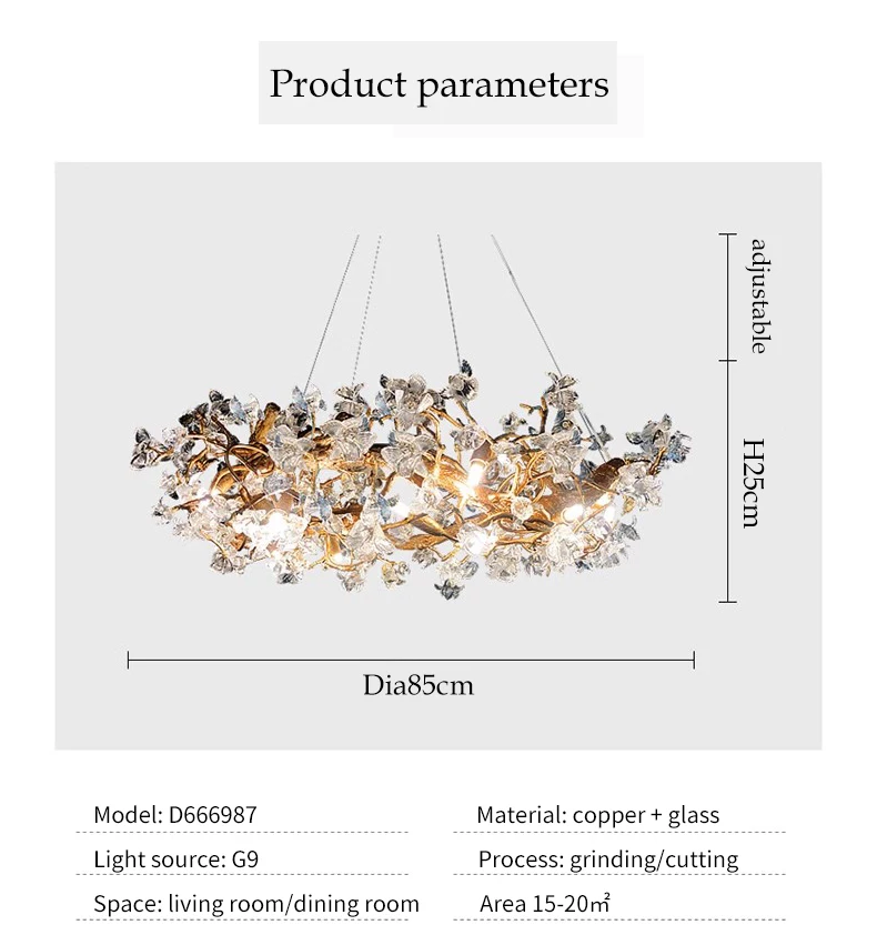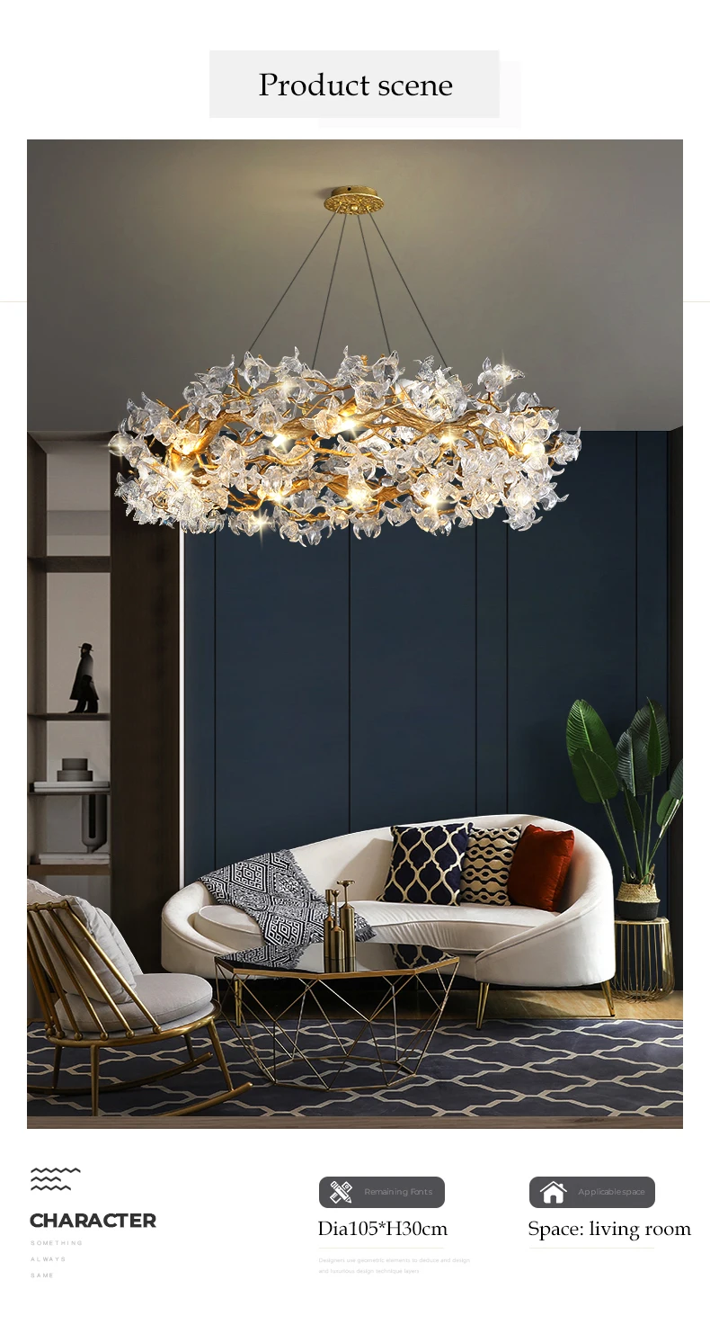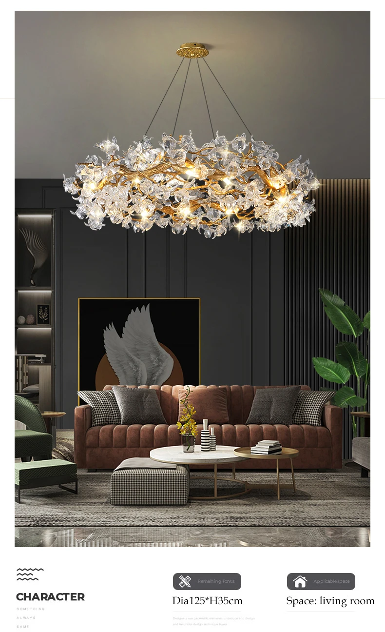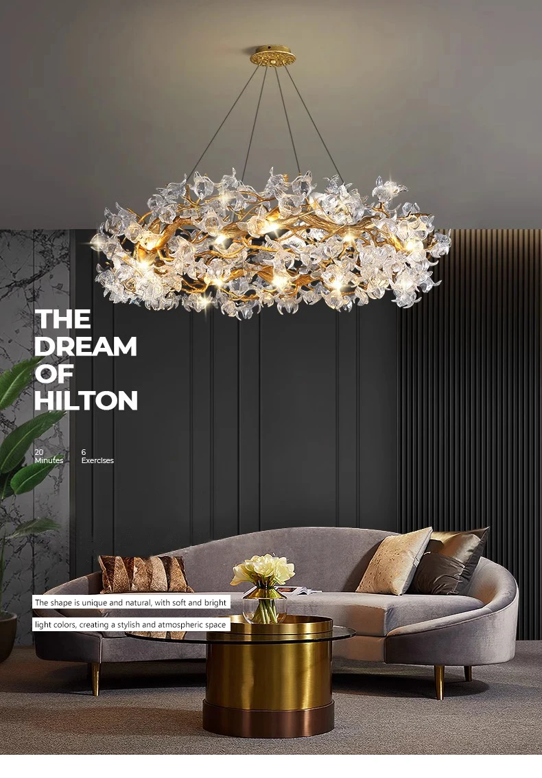 JMZM Modern light luxury crystal chandelier living room main lamp villa atmosphere round restaurant lamp flower bedroom lamp