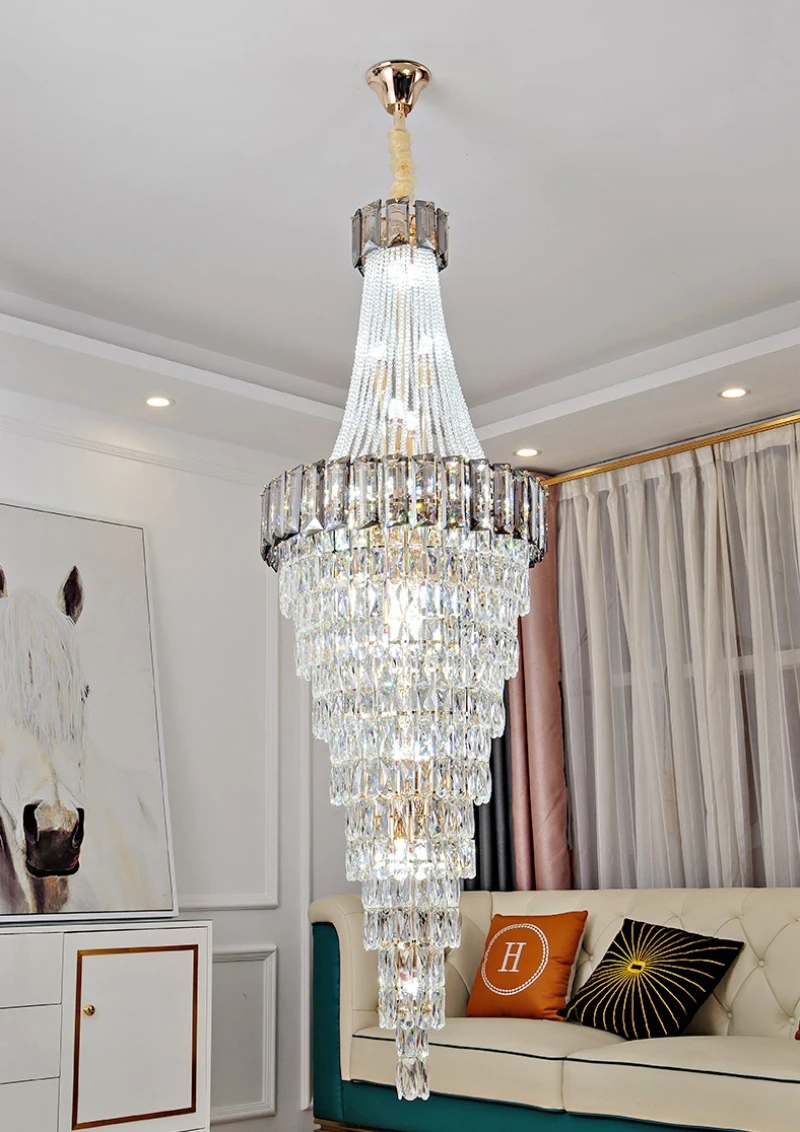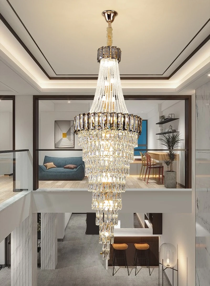 K9 Crystal chandelier American living room lamp luxury villa double staircase decorative lamp hotel lamps