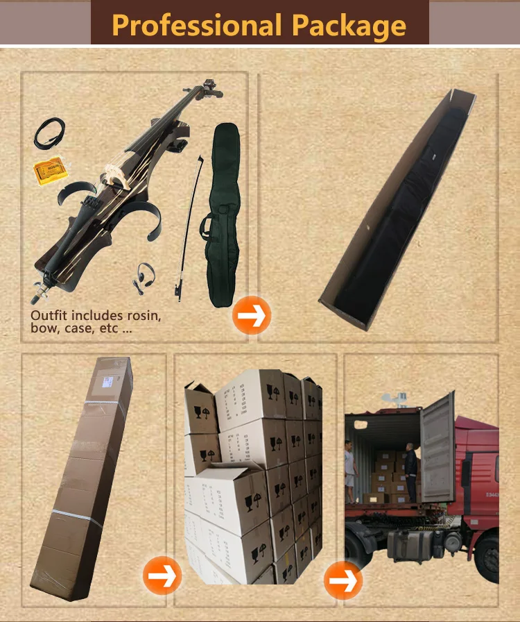 Please pay attention, the outfits include a soft bag, a cable and a bow. The rosin and earphone are not included because they can't be transported by air.
