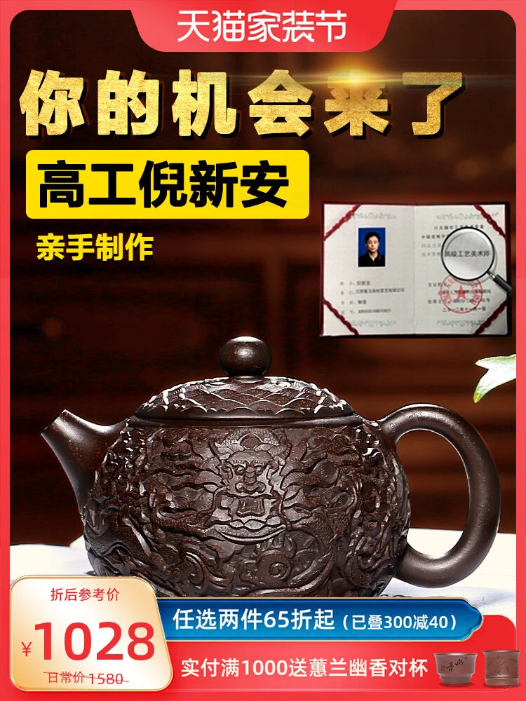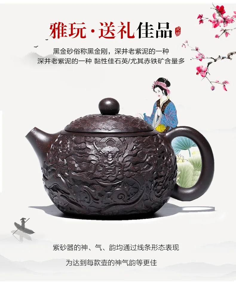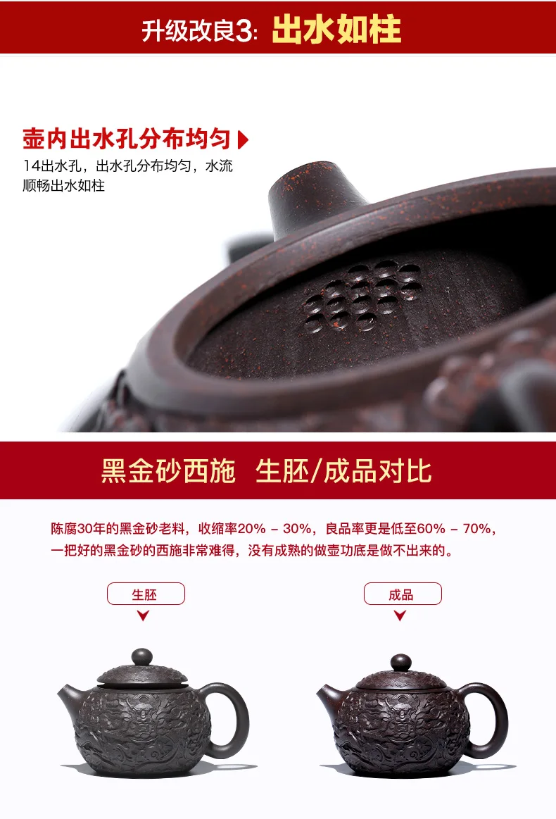 Large Capacity Yixing Purple Clay Pot, Pure Handmade Household Tea Set, Original Mineral Black Gold Sand Soaking