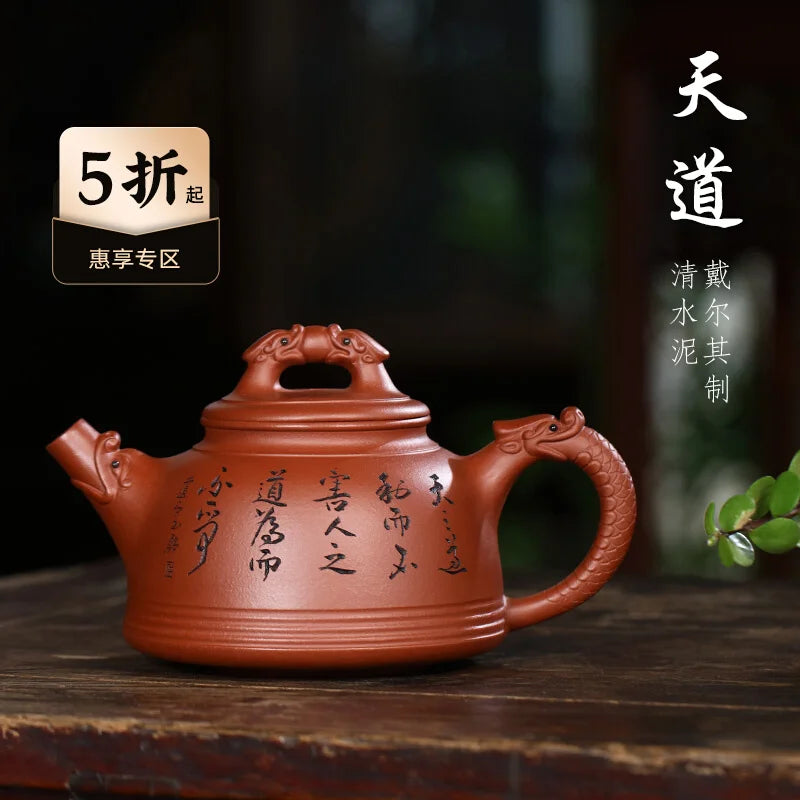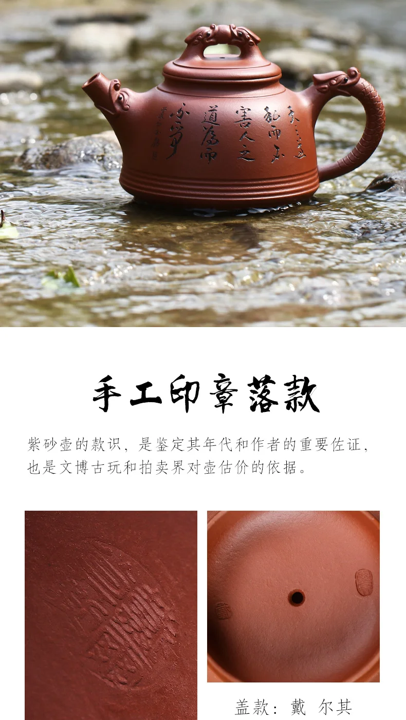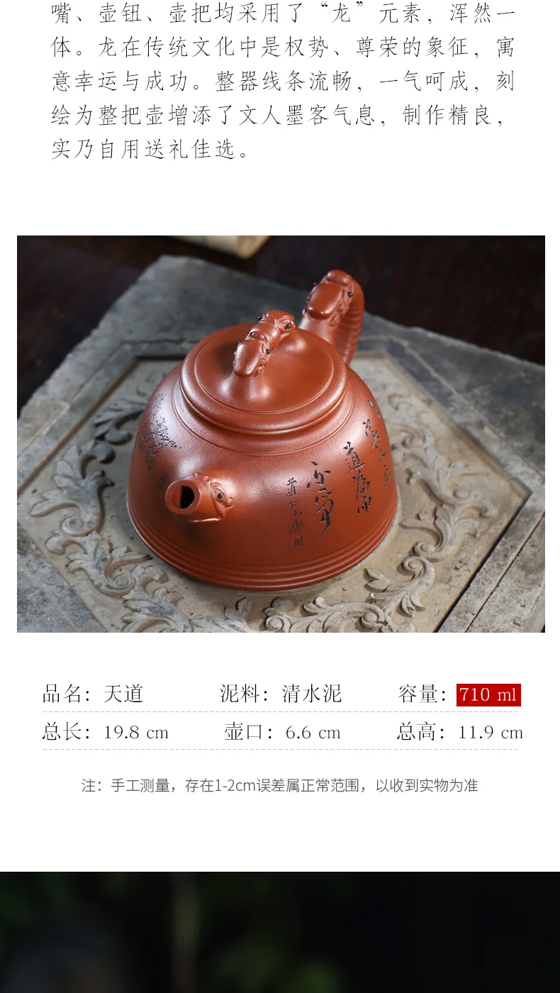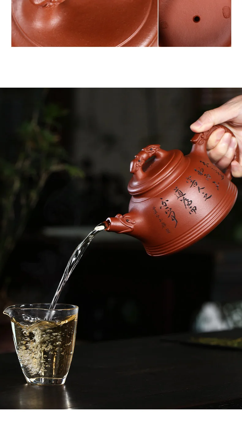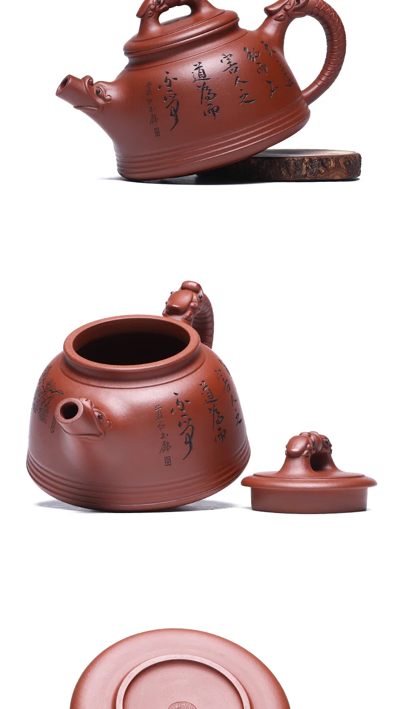 Large CapaCity Yixing PurPle Clay T, Pure Handmade Carved Tea Set, Raw Ore, Clear Cement, Single Pot, Tiandao