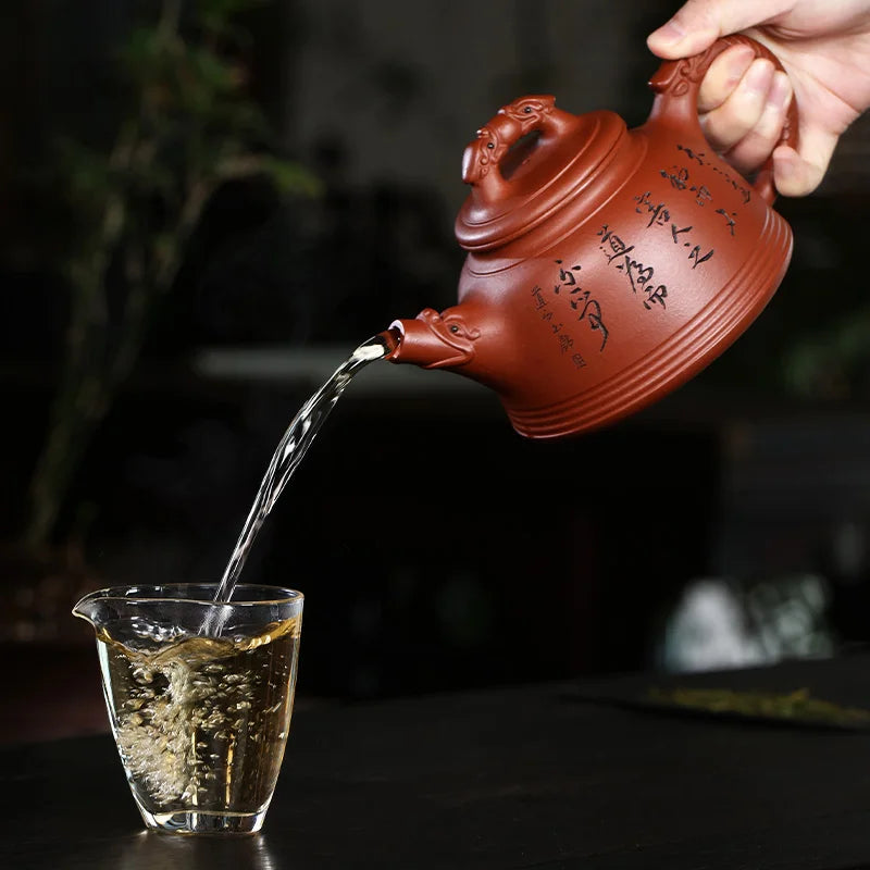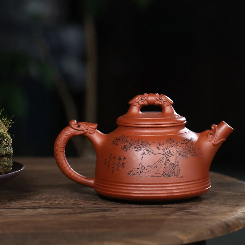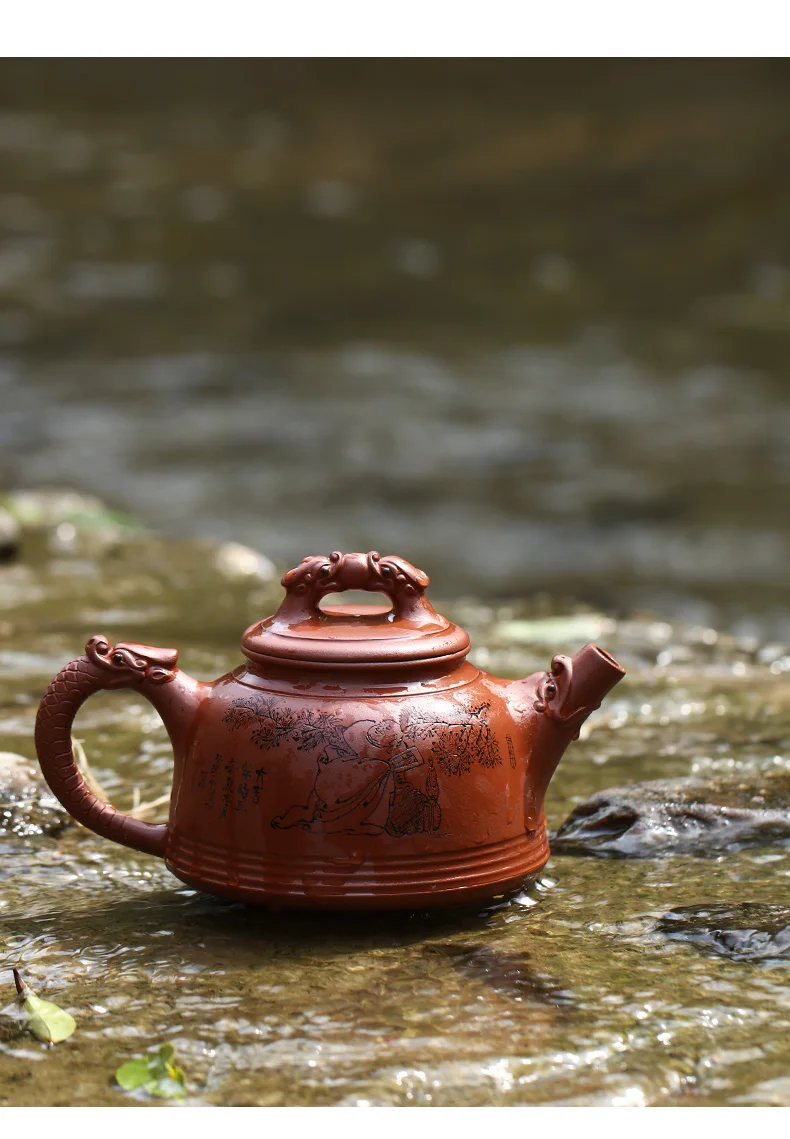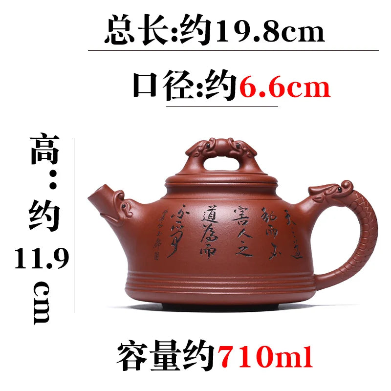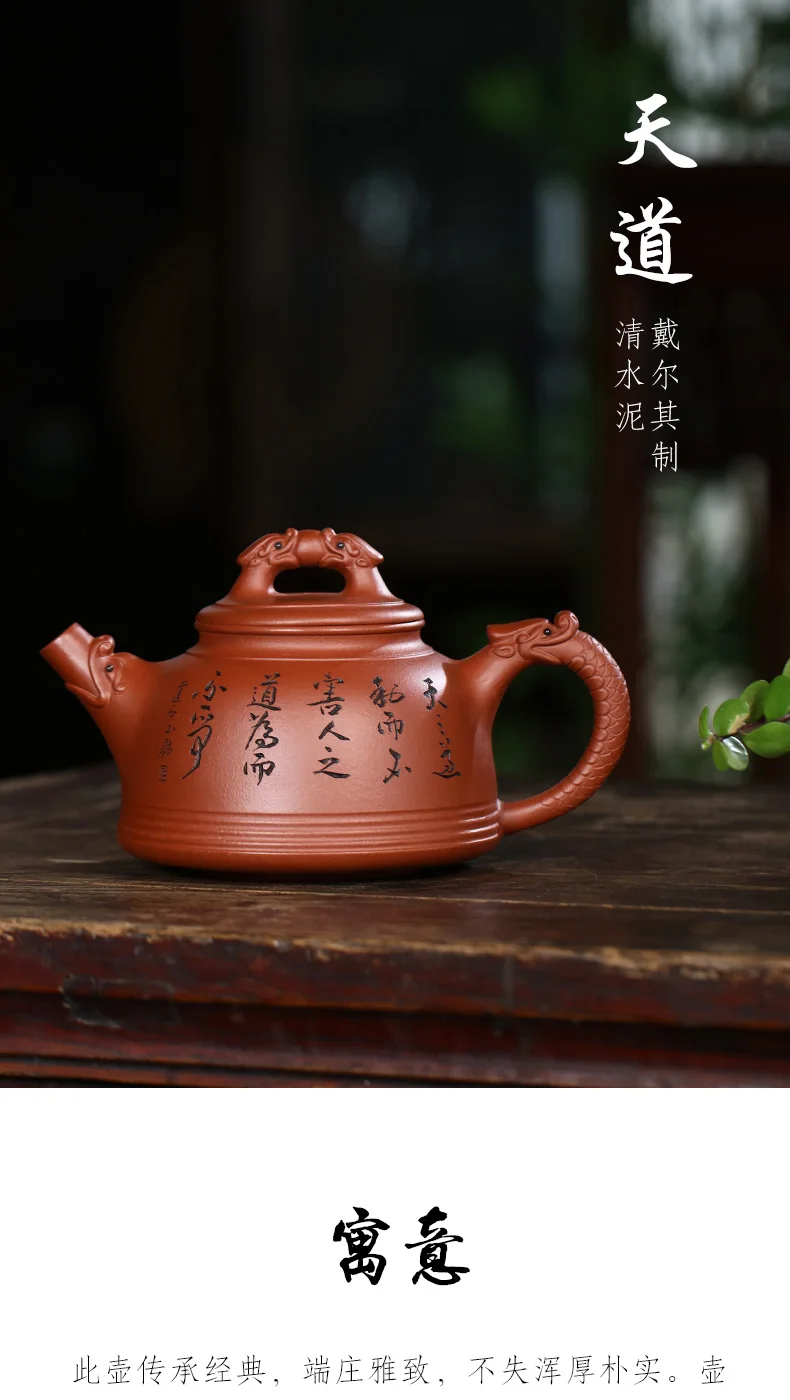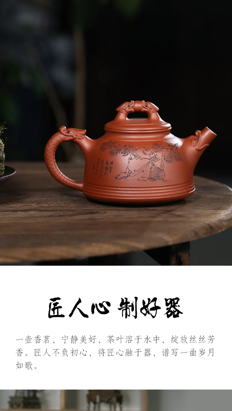 Large CapaCity Yixing PurPle Clay T, Pure Handmade Carved Tea Set, Raw Ore, Clear Cement, Single Pot, Tiandao