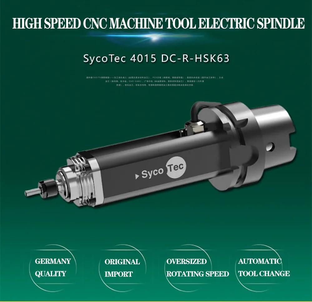 Latest German SycoTec CNC machine tool spindle 4015 DC-R-HSK63 high-power high-speed spindle for lathe machining center spindle