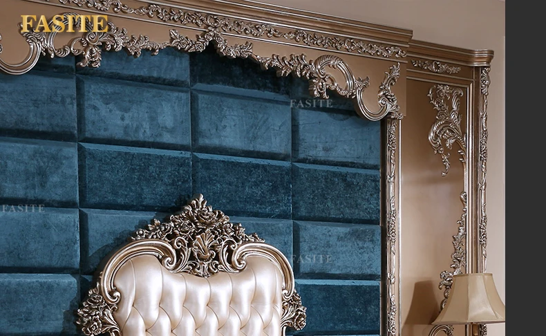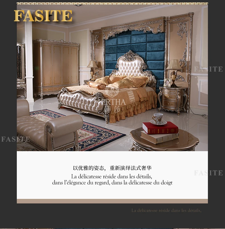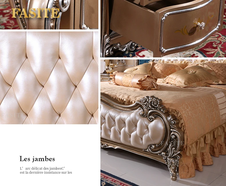Leather double bed 1.8M luxurious European solid wood master bedroom bed neoclassical wedding bed