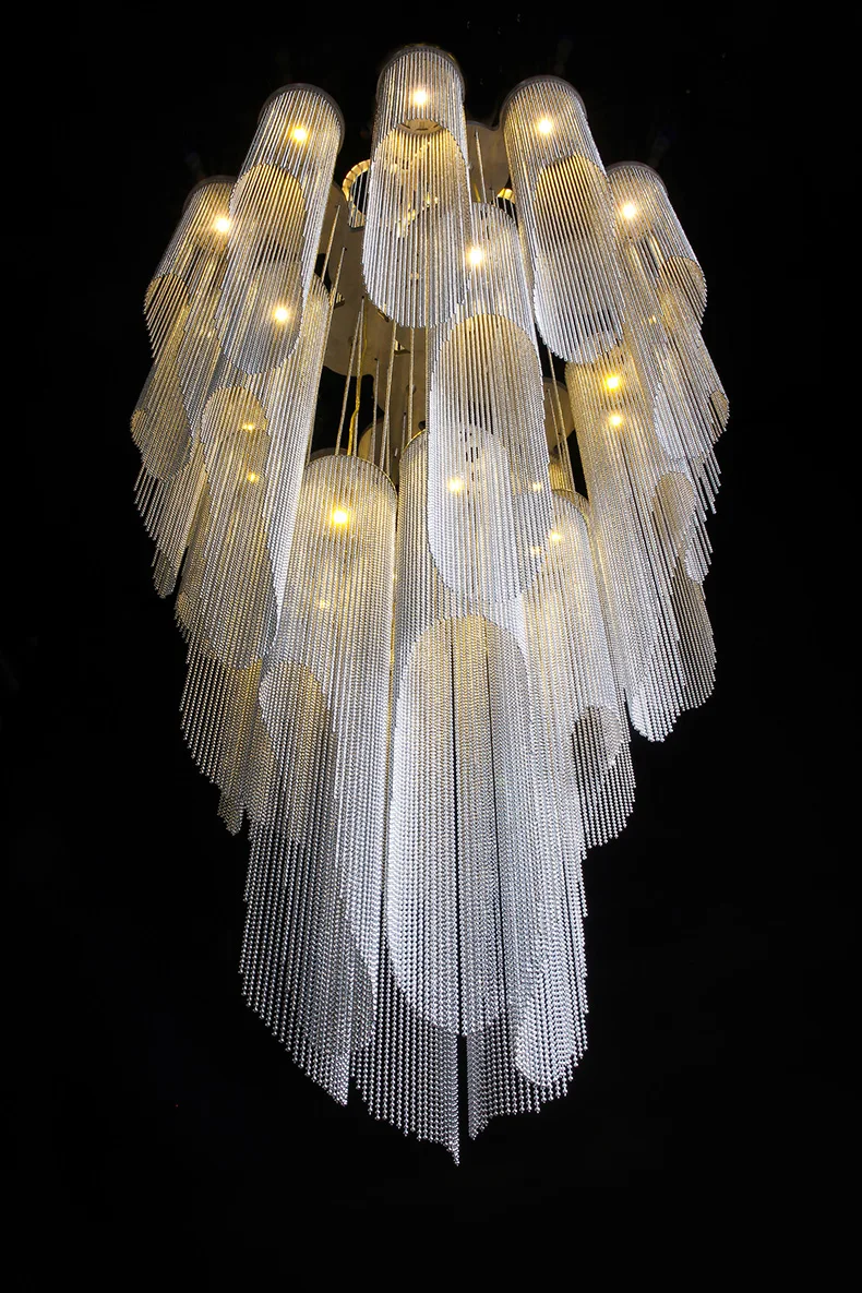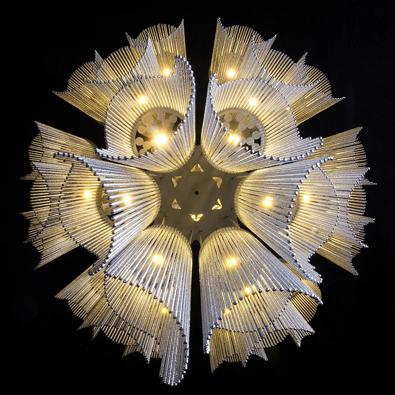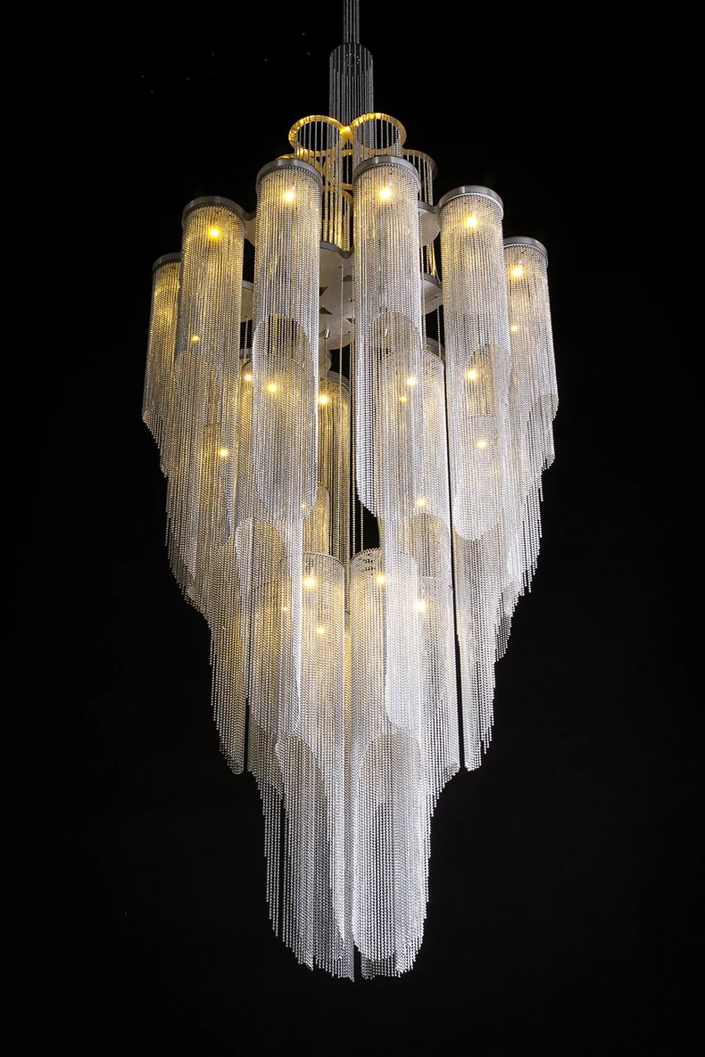 LED luxury aluminum tassel chandelier for the villa living room rotating staircase decorative chandelier custom engineering lamp