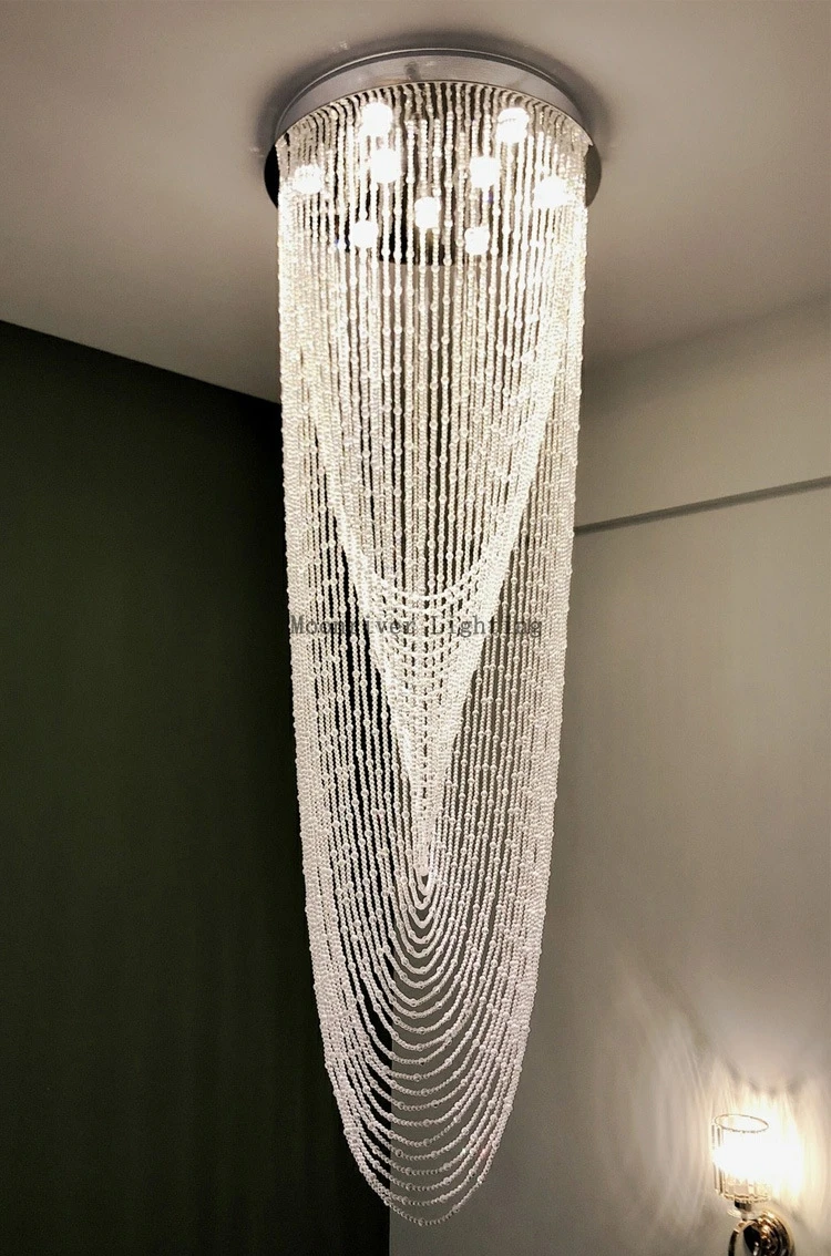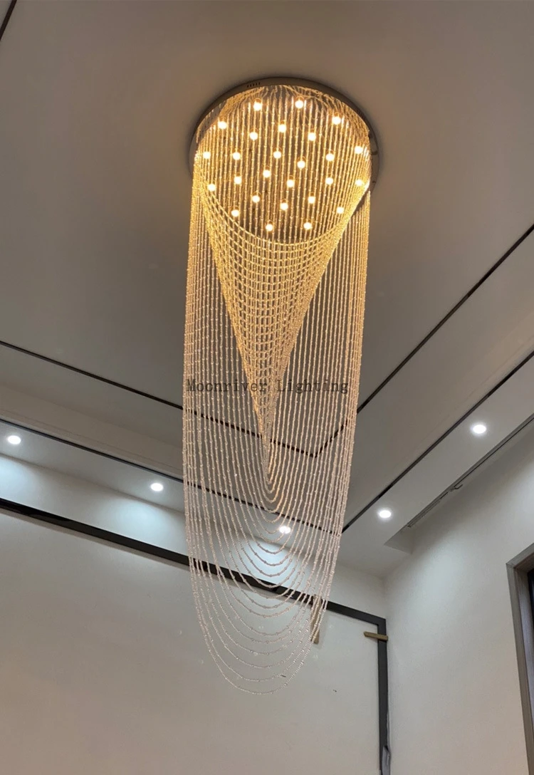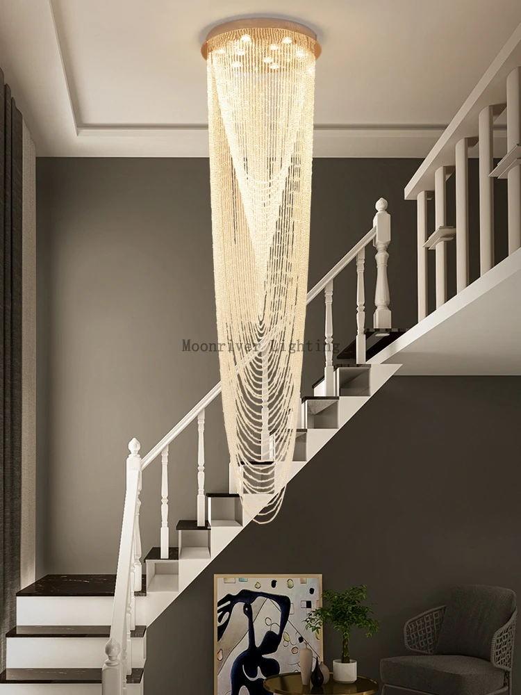 LED pendant lamp Personalized Modern Nordic Crystal Long Staircase Villa Compound Bead Curtain light fixtures for celling lights