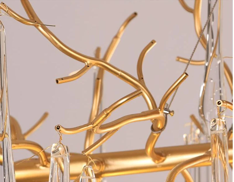 LED pendant lamps luxury modern Branch Crystal Chandelier Lighting Golden Restaurant Warm Wedding Duplex Villa Home Decor lights