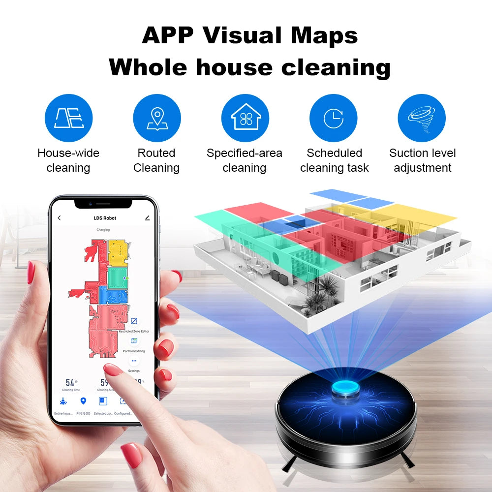 Liectroux/LILIN XR500 Robot Vacuum Cleaner,Laser System,6500Pa,Smart Home Appliance,Restricted Area Map,Zone Cleaning for Carpet