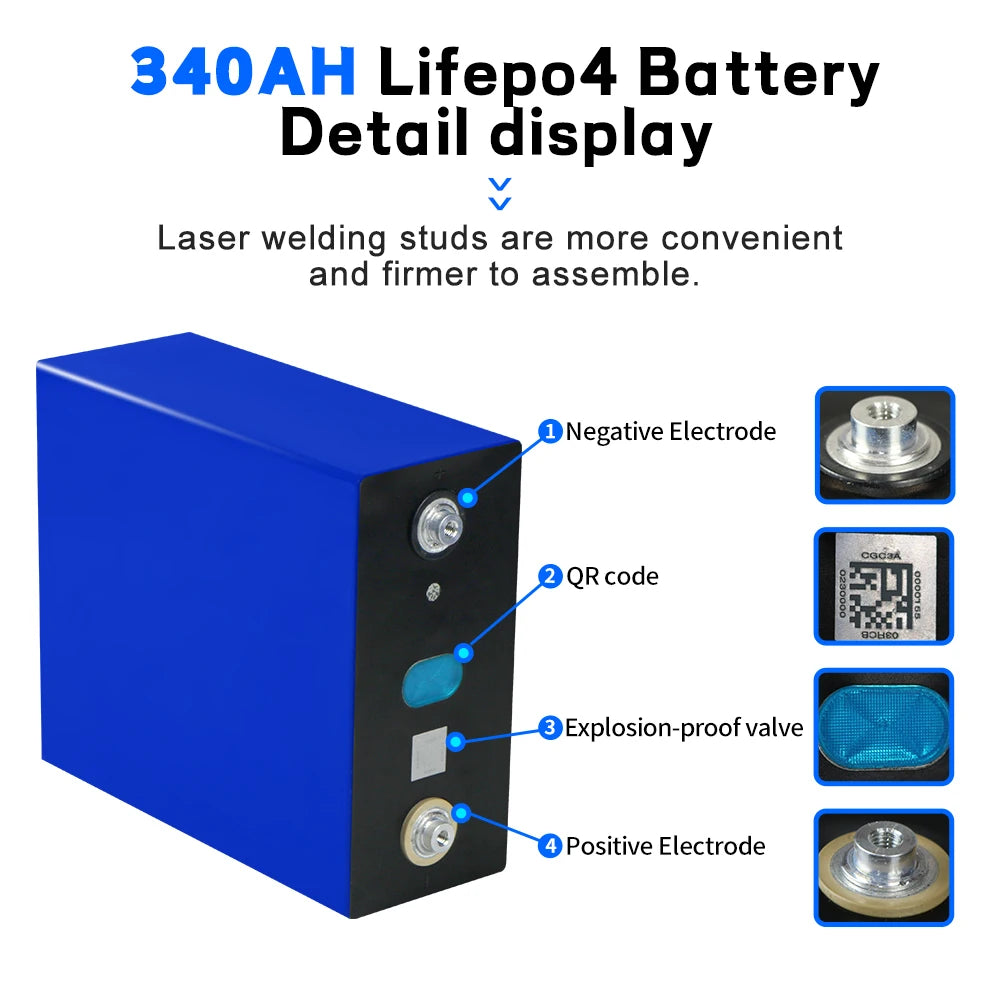 Lifepo4 340Ah Battery 3.2V Deep 6000 Cycles lithium Iron Phosphate DIY Rechargeable RV EV Boats Home Energy Storage Cells NO TAX