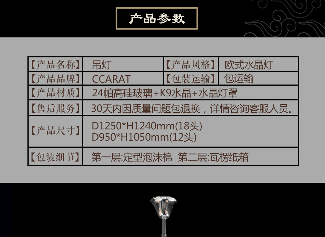 Materials:stainless steel, crystal,glass