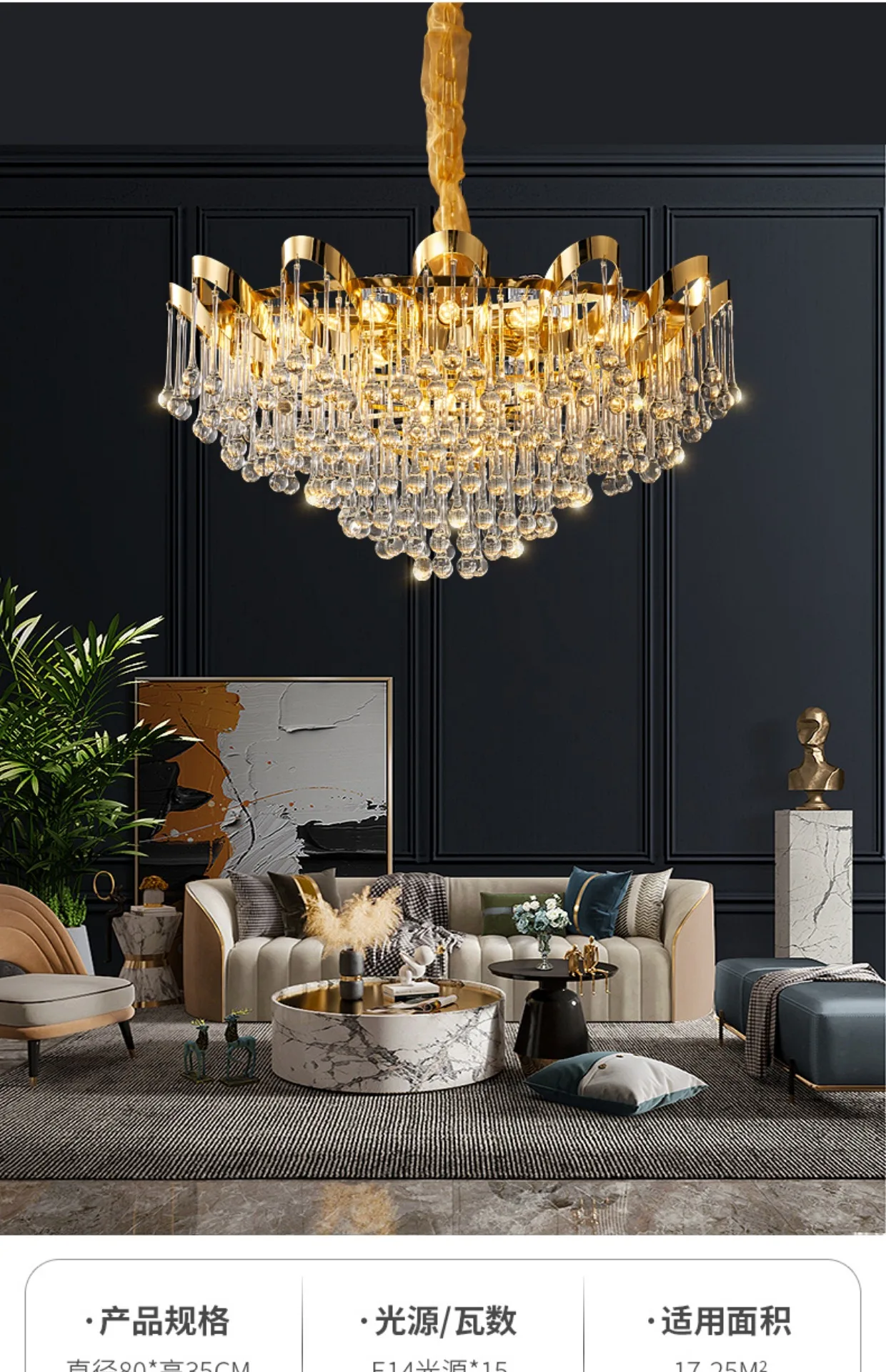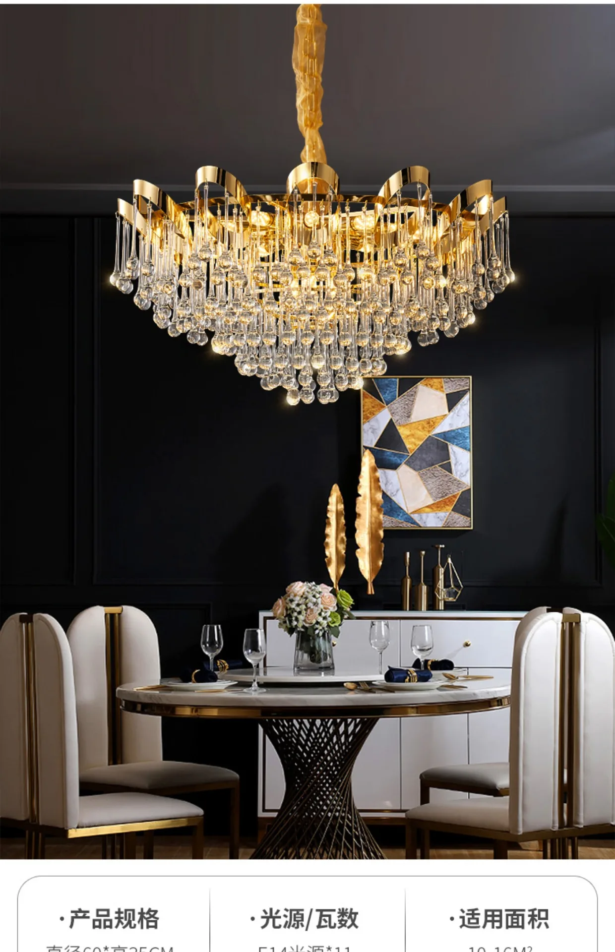 Light luxury crystal chandelier French luxury living room restaurant hotel villa high-end crystal lamp