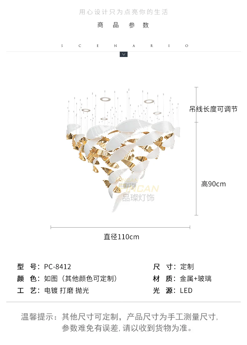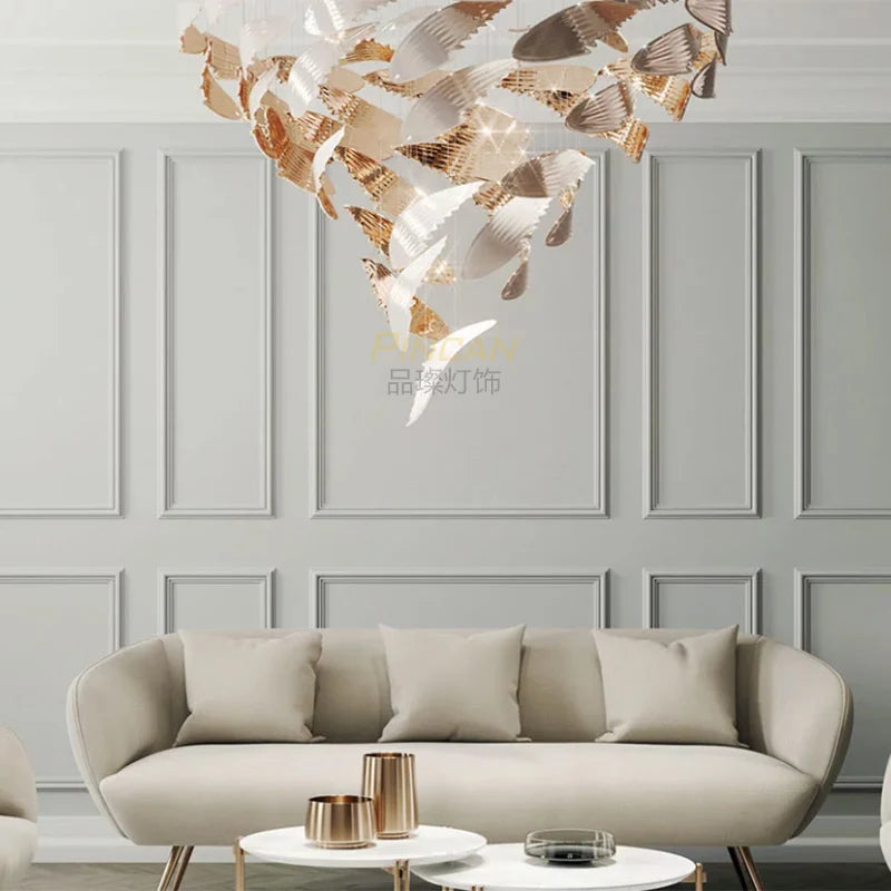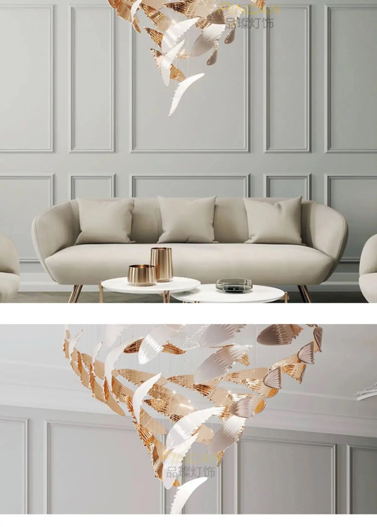 Light luxury crystal glass custom chandelier personality wing lamp Fashion living room Dining room Villa cable lighting