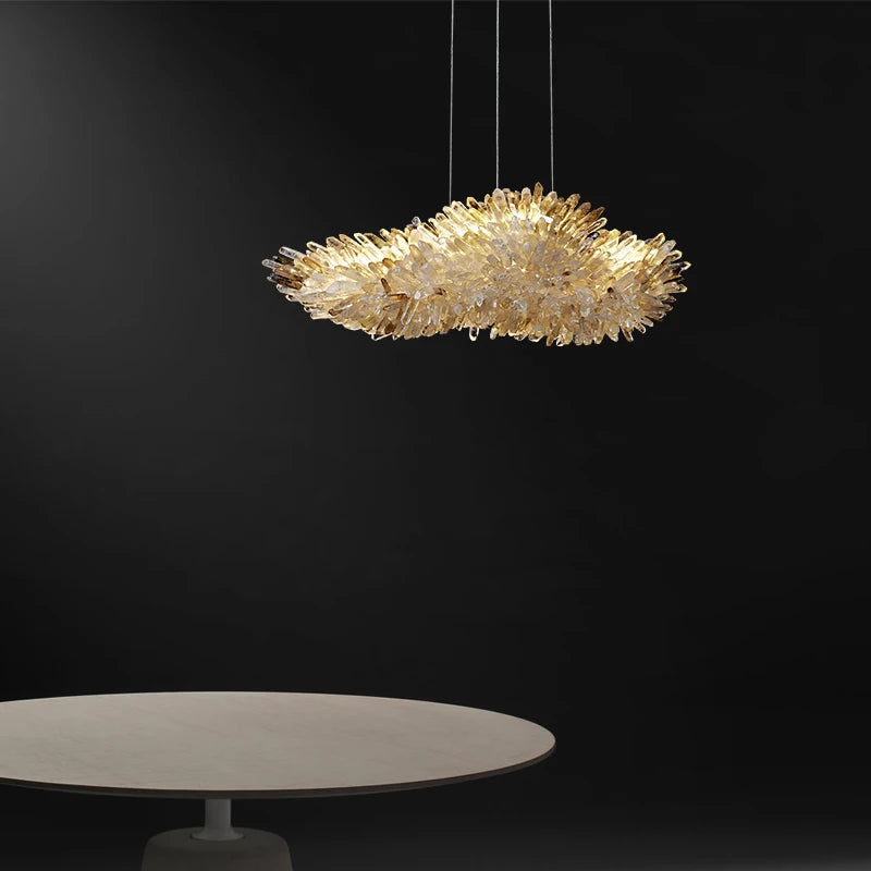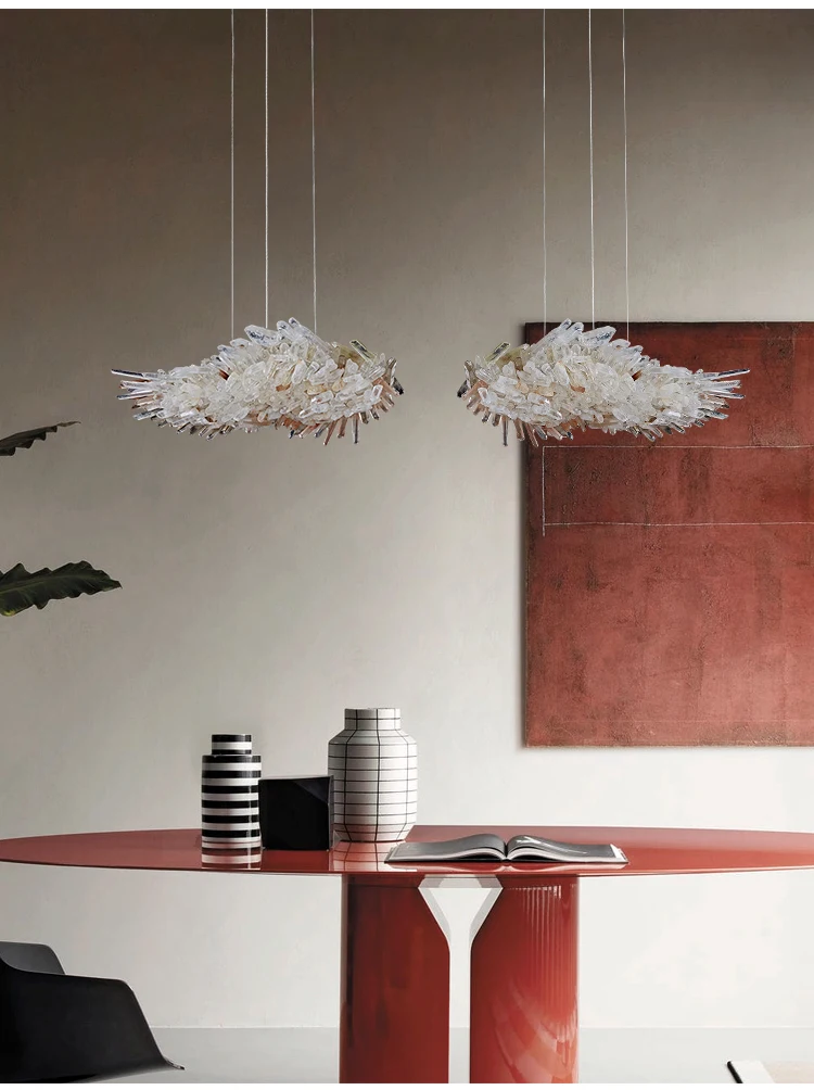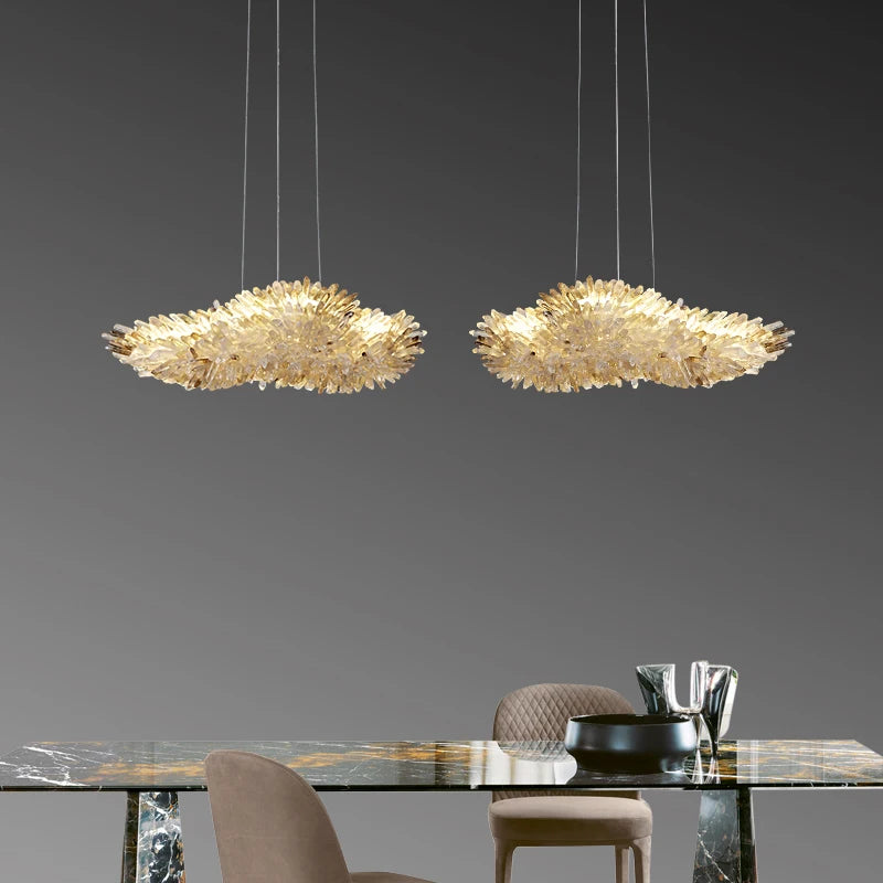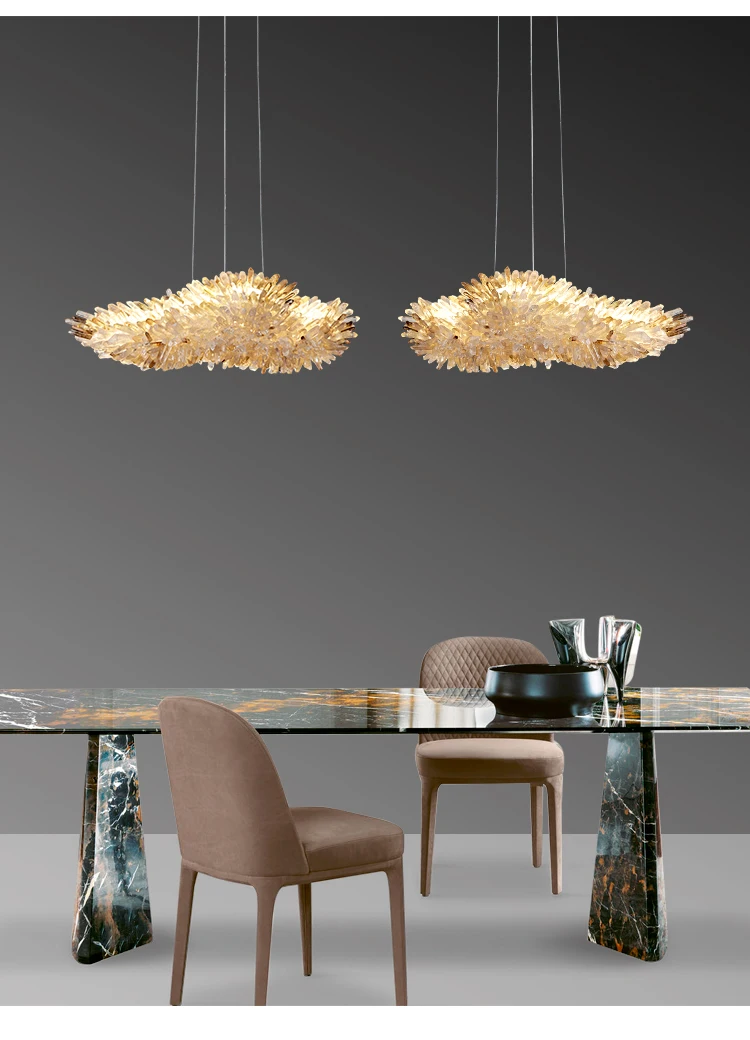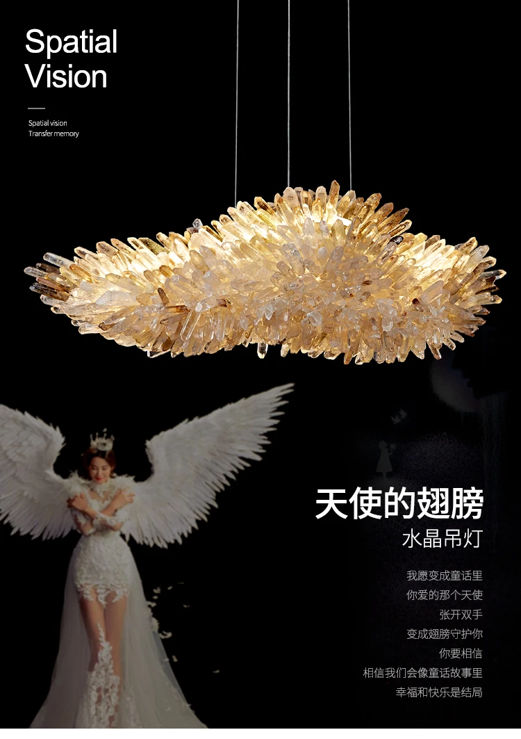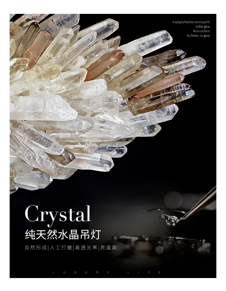 Light luxury natural crystal stair chandelier simple luxury high-end modern minimalist American villa duplex lamp