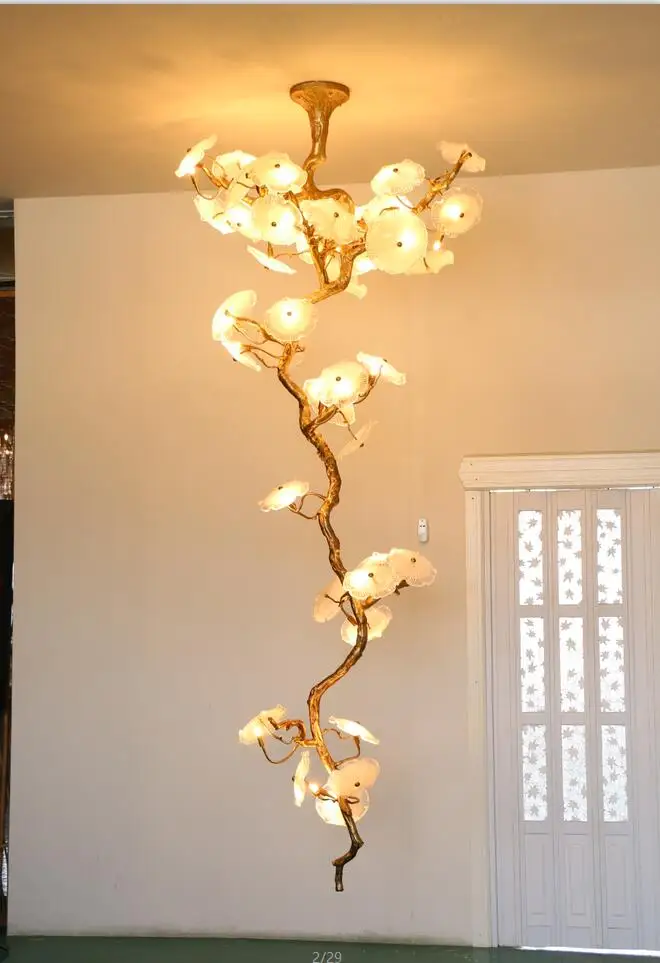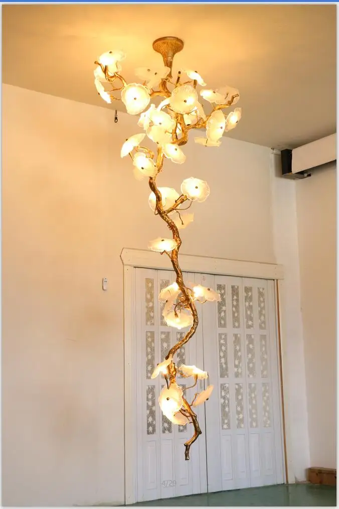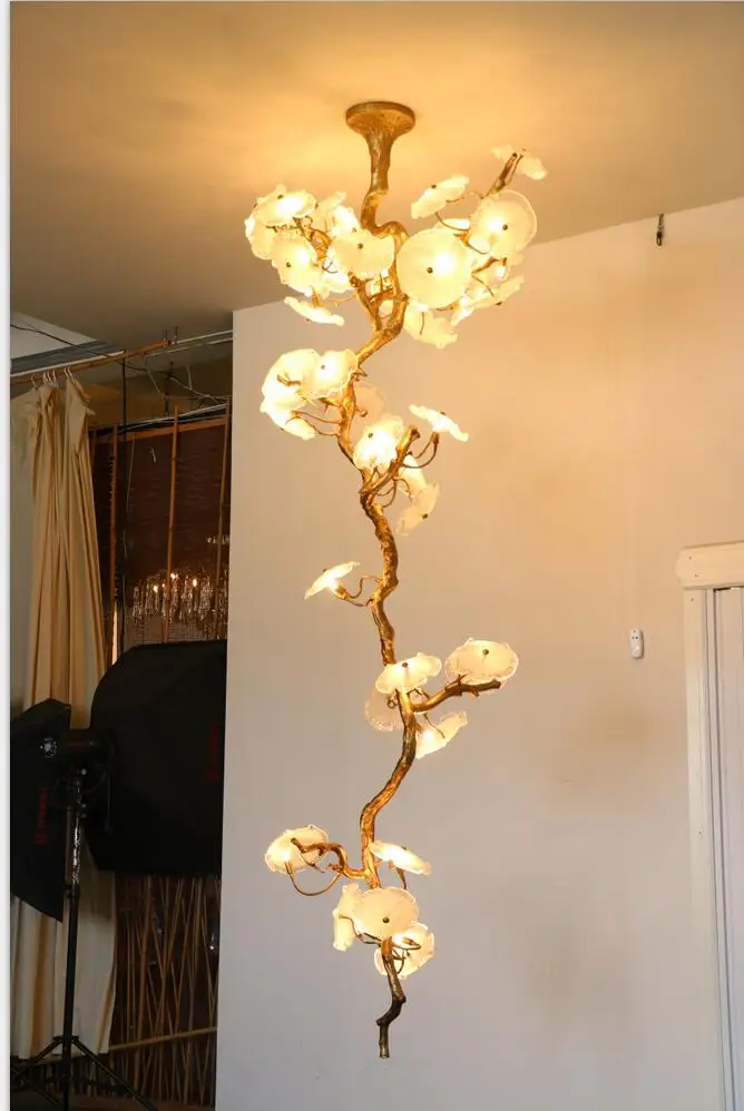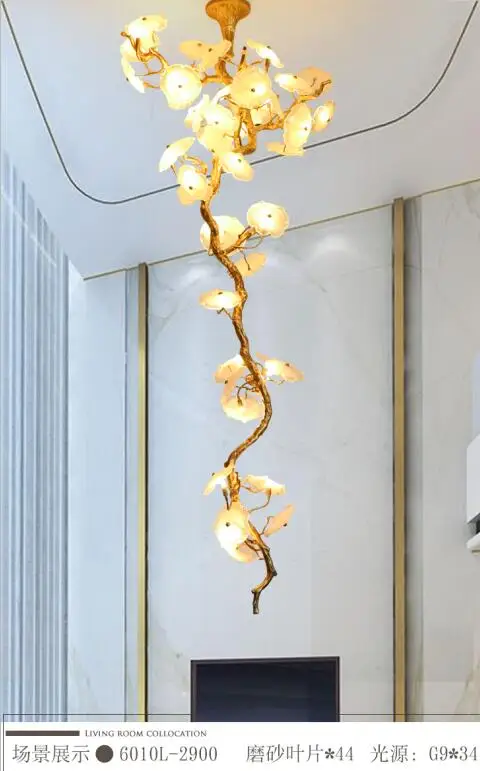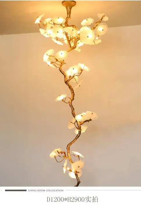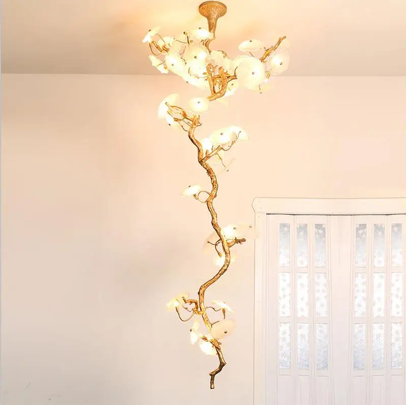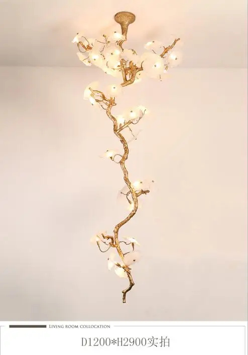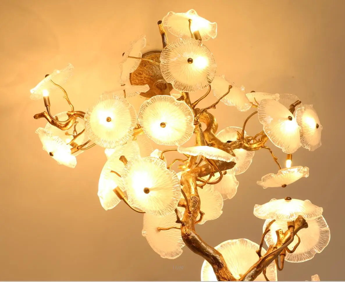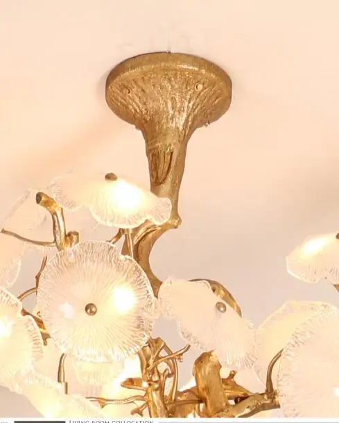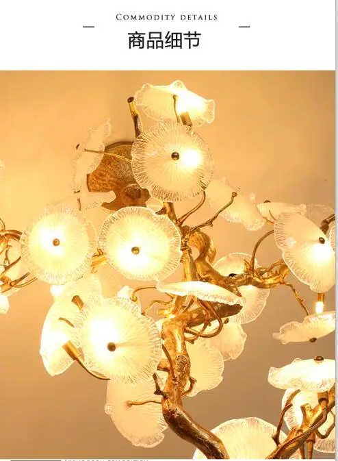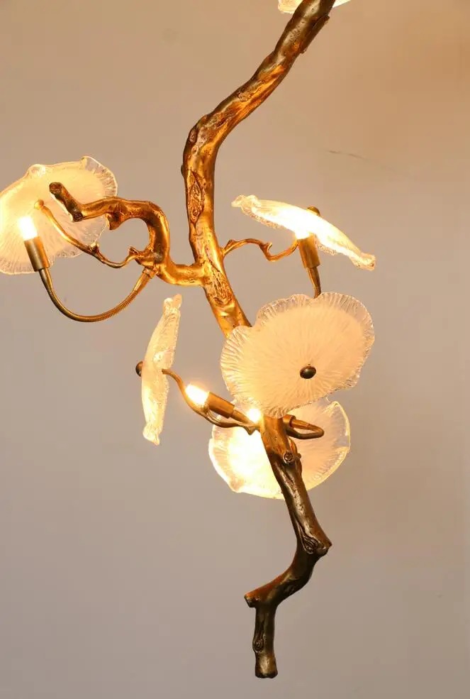 Light luxury post-modern copper branch crystal chandelier French living room dining room lamp American minimalist designer villa