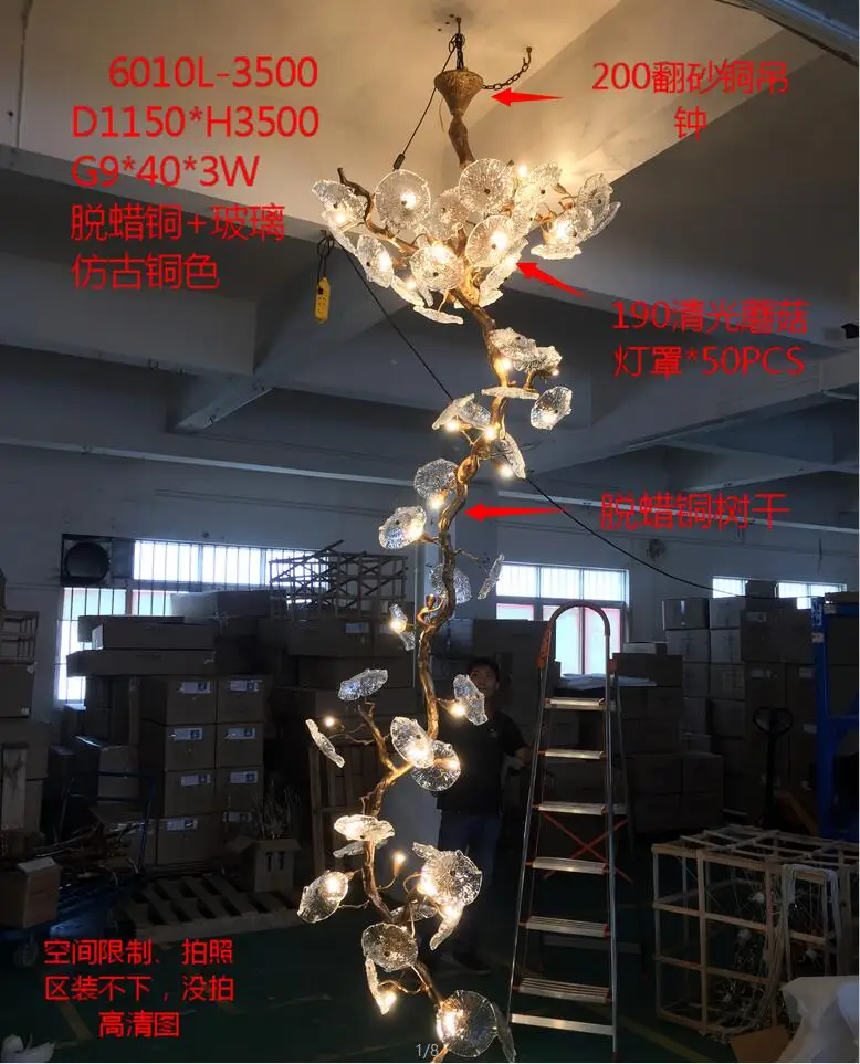 100% brand new and good qualit Item No. 5896 Item Style: Modern Material: copper ,GLASS Size: D80 X H75CM D80 X H200CM D80 X H240CM D80 X H290CM D80 X H290CM D80 X H350CM color:gold// Clear crystal//COPPER cryster Light Source: LED Bulbs Color Tempeature: Warm light(3000K), Cool light(6000K) Voltage: AC110-240V Delivery: 6-8 days Apply: Living Room, Ding Room, Bedroom: