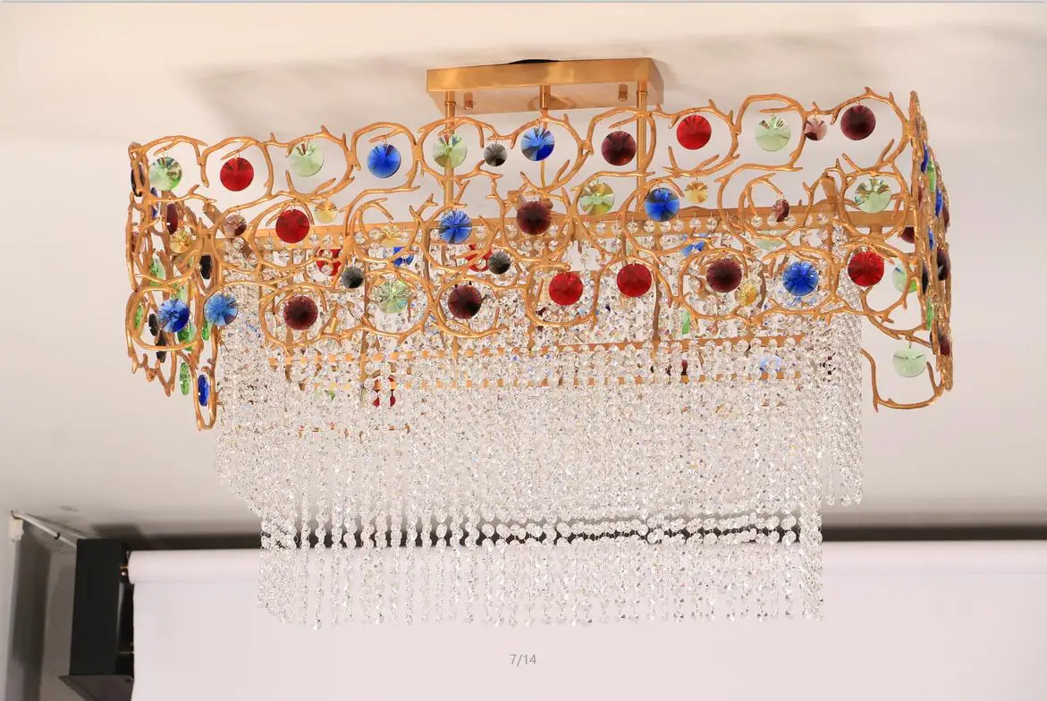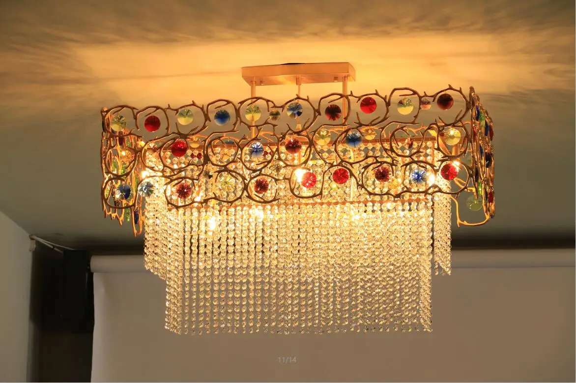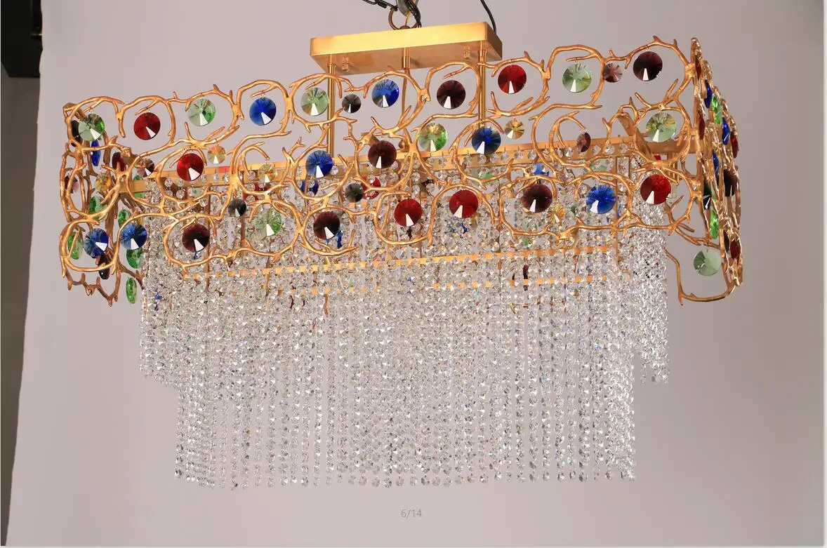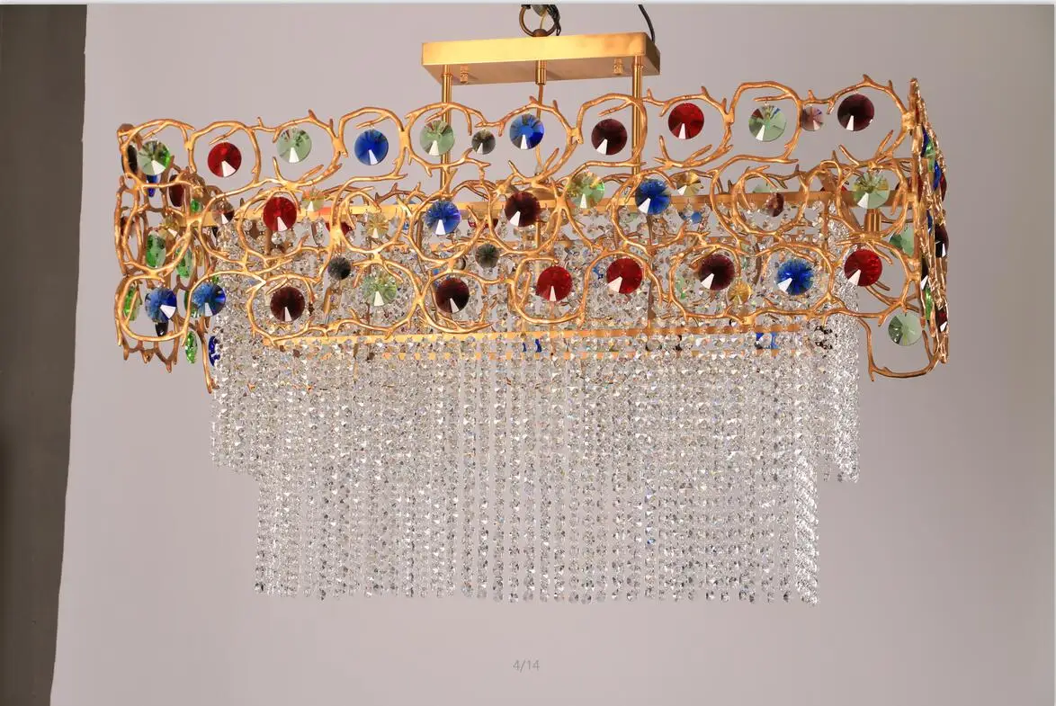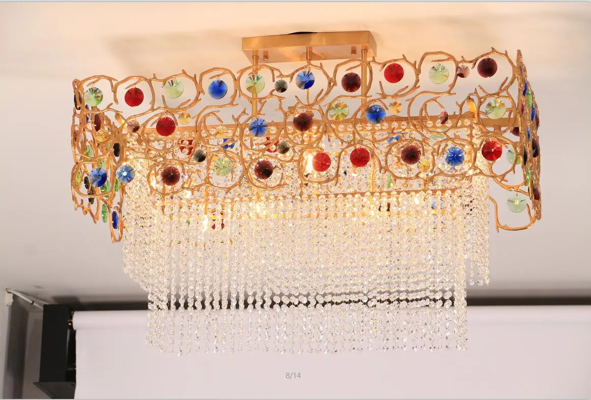Light luxury post-modern copper branch crystal chandelier French living room dining room lamp American minimalist designer villa