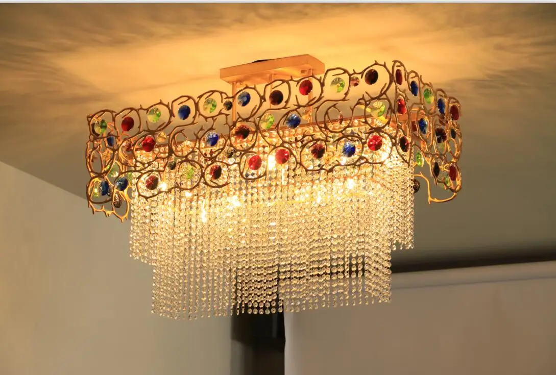100% brand new and good qualit Item No. 5896 Item Style: Modern Material: copper Crystal Size: L100 x W45 x H60cm Light Source: LED Bulbs Color Tempeature: Warm light(3000K), Cool light(6000K) Voltage: AC110-240V Delivery: 6-8 days Apply: Living Room, Ding Room, Bedroom: