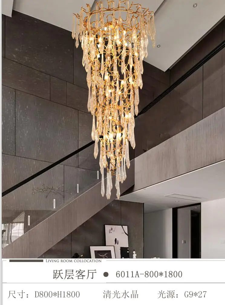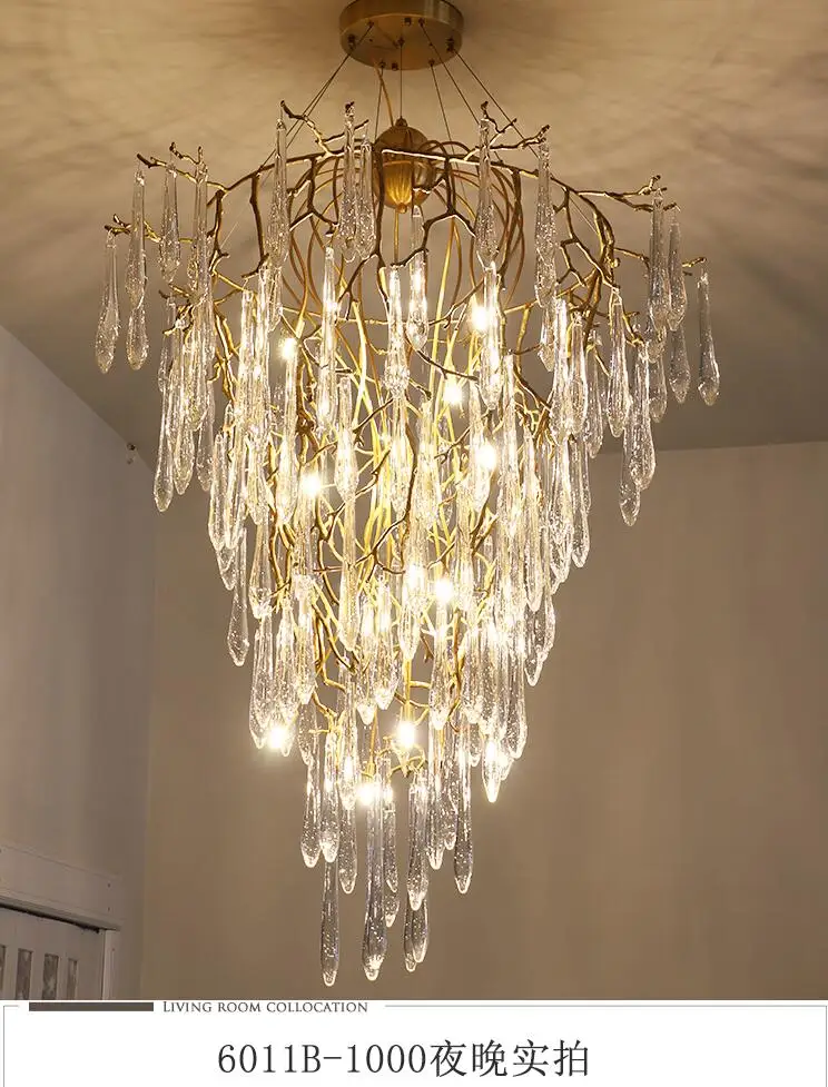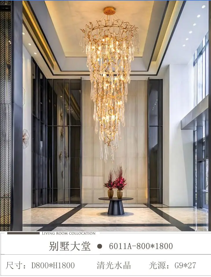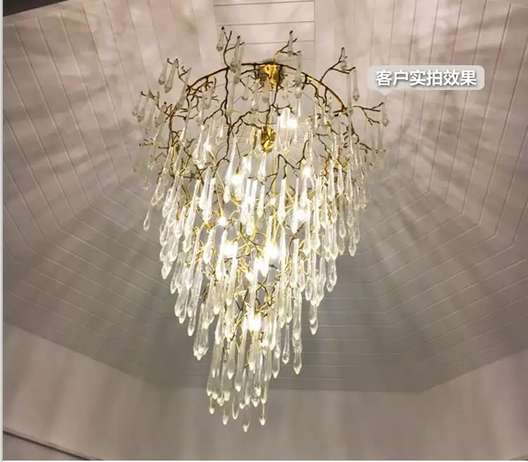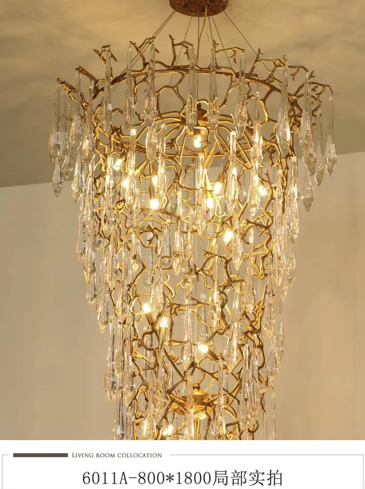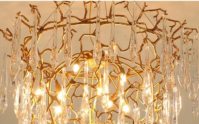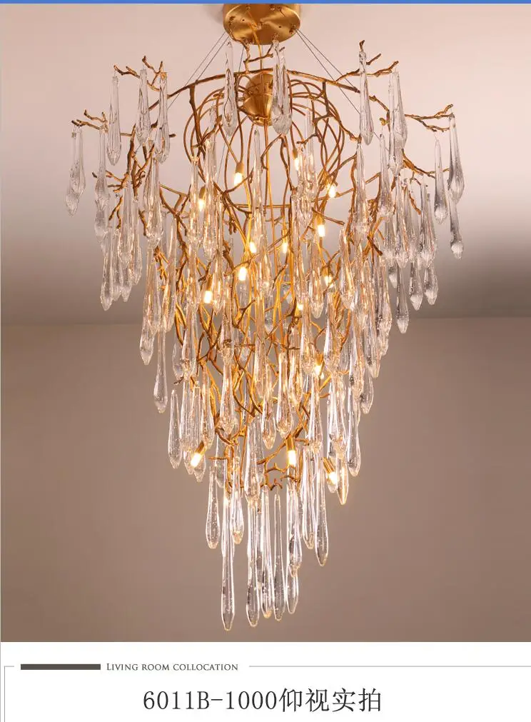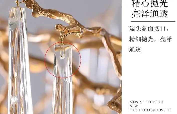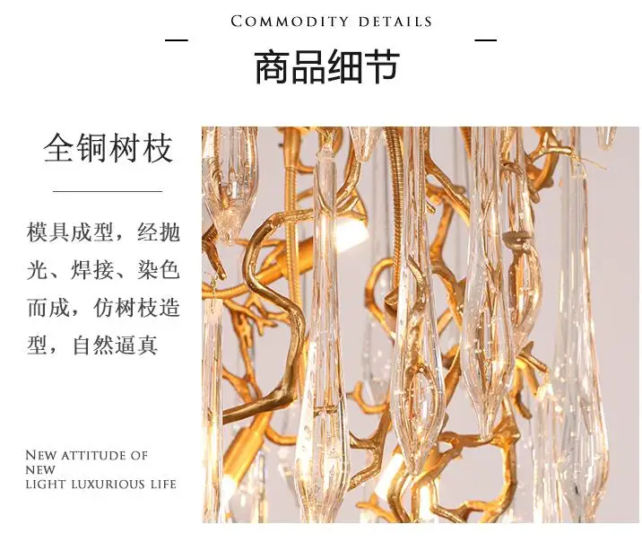 Light luxury post-modern copper branch crystal chandelier French living room dining room lamp American minimalist designer villa