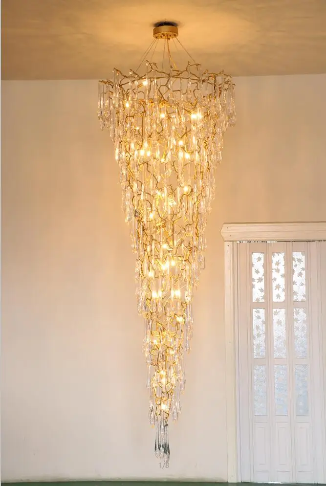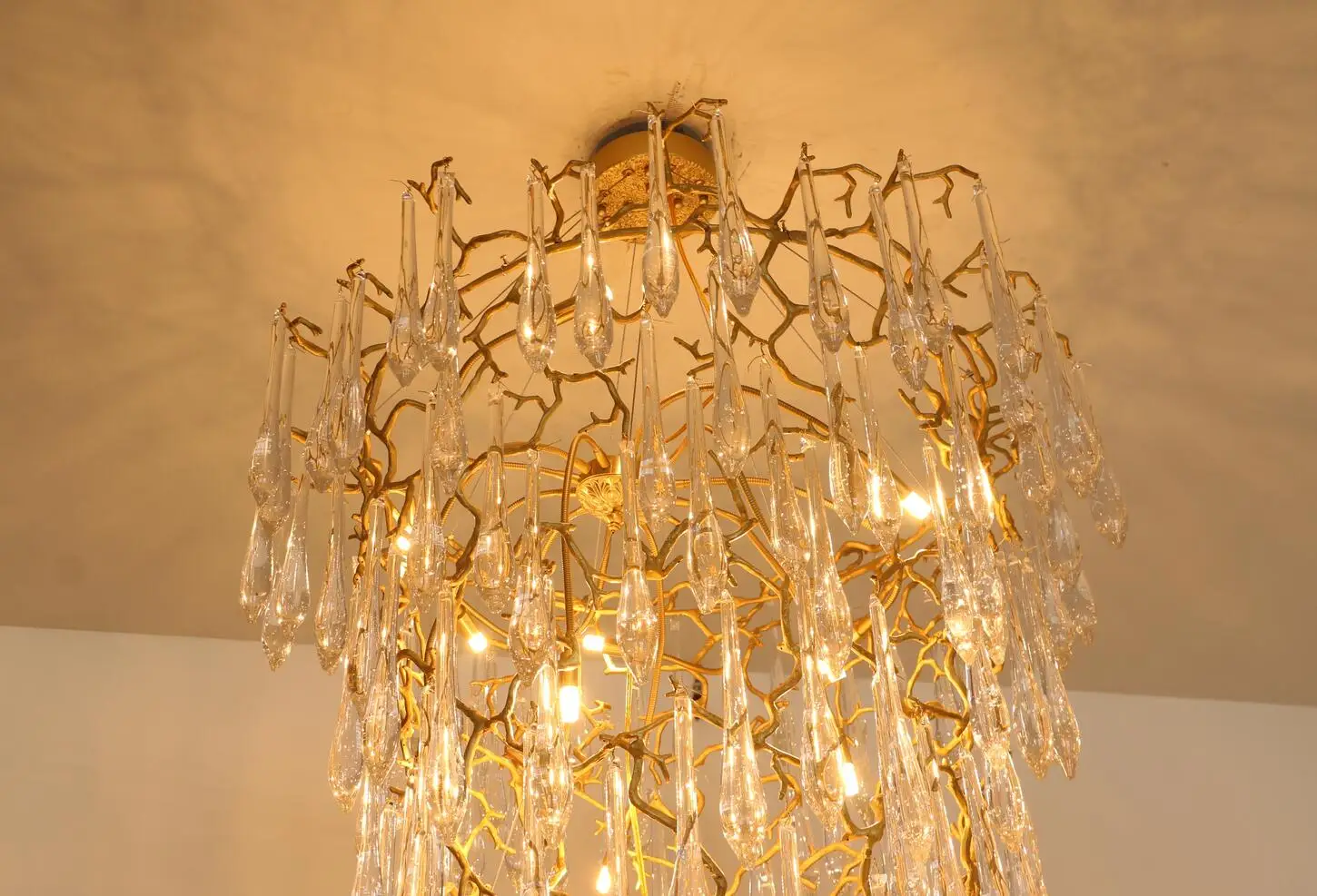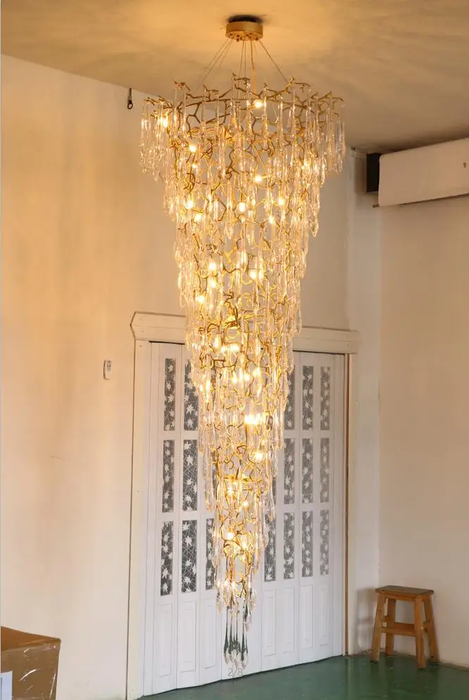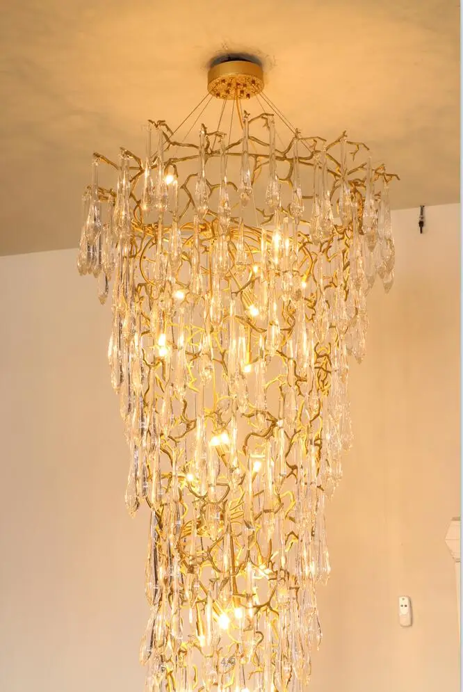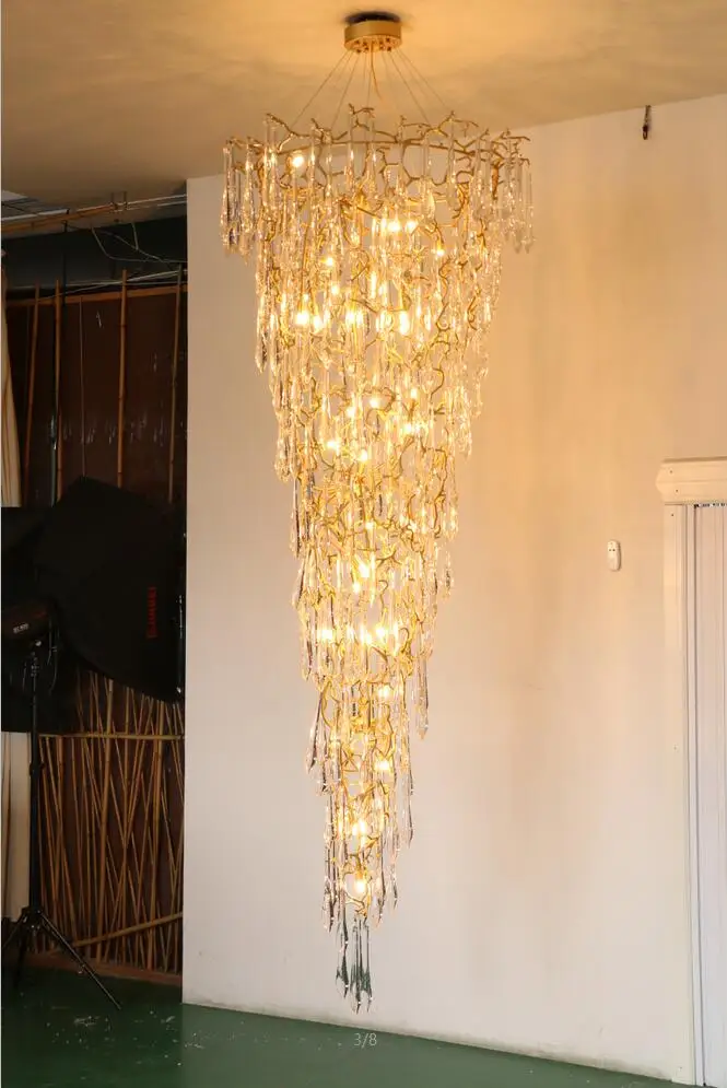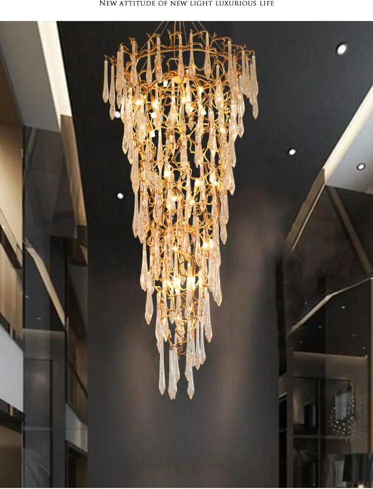 Light luxury post-modern copper branch crystal chandelier French living room dining room lamp American minimalist designer villa