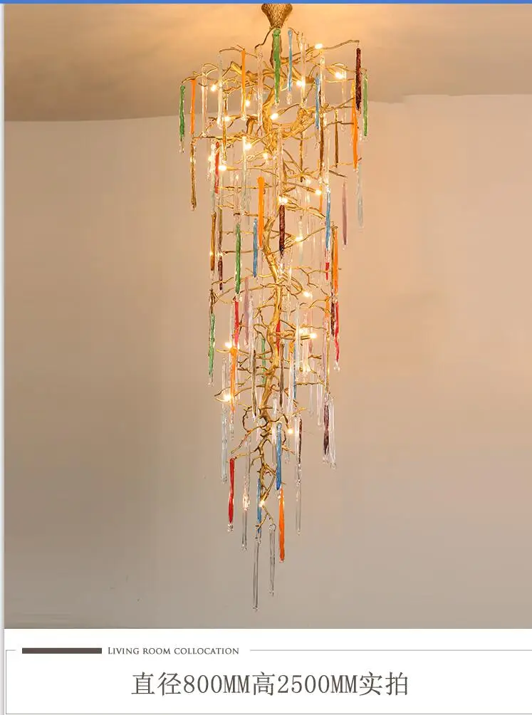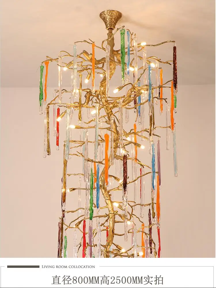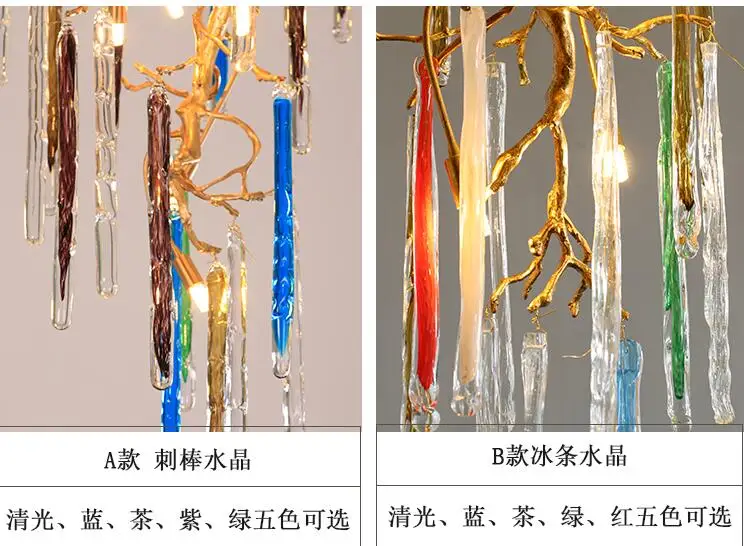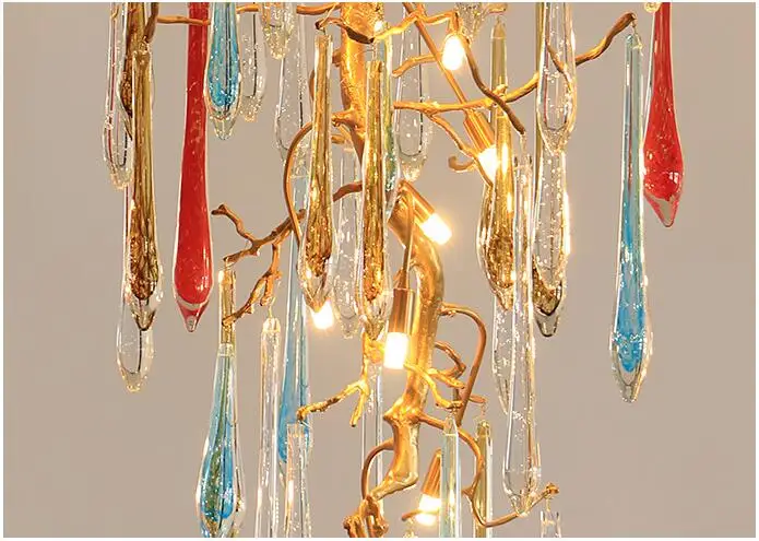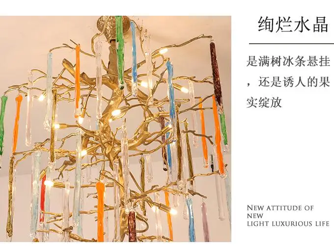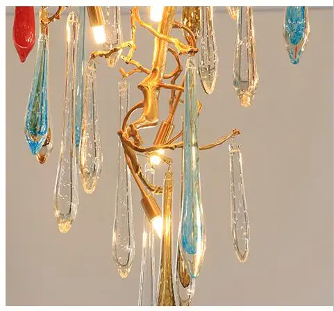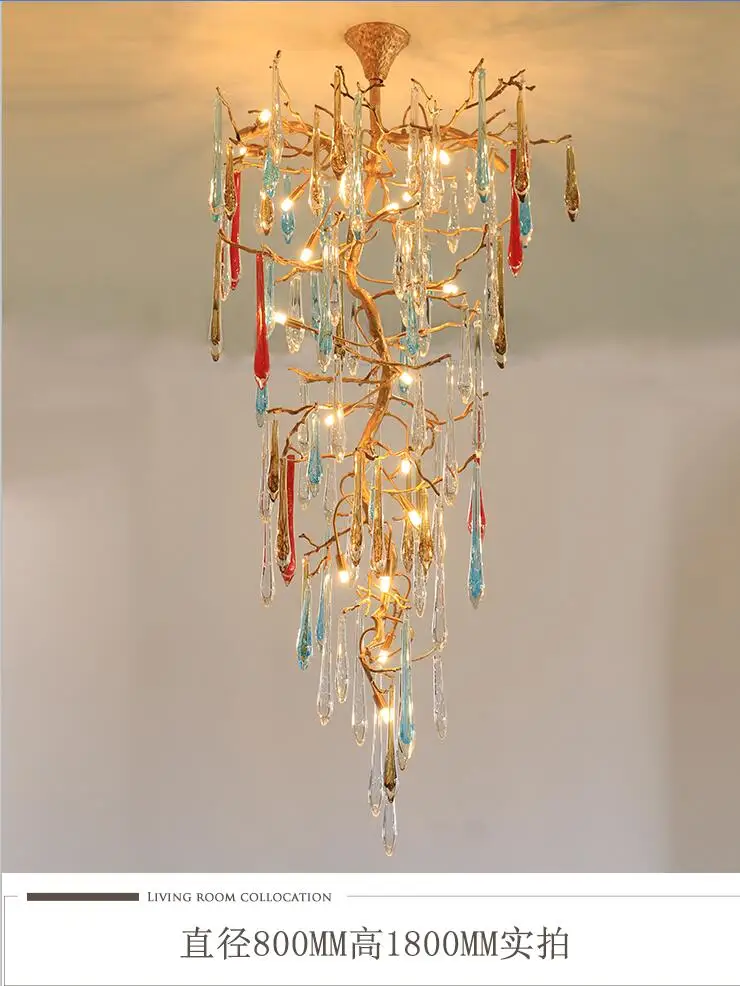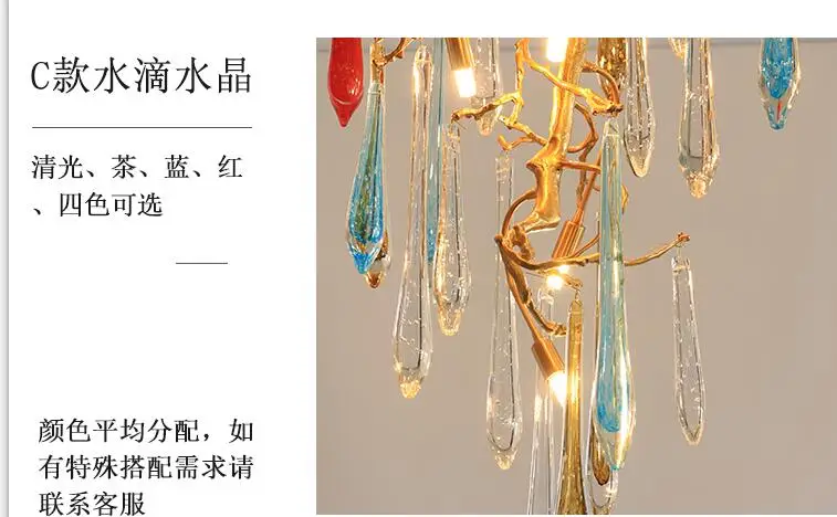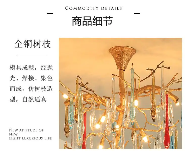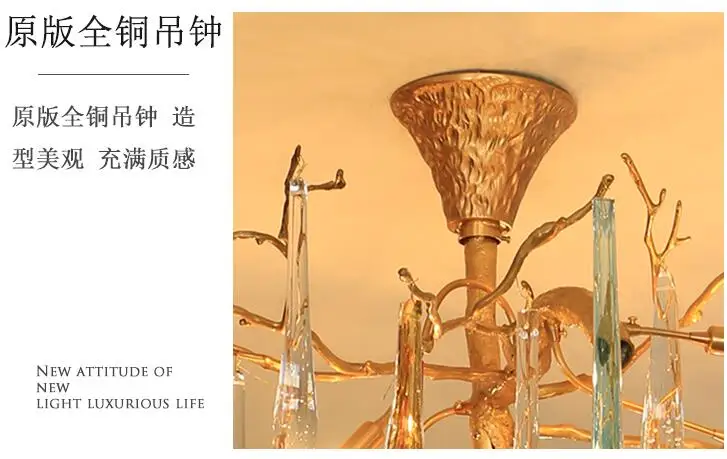 Light luxury post-modern copper branch crystal chandelier French living room dining room lamp American minimalist designer villa