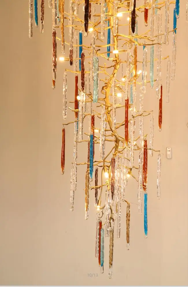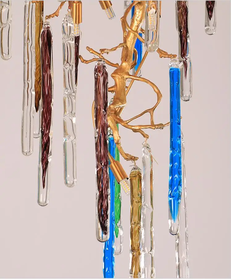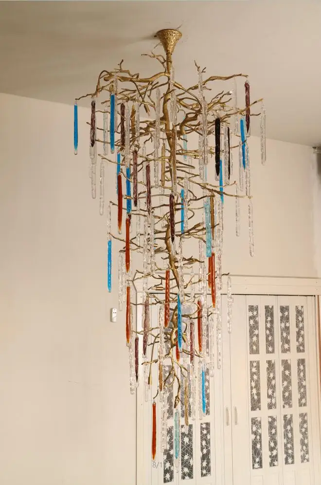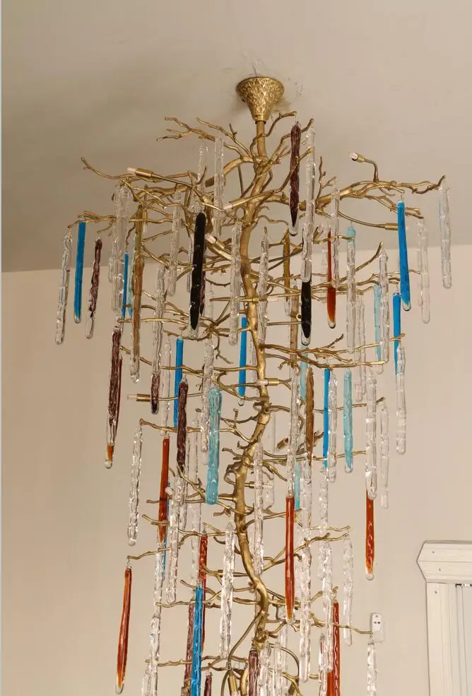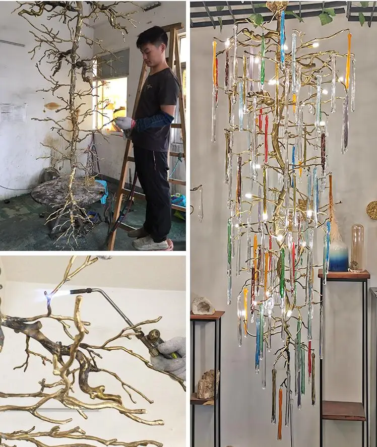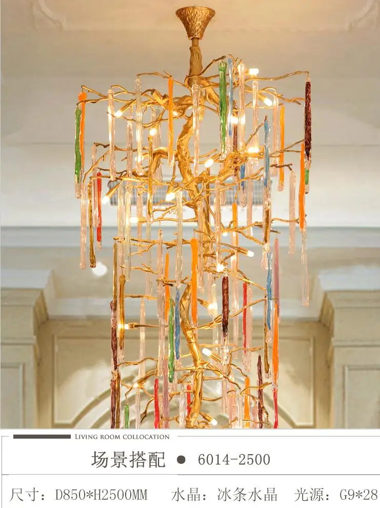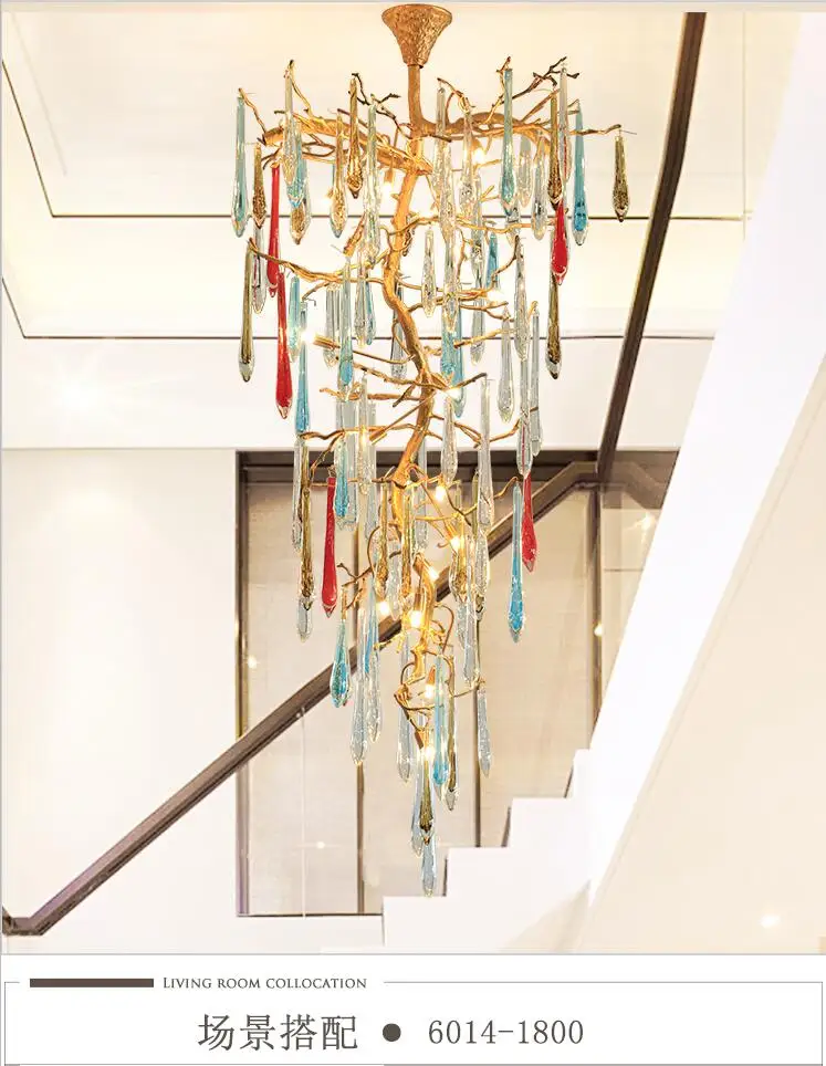Light luxury post-modern copper branch crystal chandelier French living room dining room lamp American minimalist designer villa