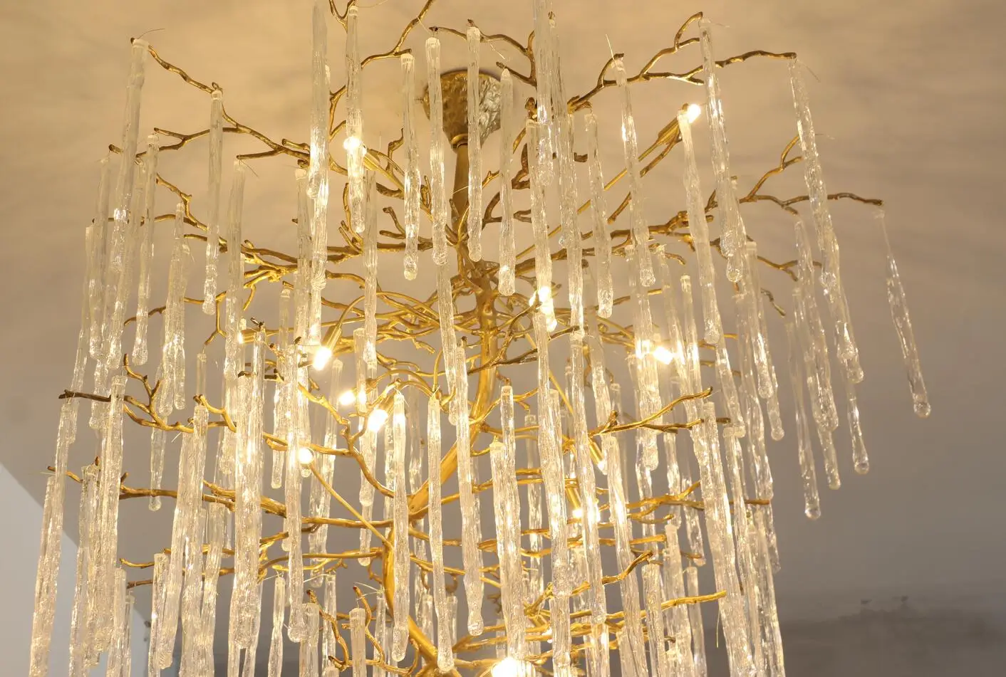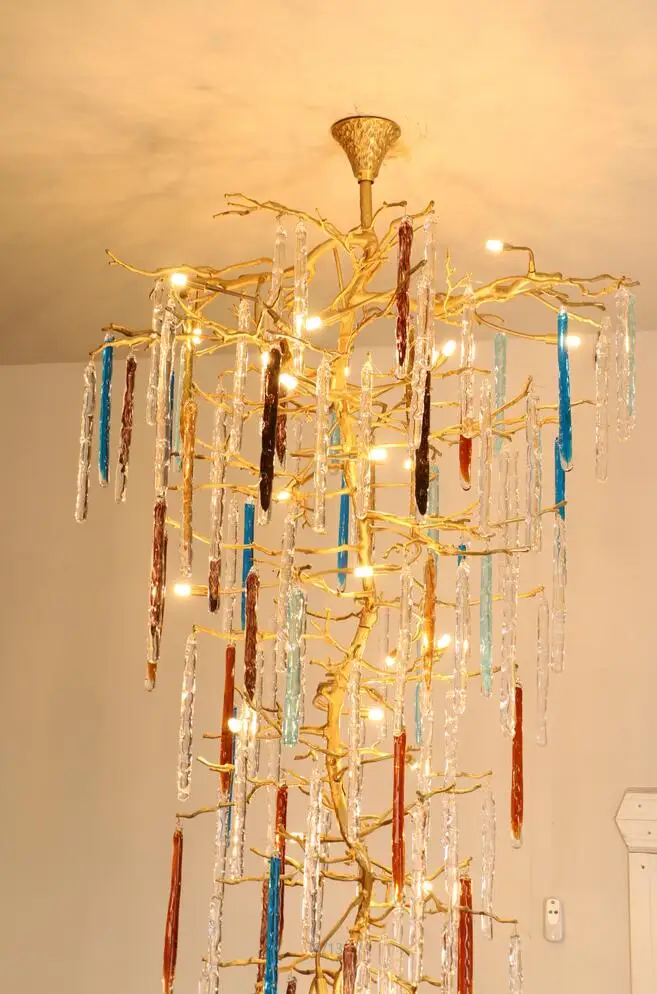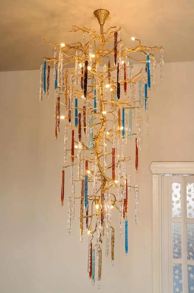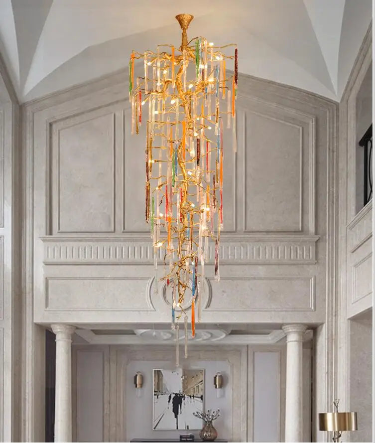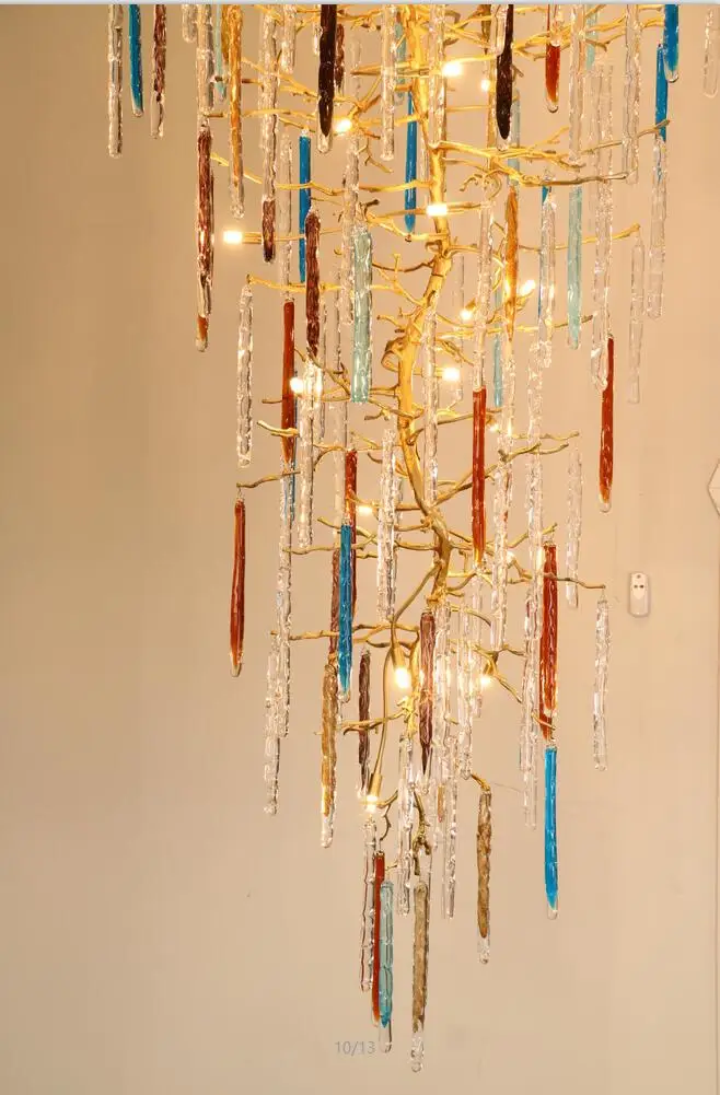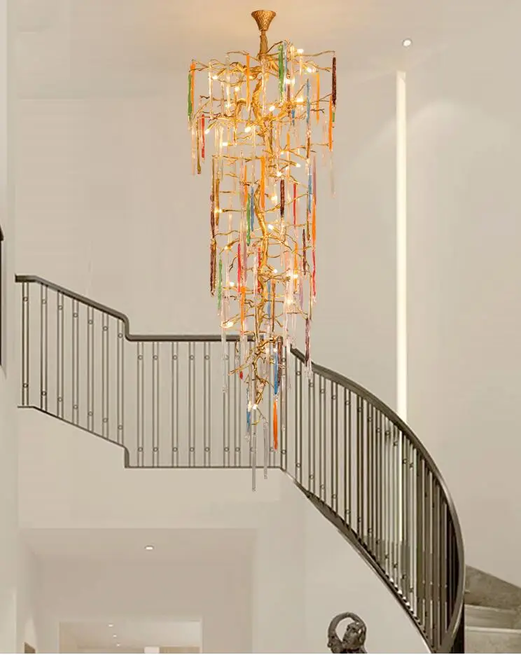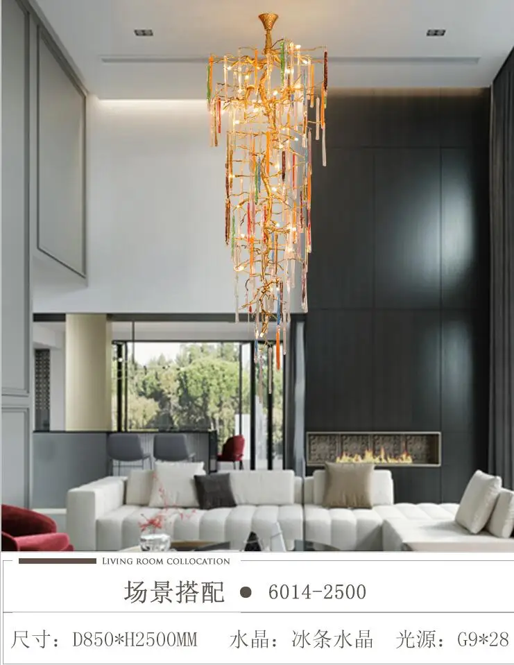 Light luxury post-modern copper branch crystal chandelier French living room dining room lamp American minimalist designer villa