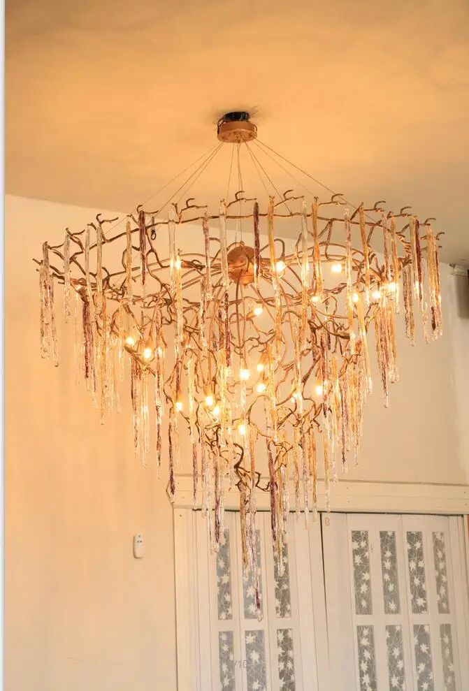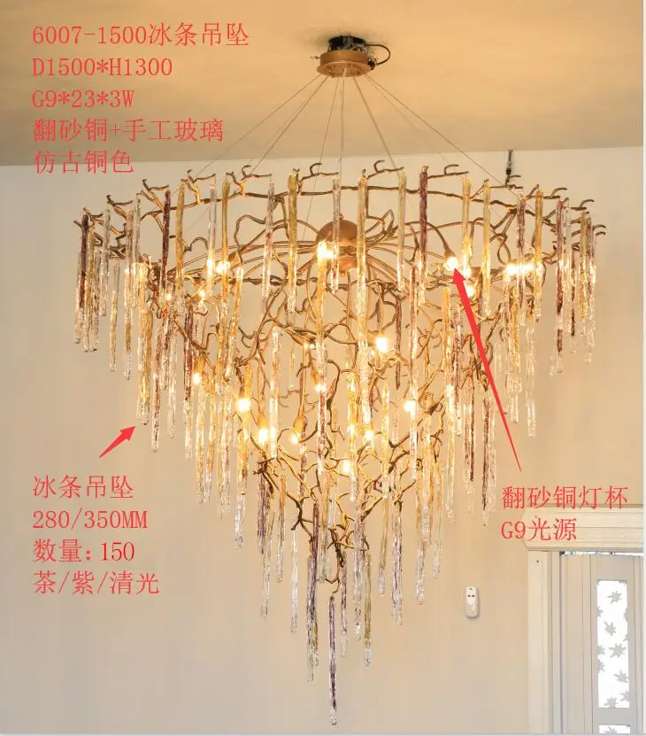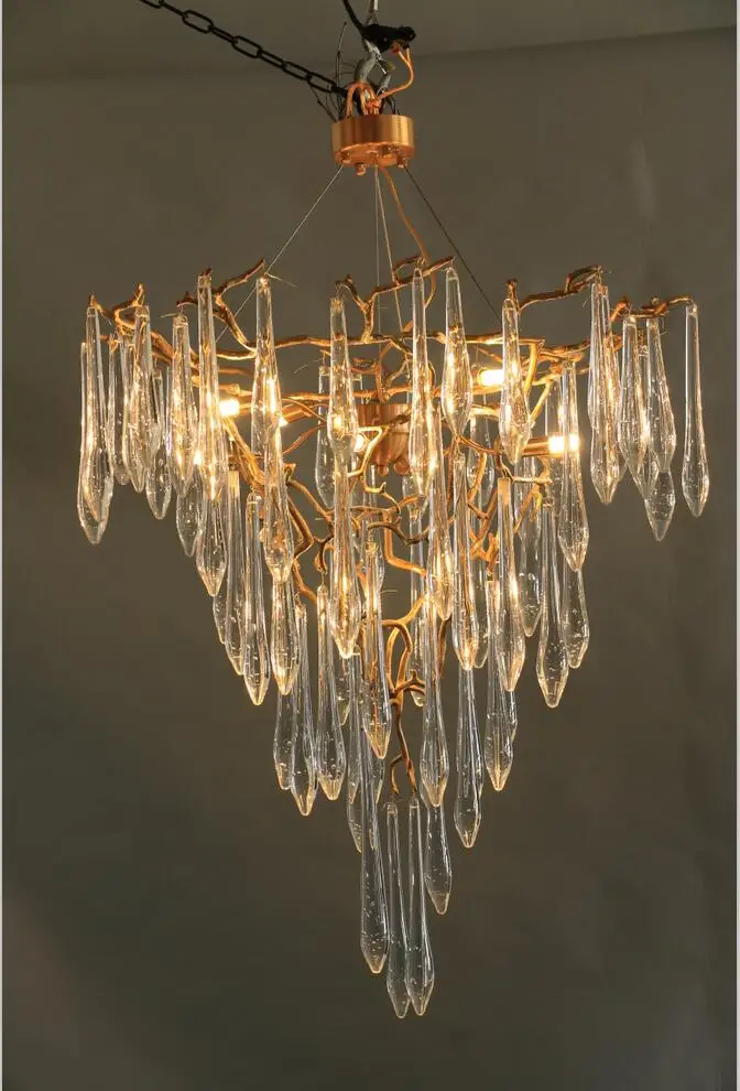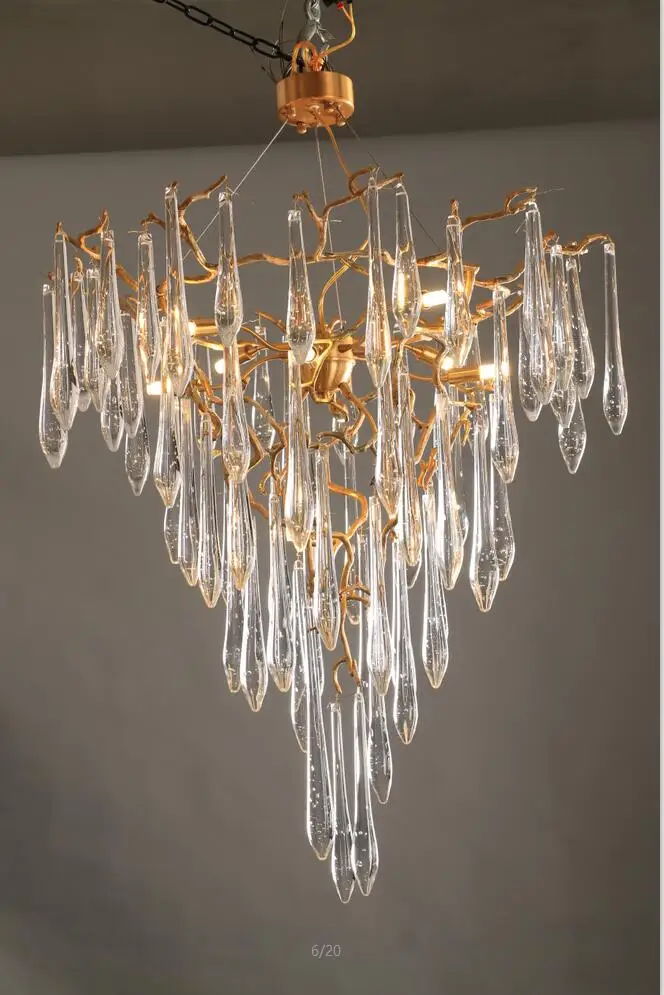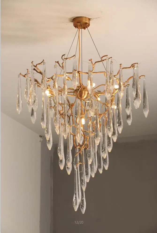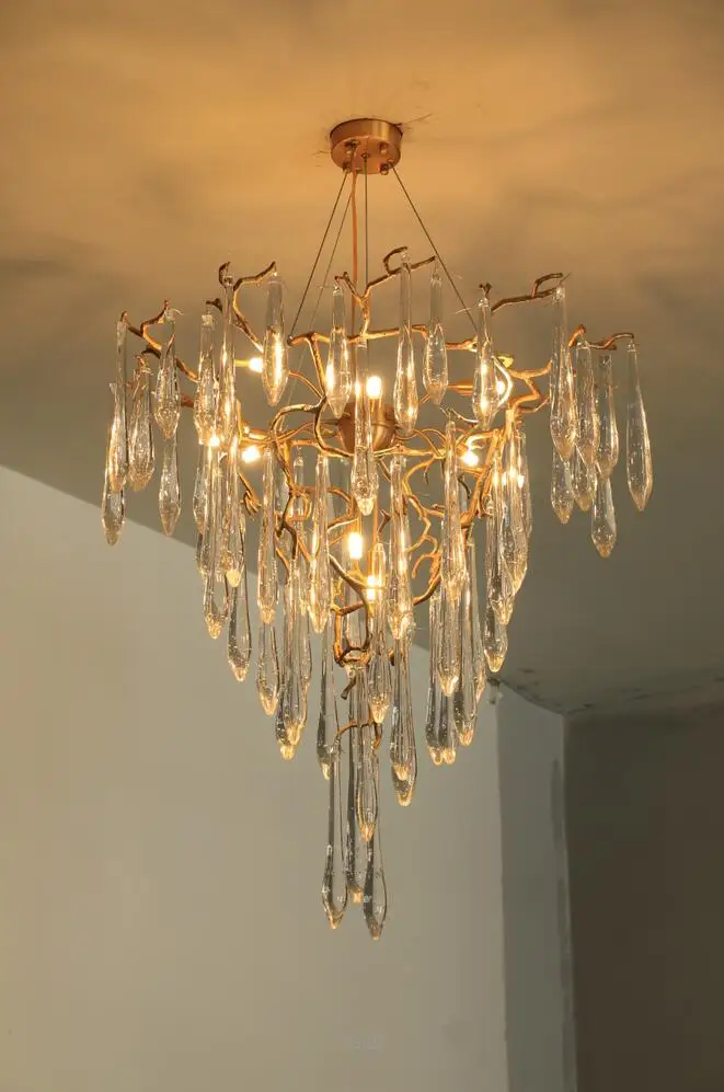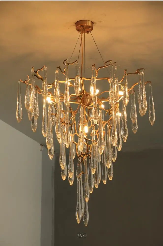 Light luxury post-modern copper branch crystal chandelier French living room dining room lamp American minimalist designer villa