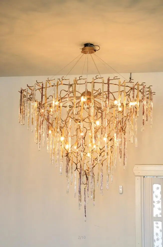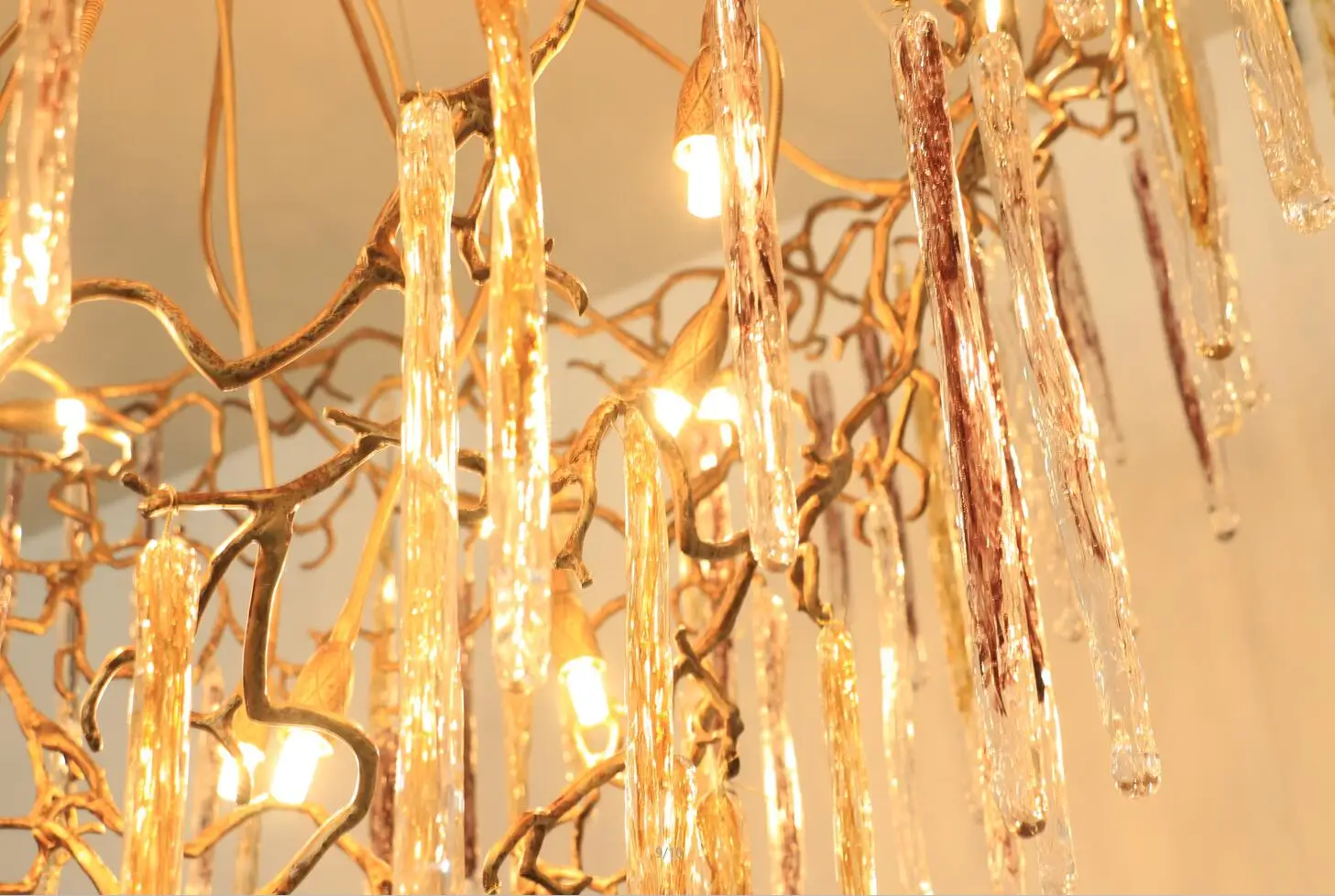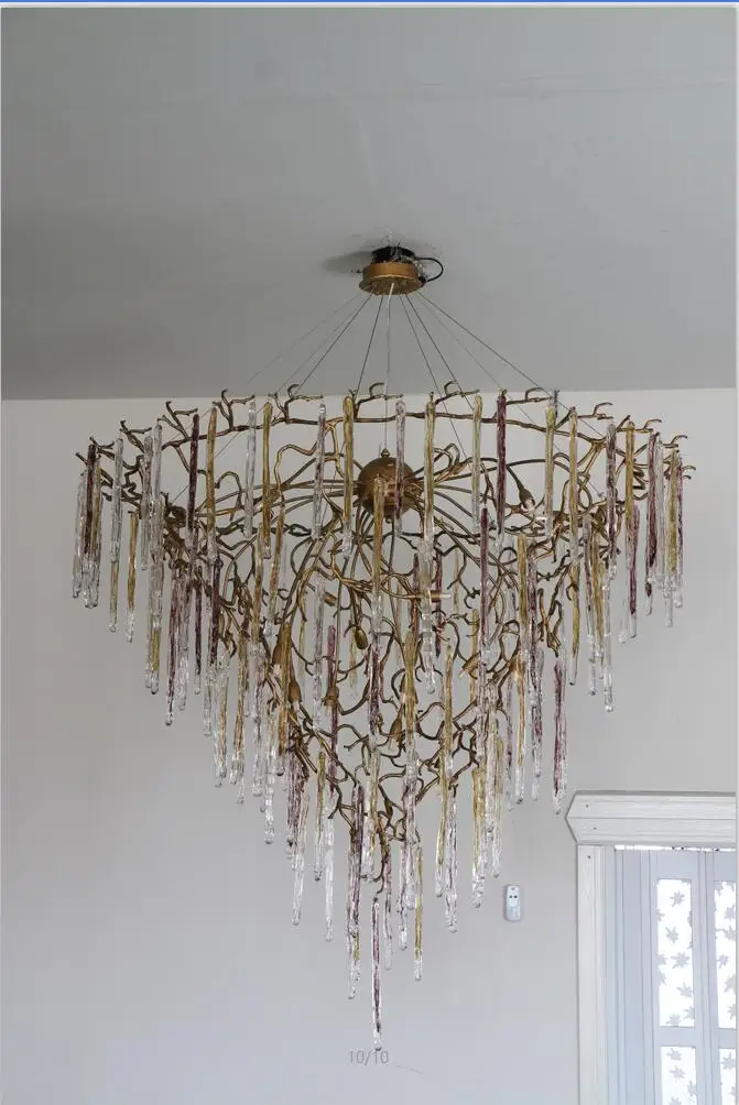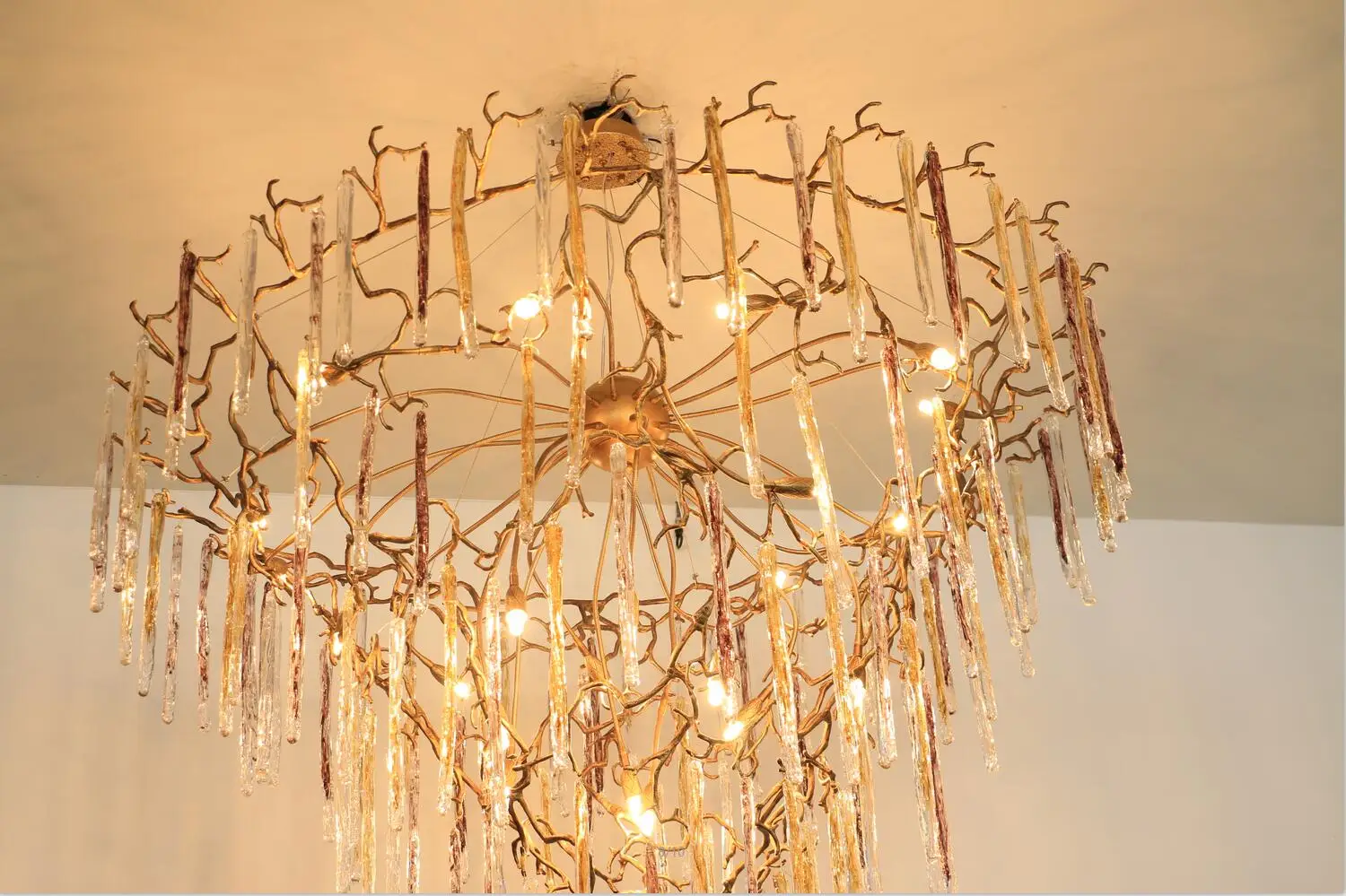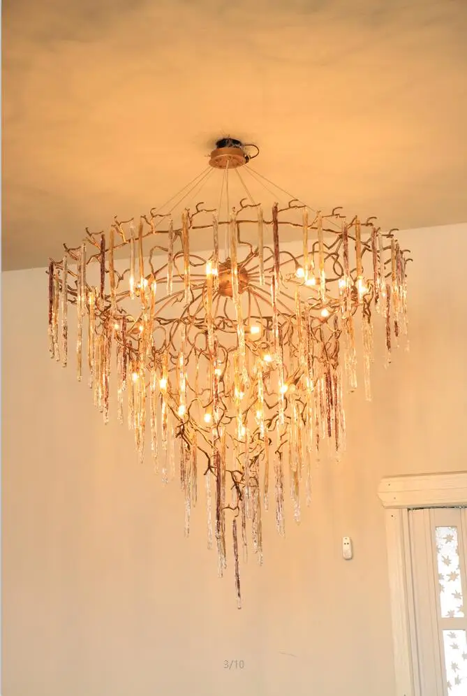 Light luxury post-modern copper branch crystal chandelier French living room dining room lamp American minimalist designer villa