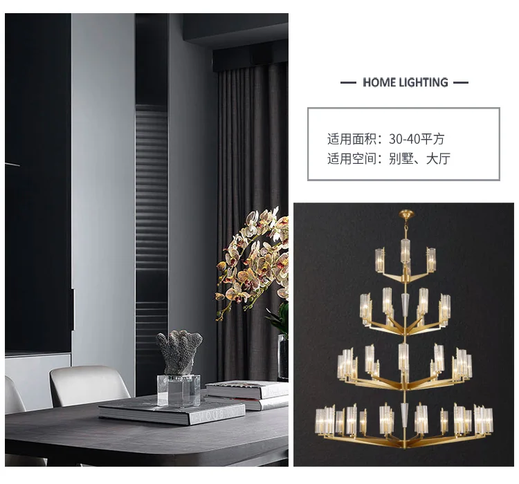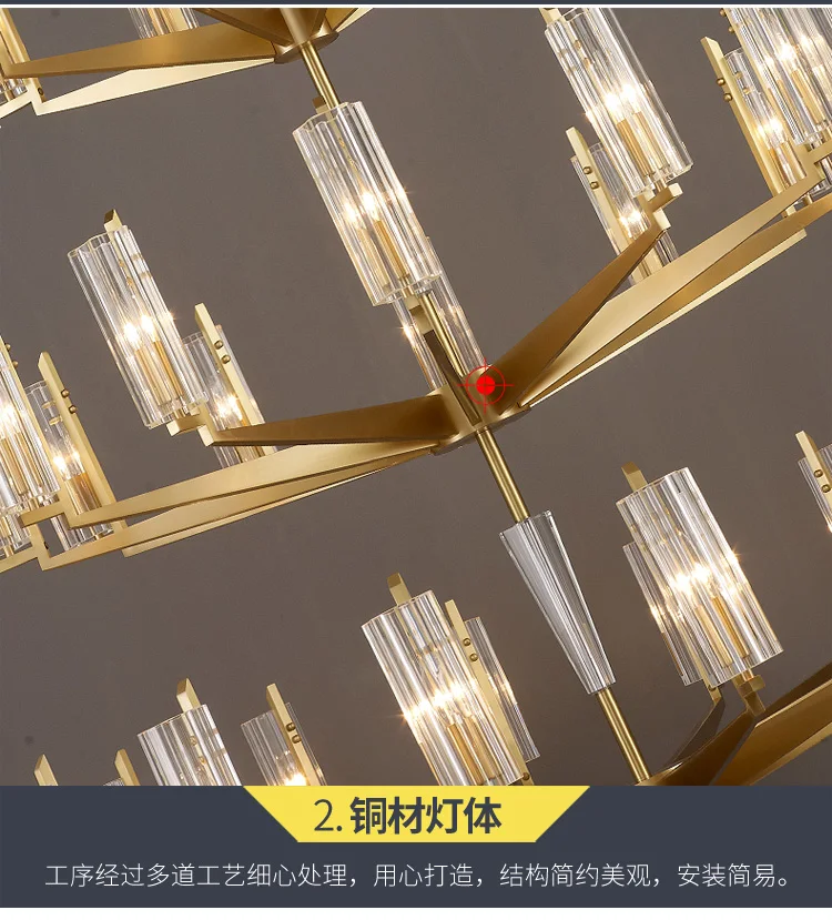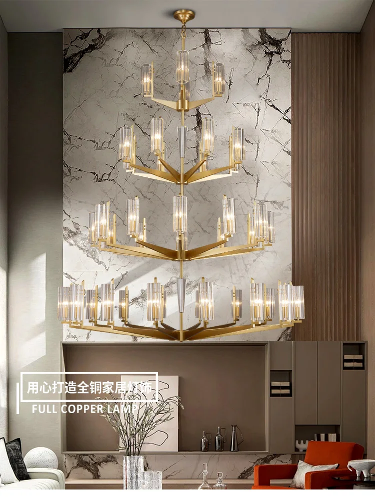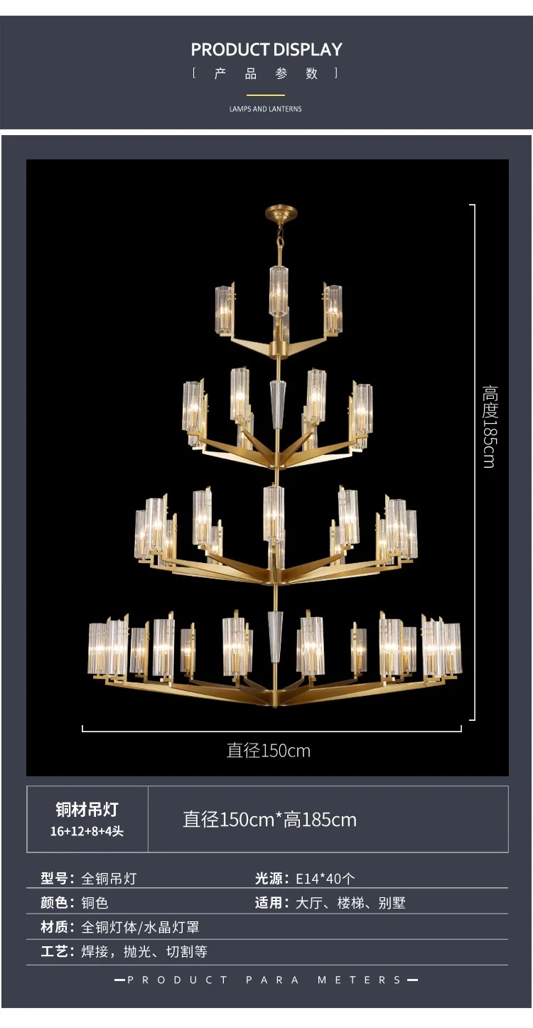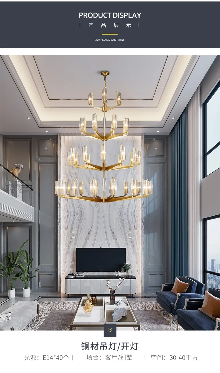 Light luxury post-modern living room large chandelier all copper duplex villa staircase chandelier