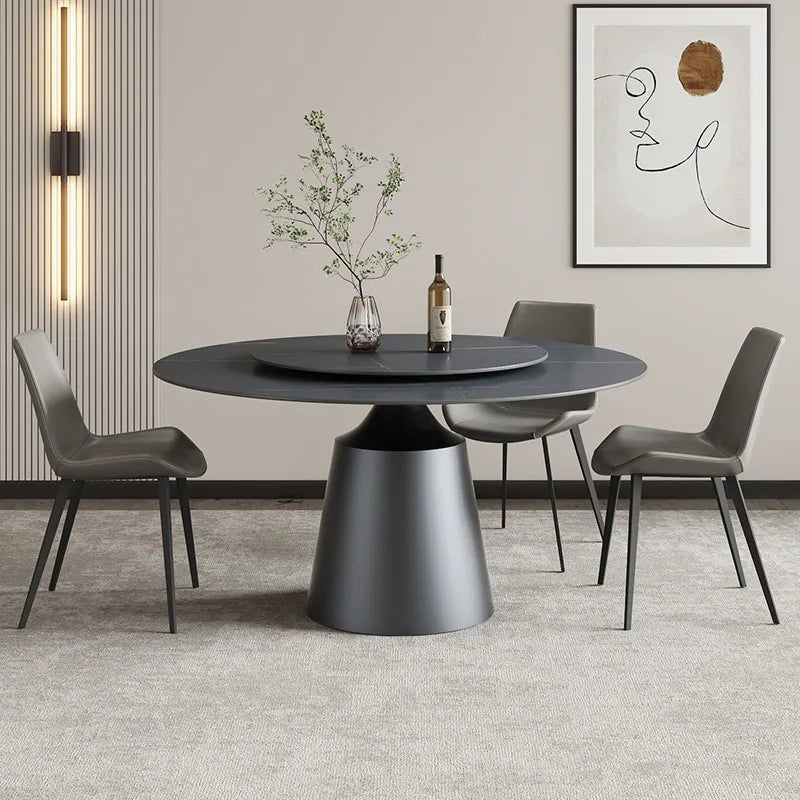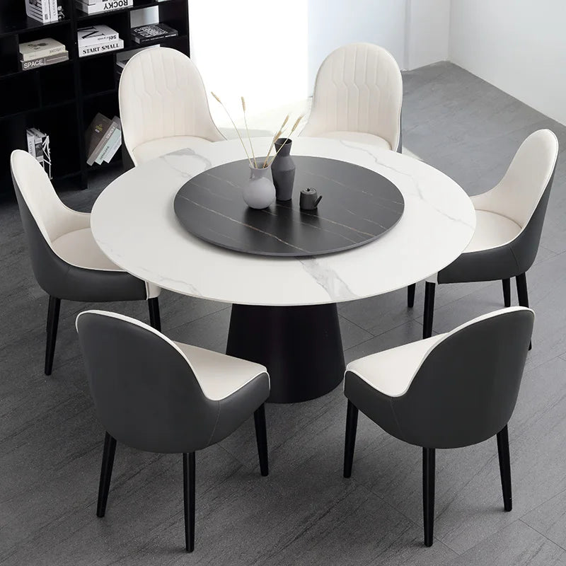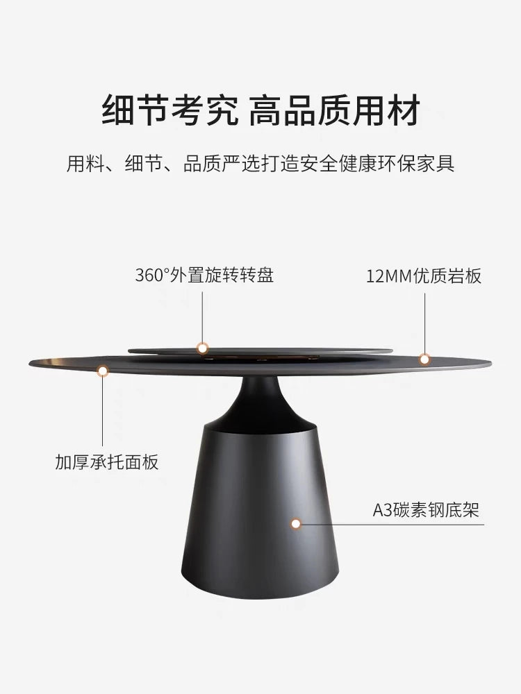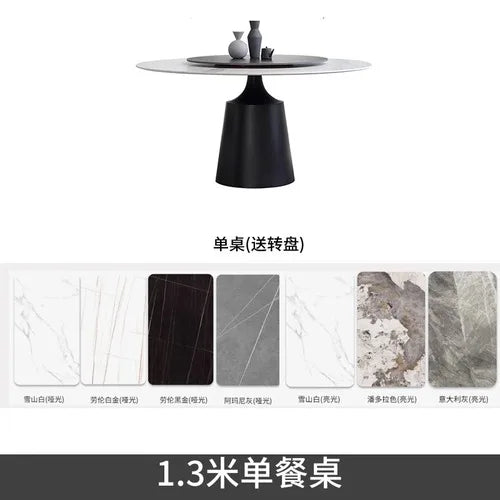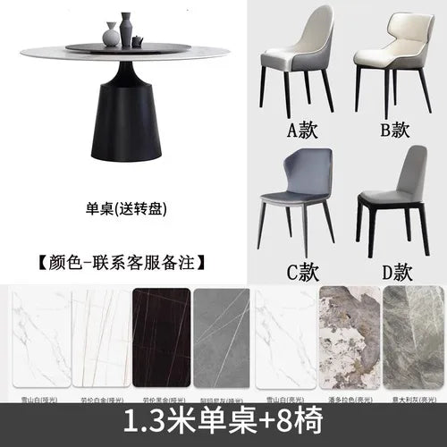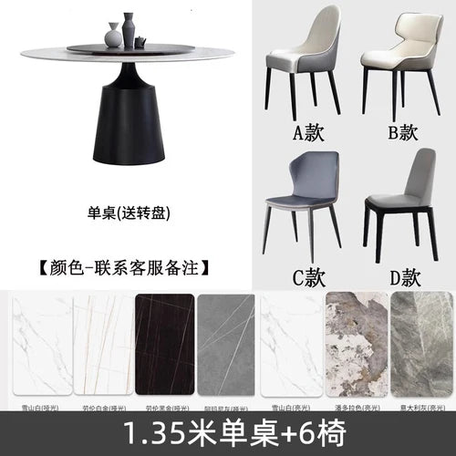 Light luxury slate dining table and chair combination, modern simple home small apartment round dining table with turntable