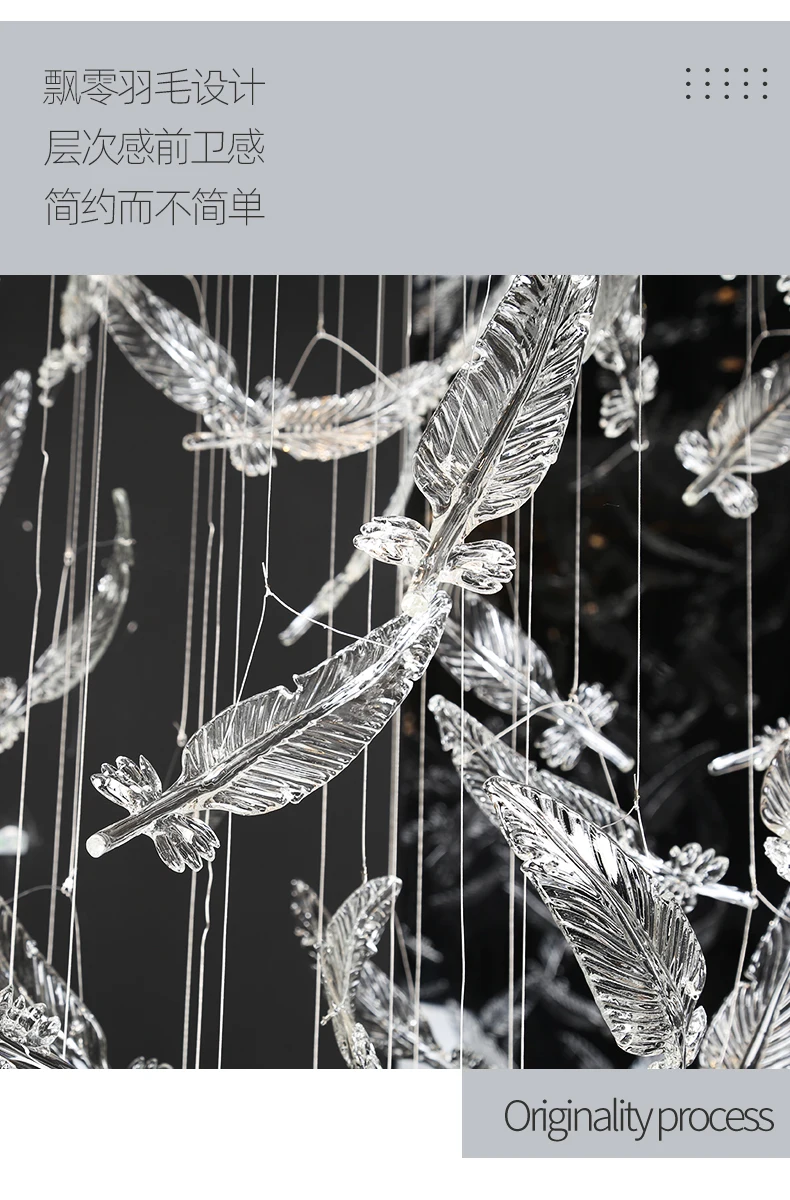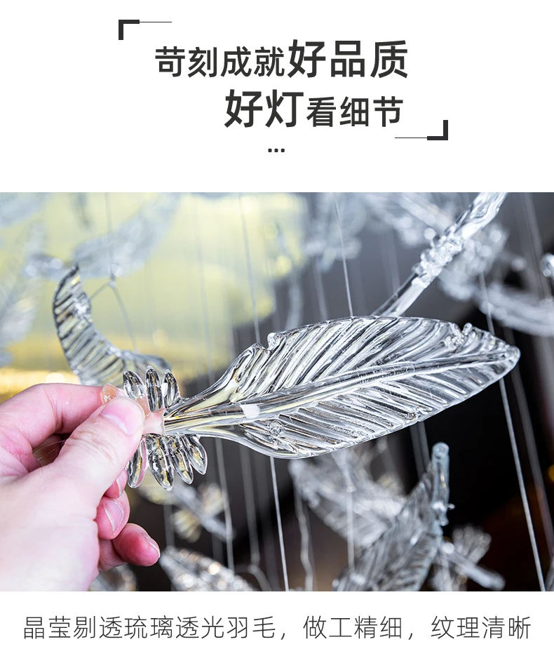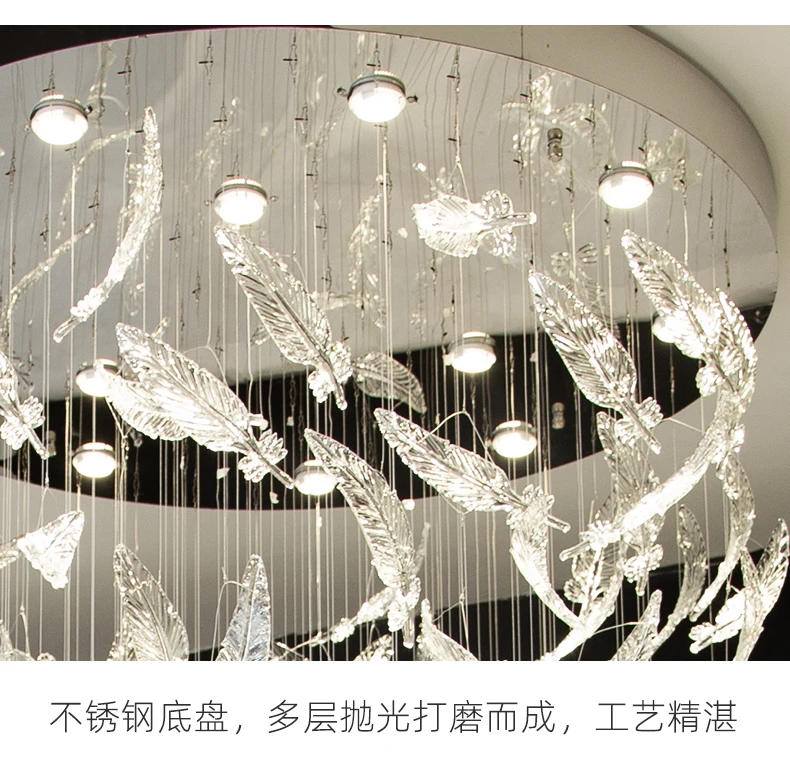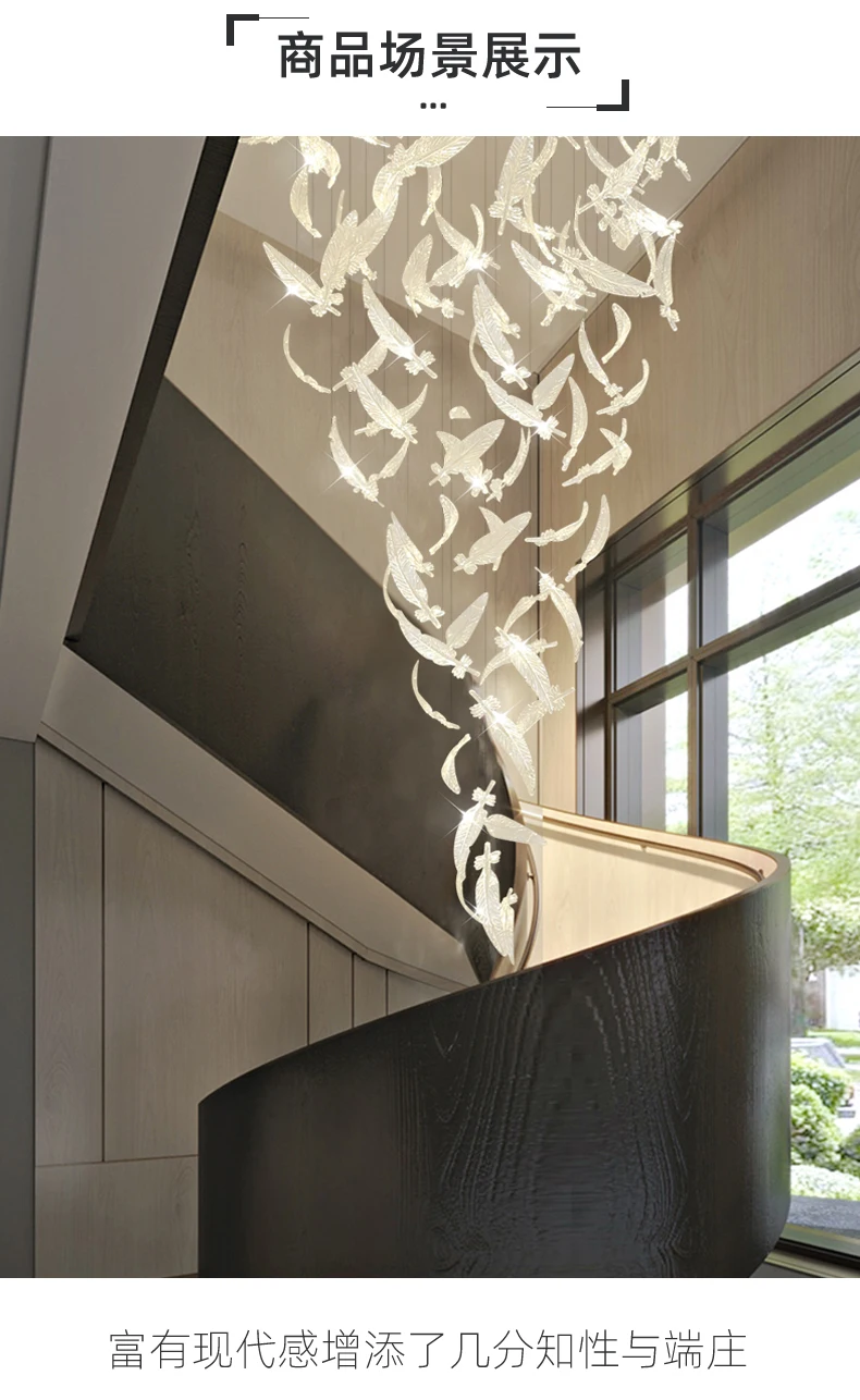 Light luxury villa staircase chandelier duplex building living room exhibition hall hotel sales department glass chandelier