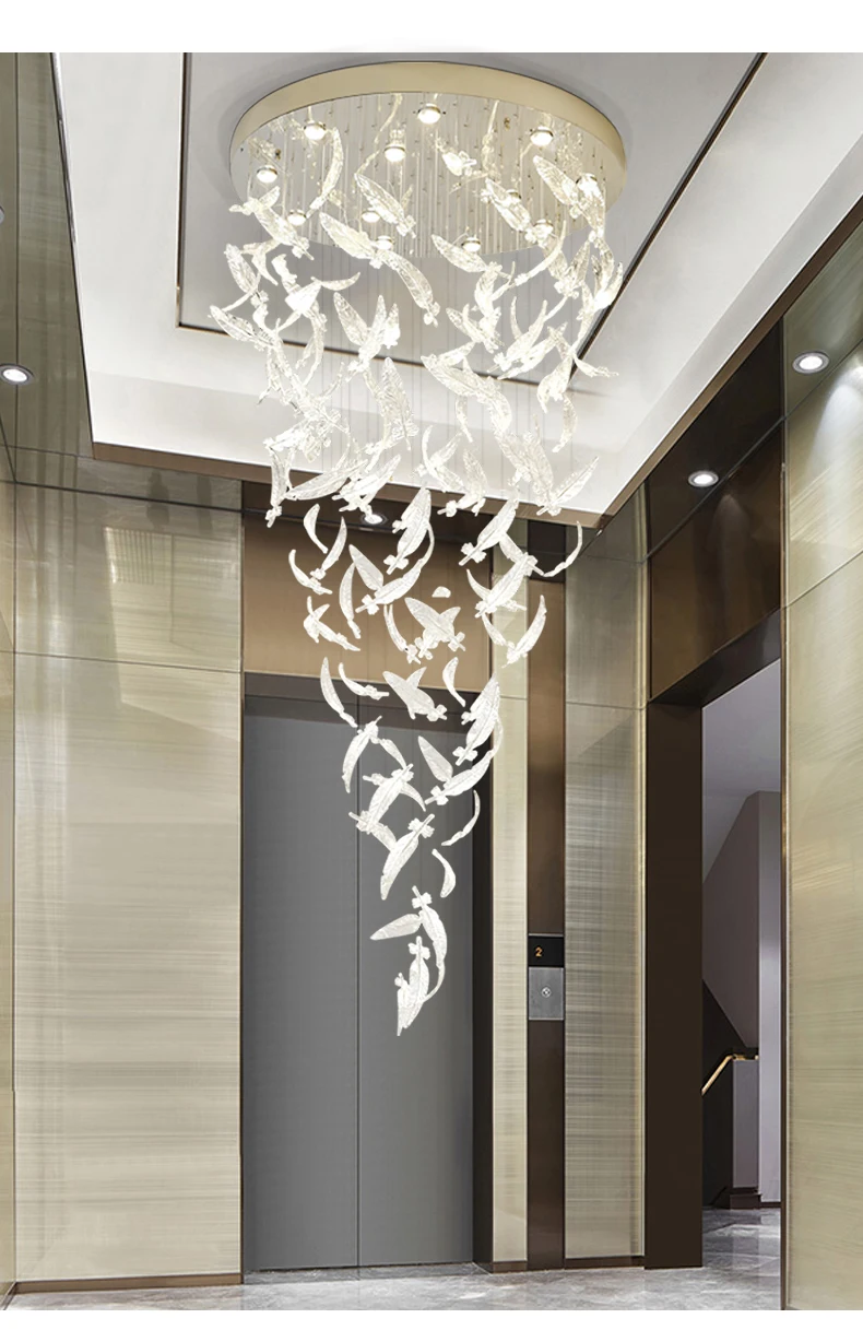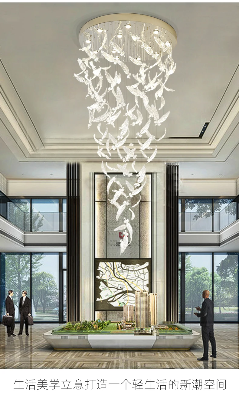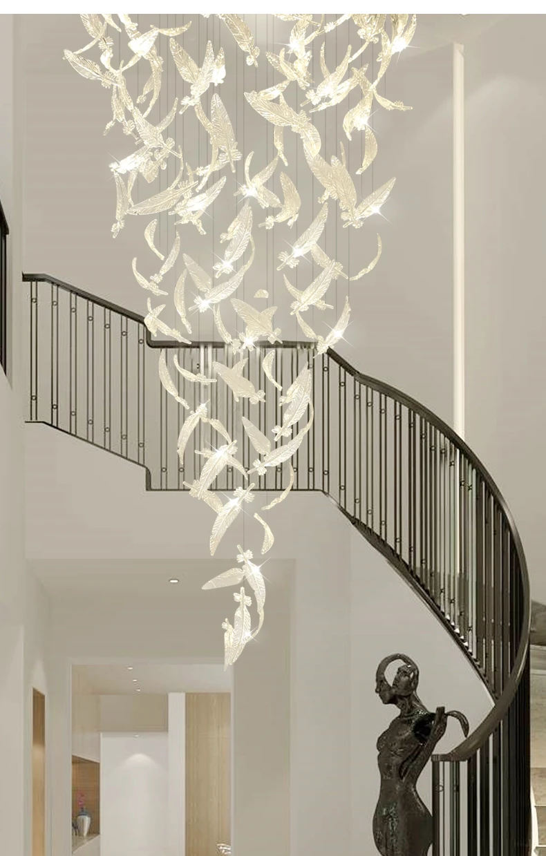Light luxury villa staircase chandelier duplex building living room exhibition hall hotel sales department glass chandelier