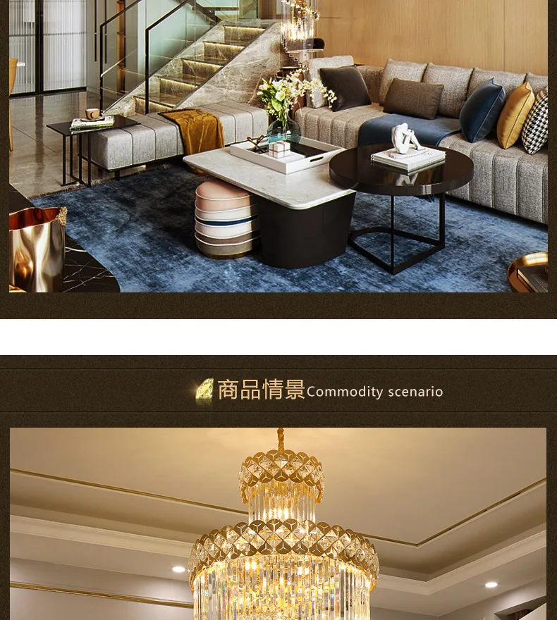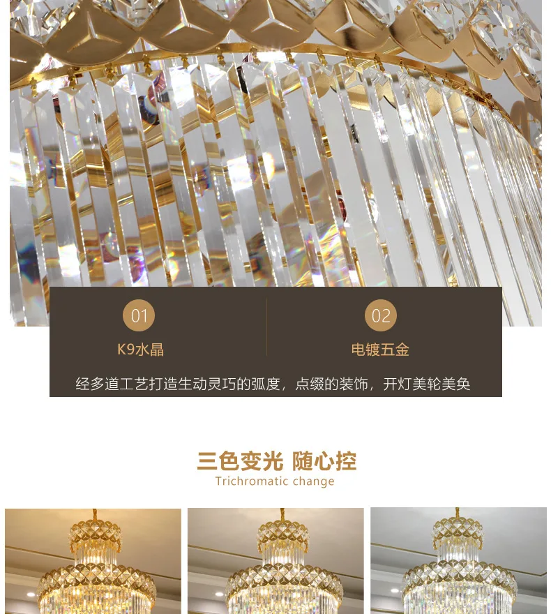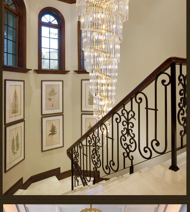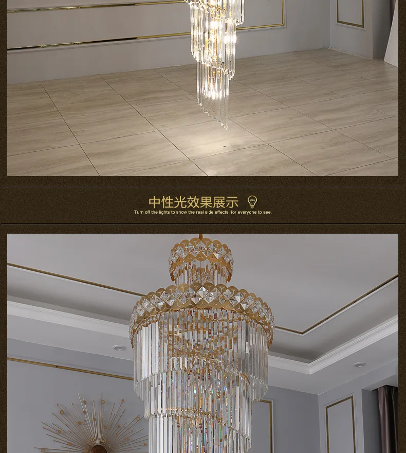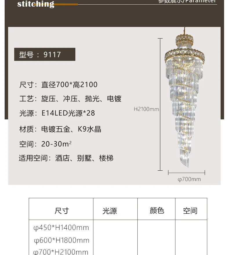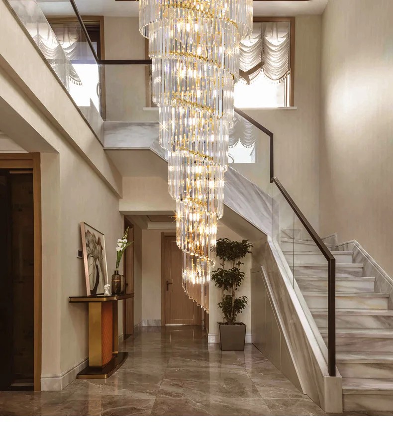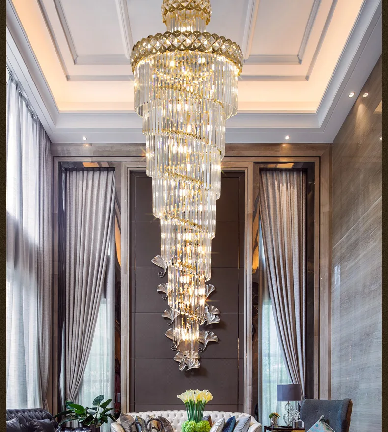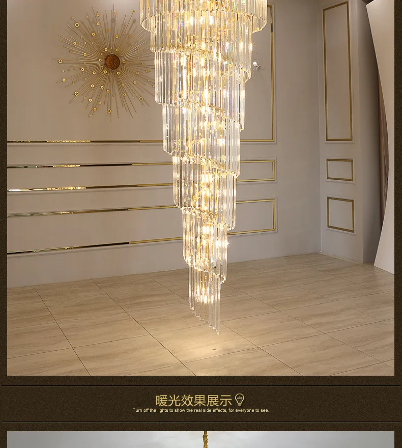 Living room chandelier, villa, middle floor, crystal lamp, light luxury, long chandelier of rotating stairs