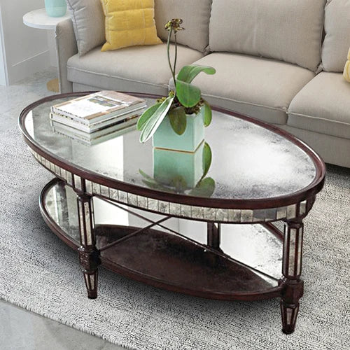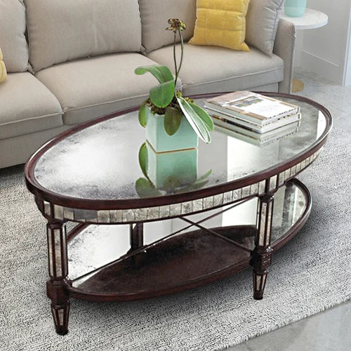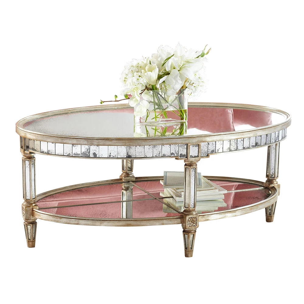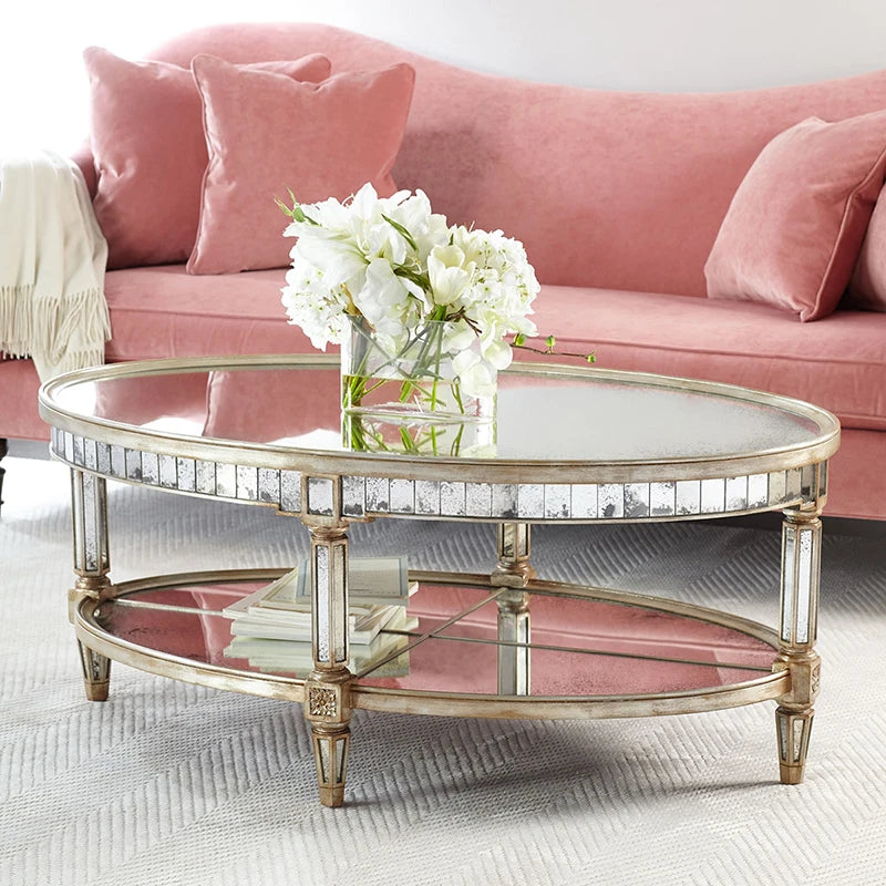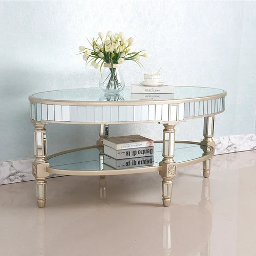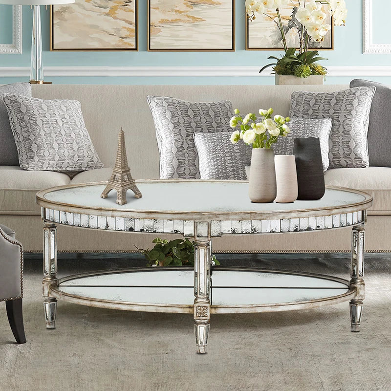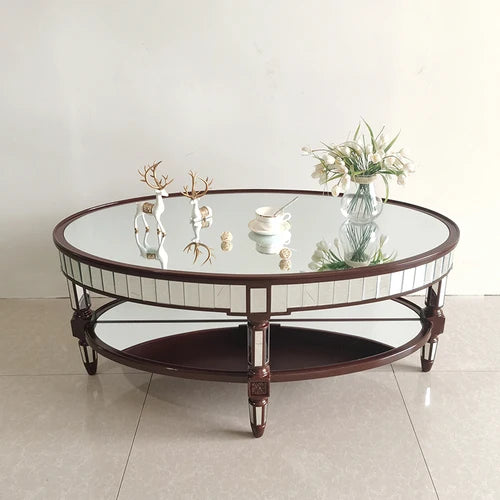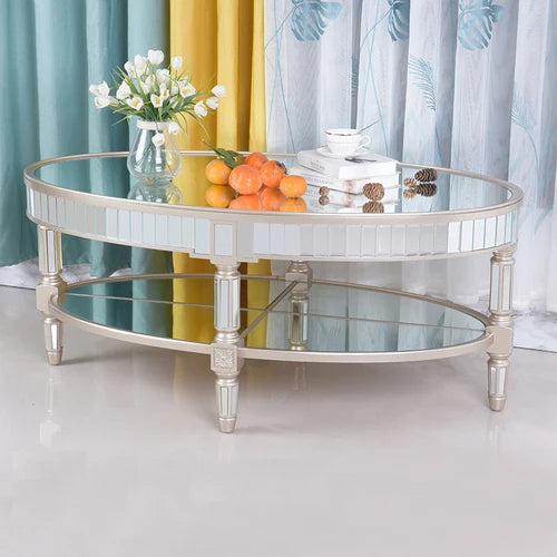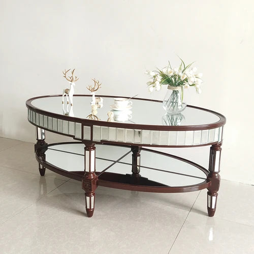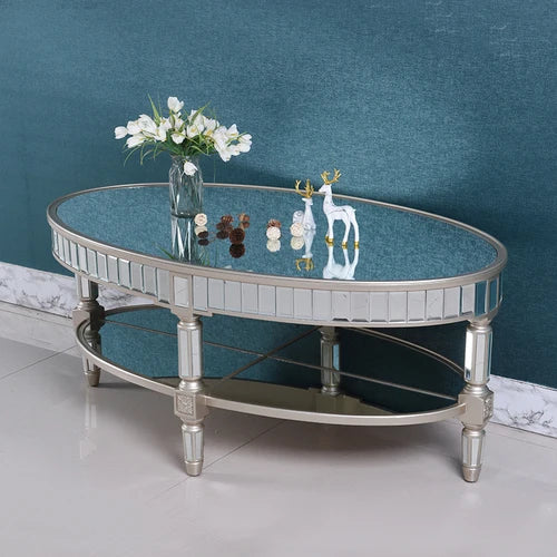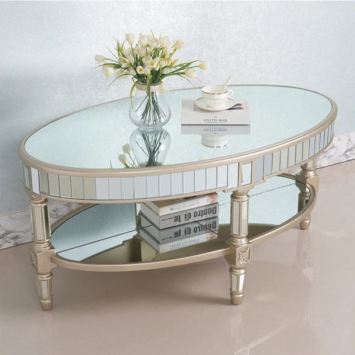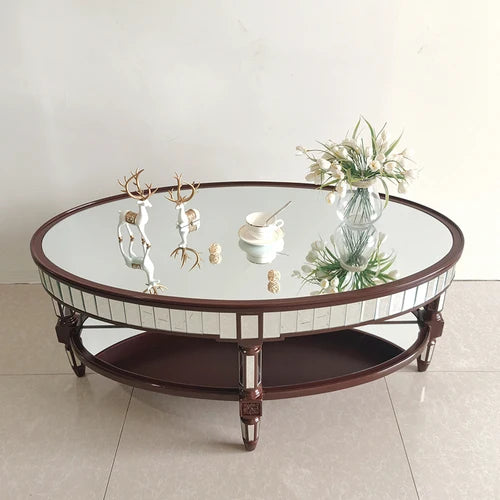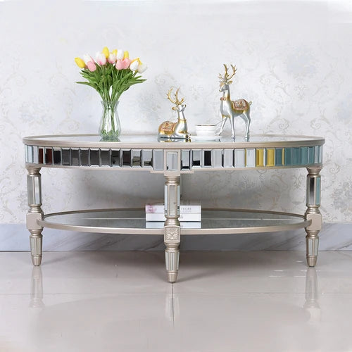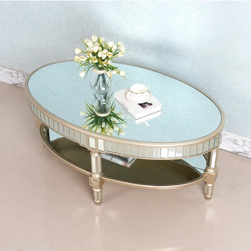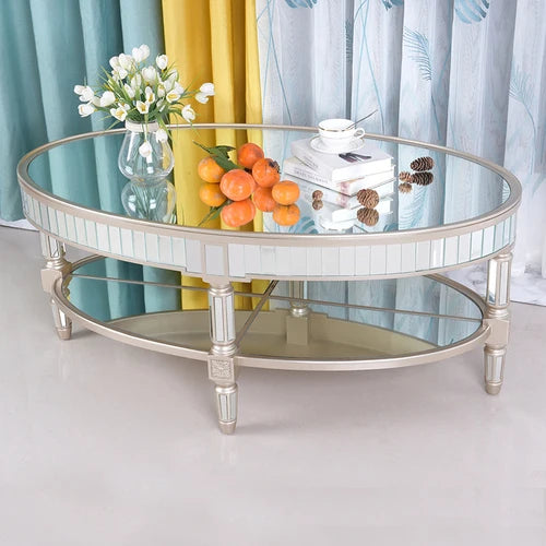 Living room coffee table Neoclassical sofa side table Small unit tea table Mirror glass oval coffee table