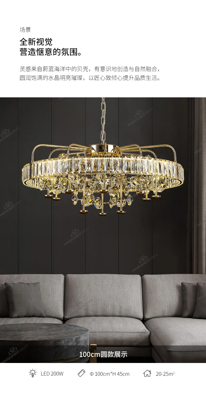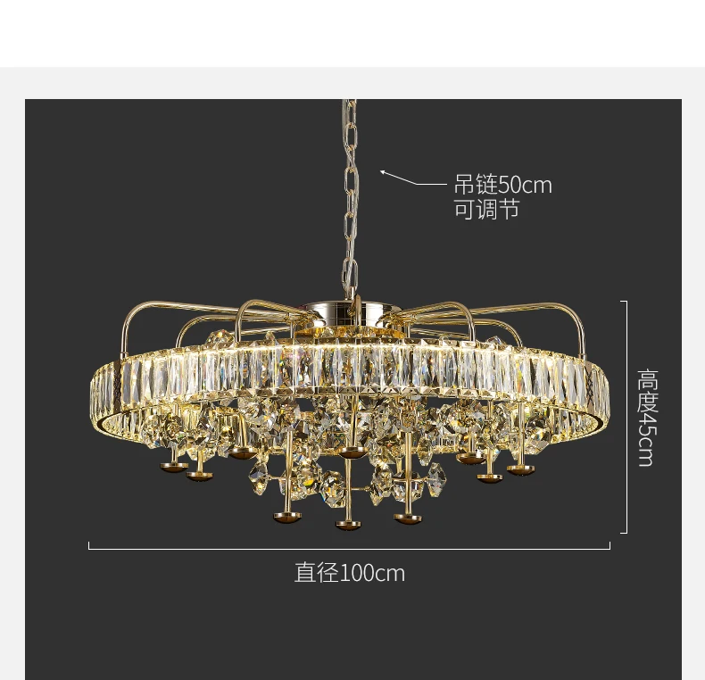 Living room crystal chandelier light luxury high-end atmosphere villa hall dining room bedroom lamp design