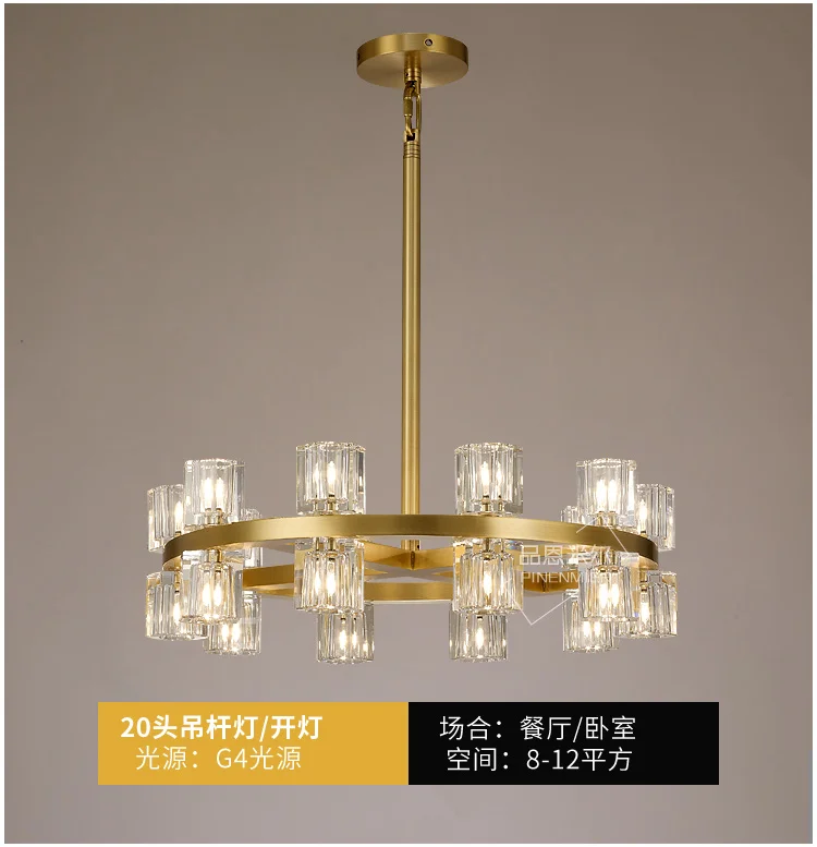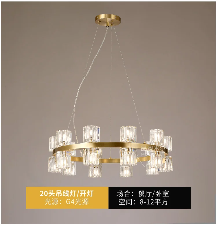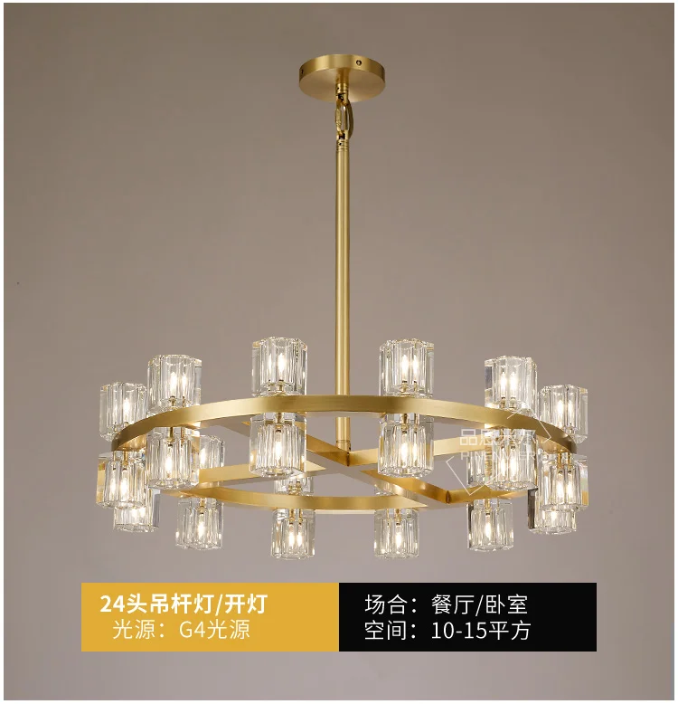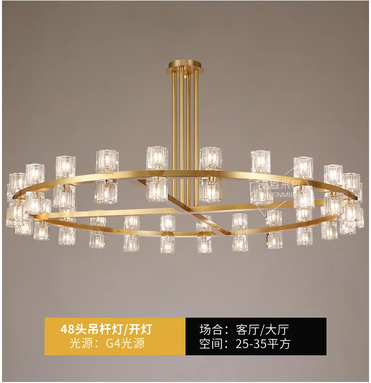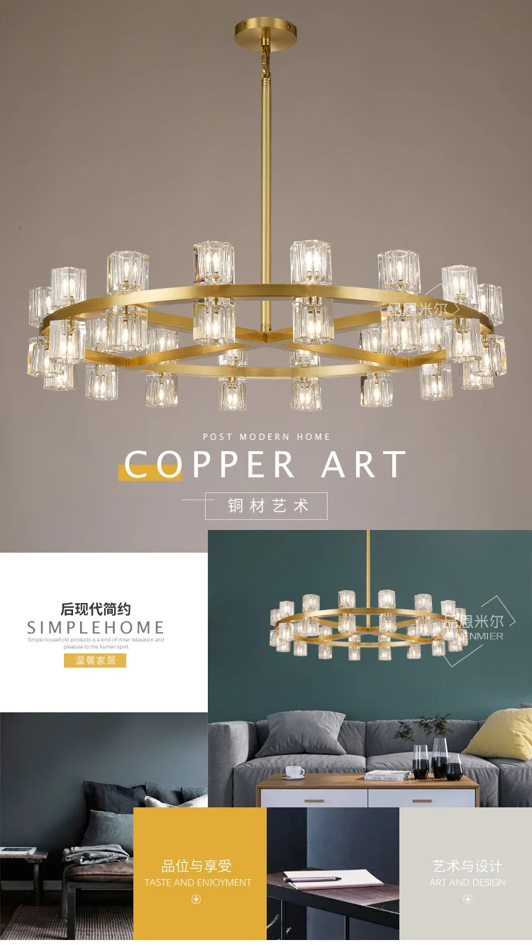Living room crystal chandelier post-modern simple high-end atmosphere villa restaurant American copper lamp luxury bedroom study