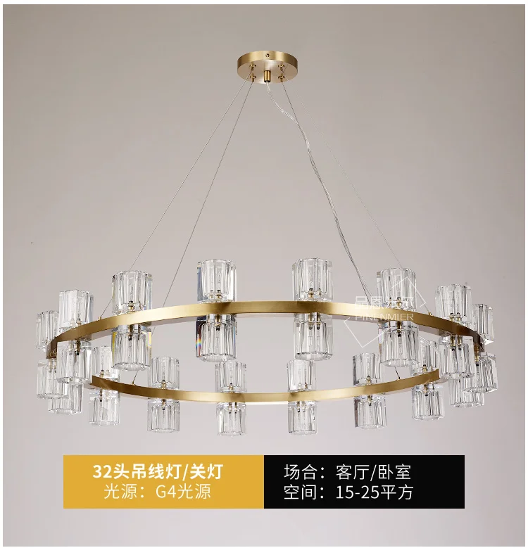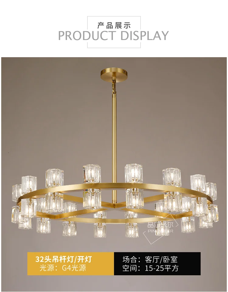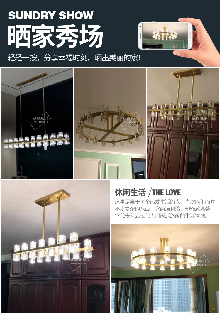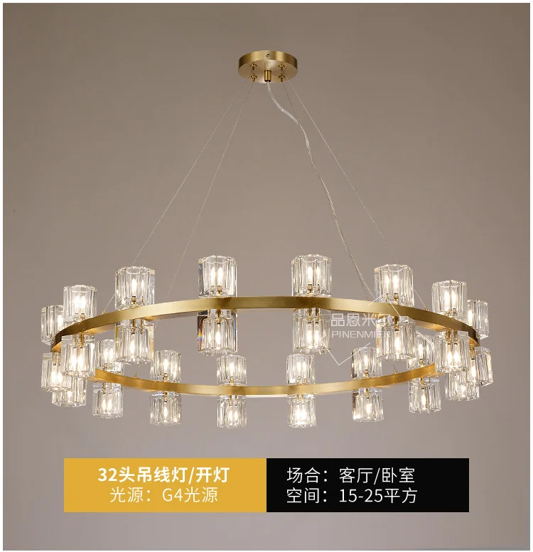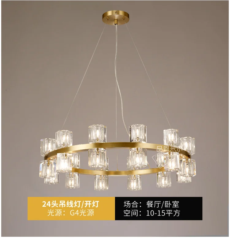 Living room crystal chandelier post-modern simple high-end atmosphere villa restaurant American copper lamp luxury bedroom study
