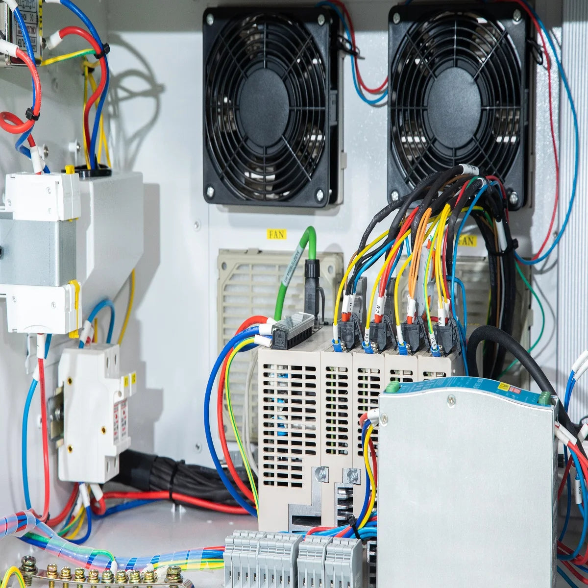 Full keyboard+touch screen, mode select switch, safety switch, emergency switch