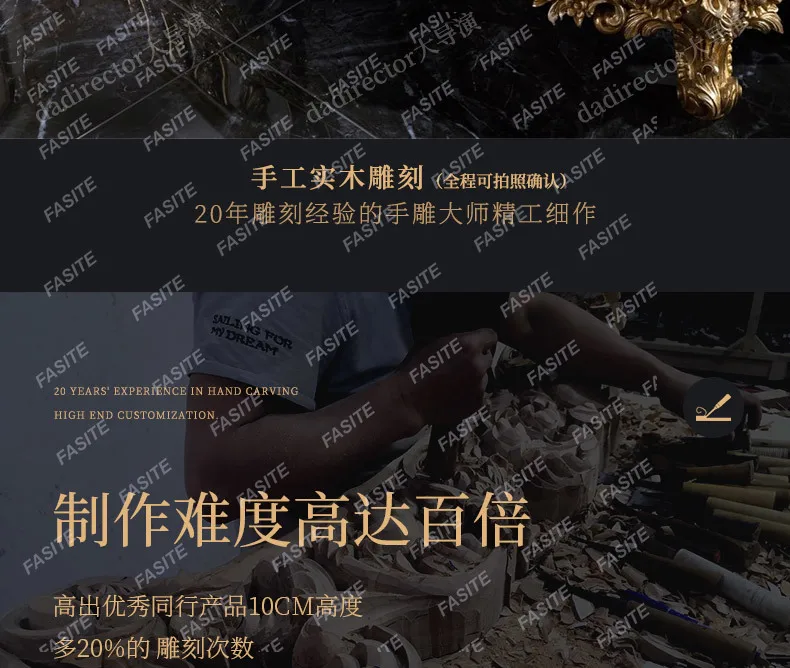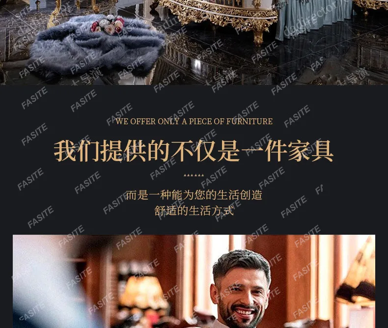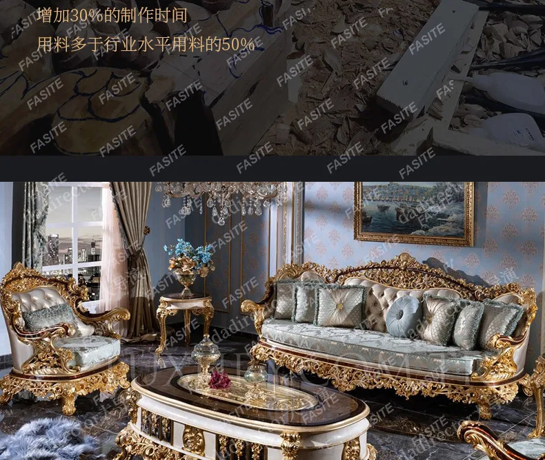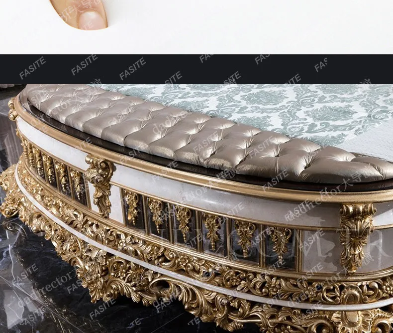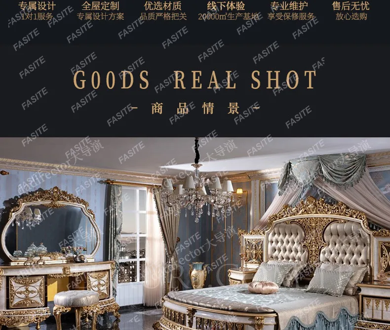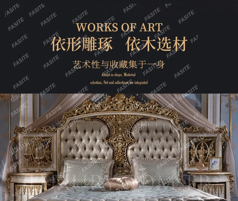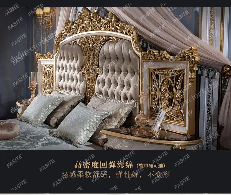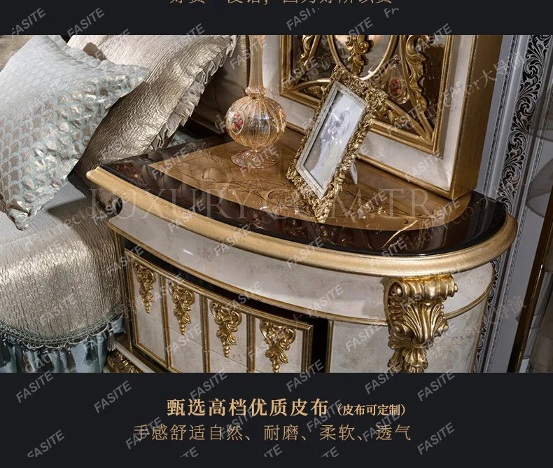 Luxurious European double bed 2m French court solid wood fabric wedding bed Large-sized villa main bed.