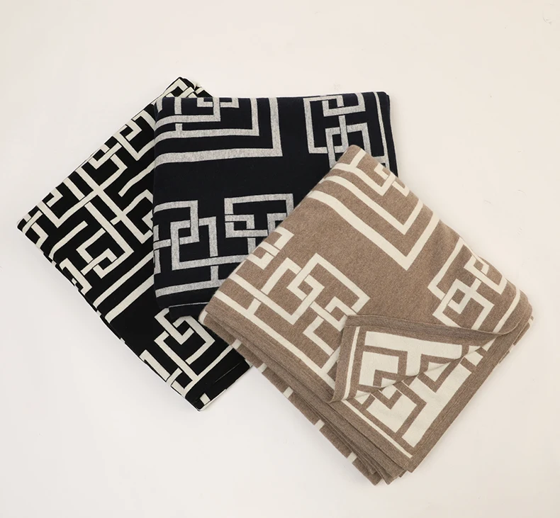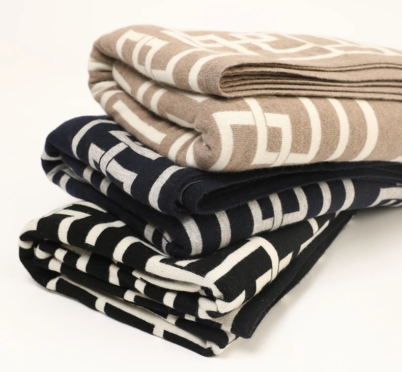 Luxury 100% Cashmere Throws custom warm knit bed luxury soft living room blankets wholesale