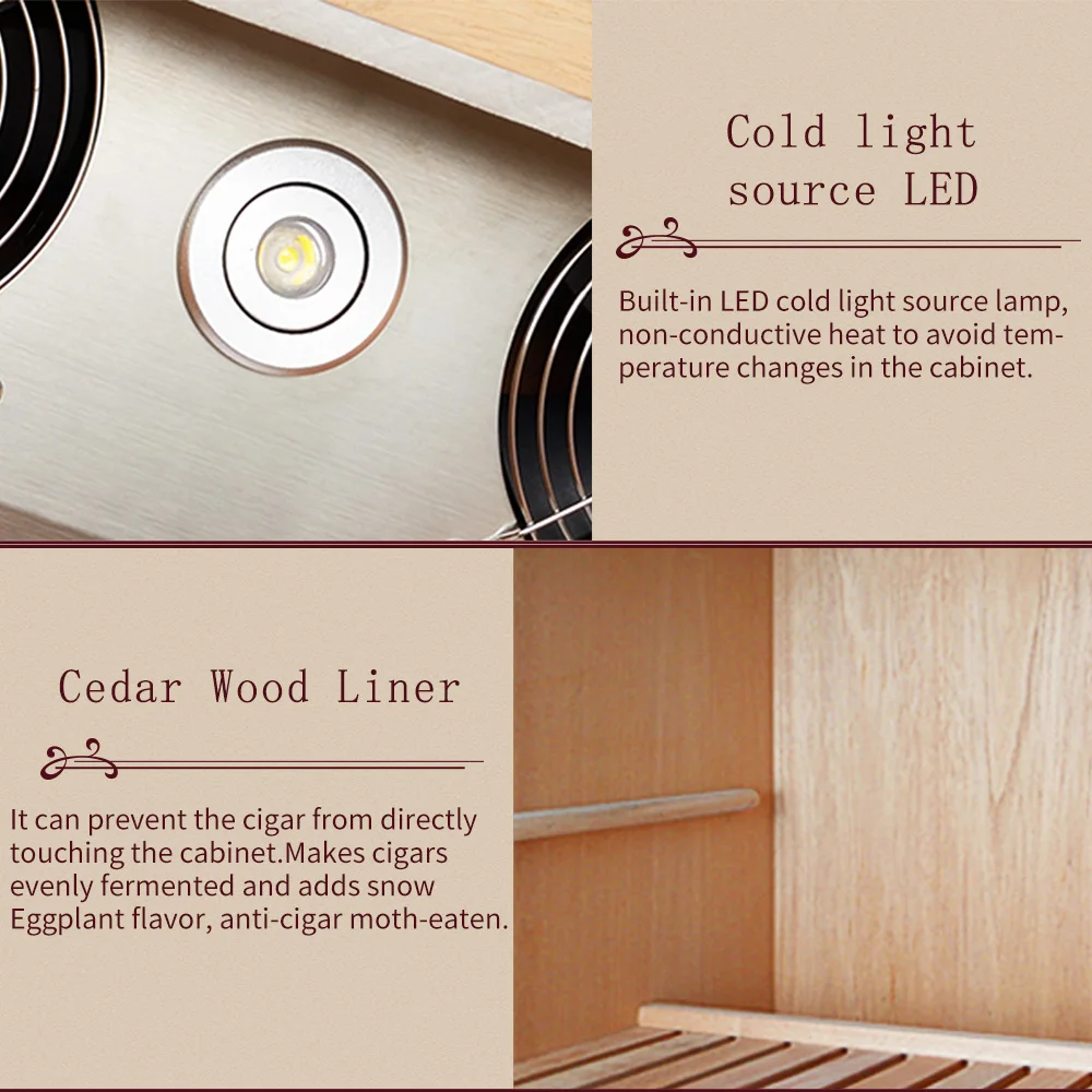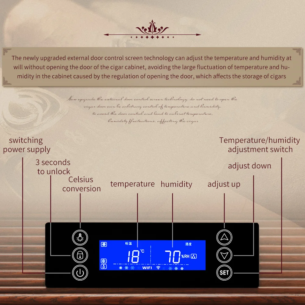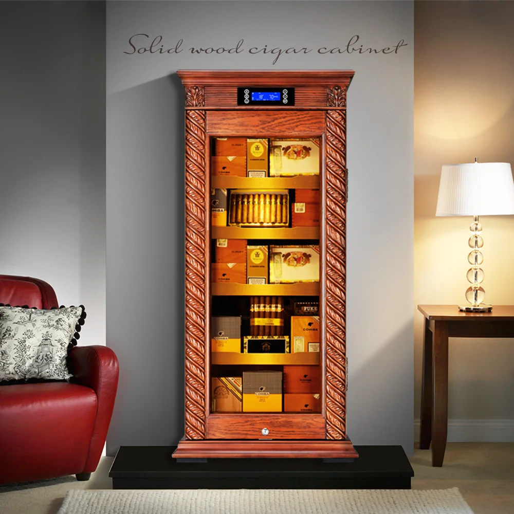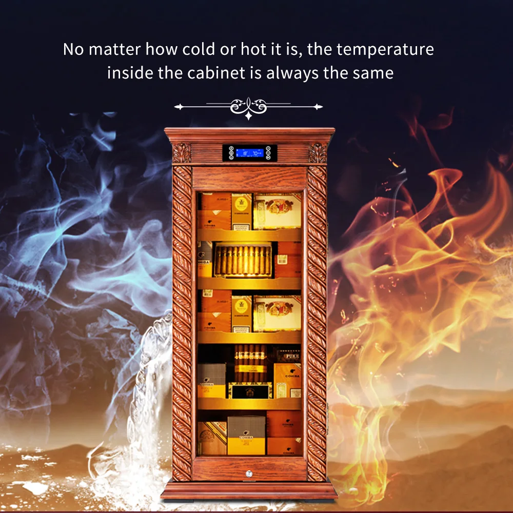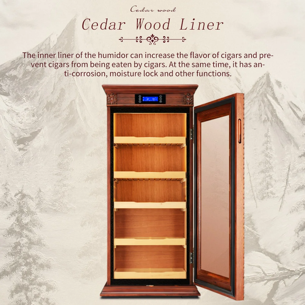 Luxury Cigar Humidor Cooler Cedar Wood Shelf Oak Solid Wood Cabinet Intelligent Control Humidity Temperature With WiFi Function