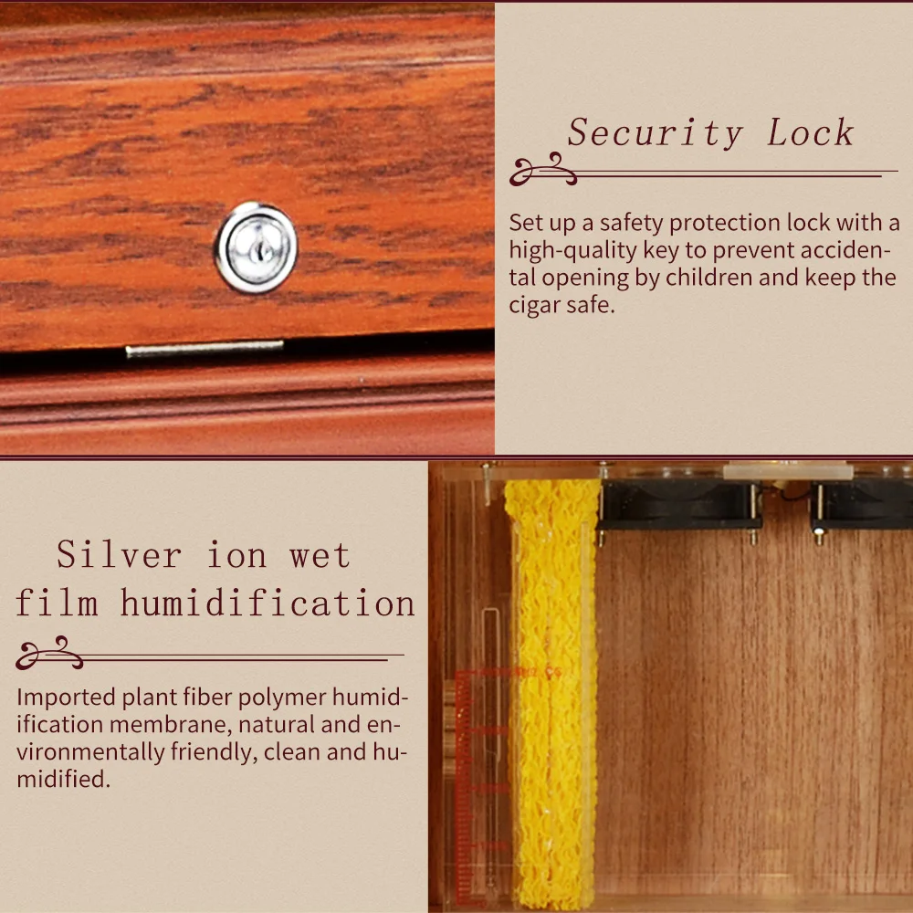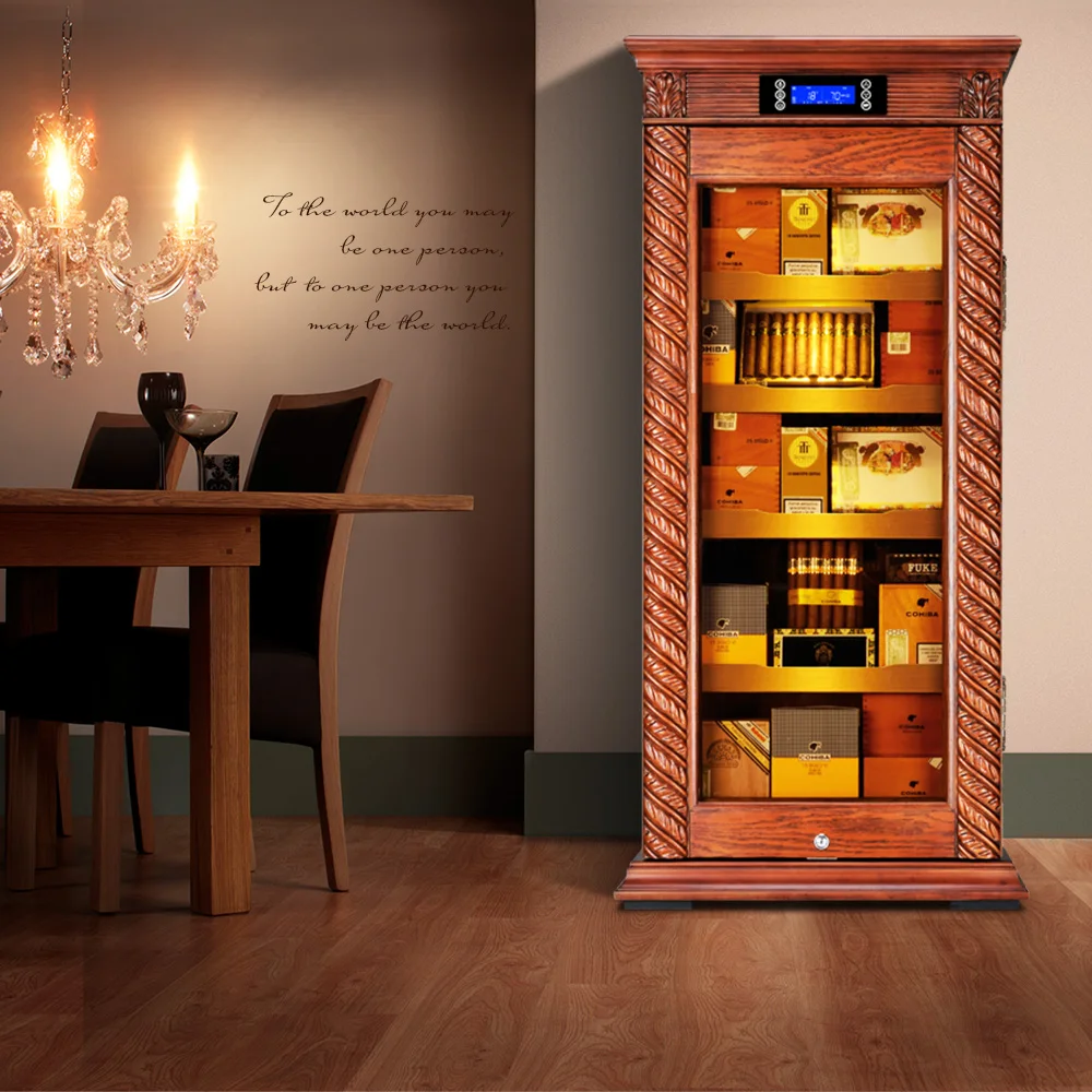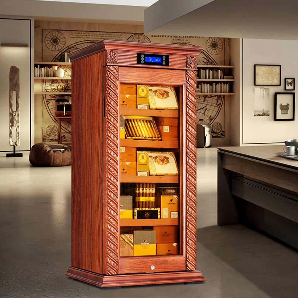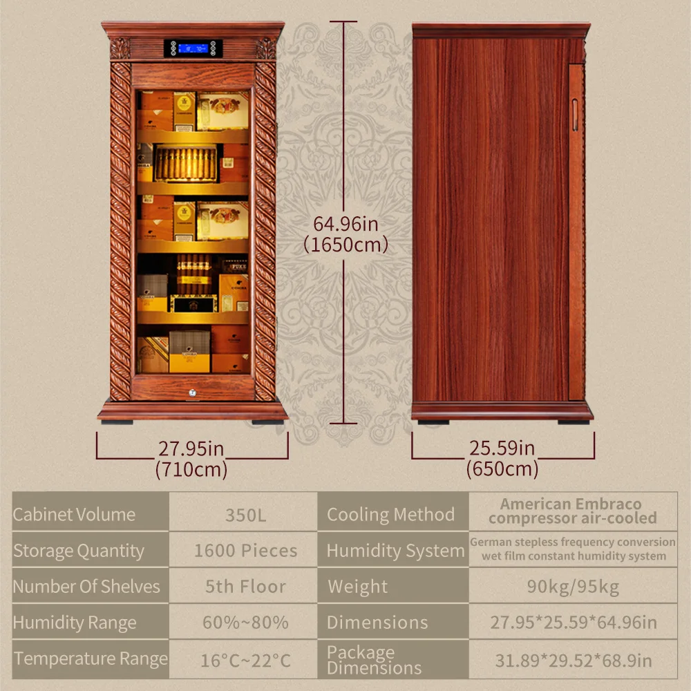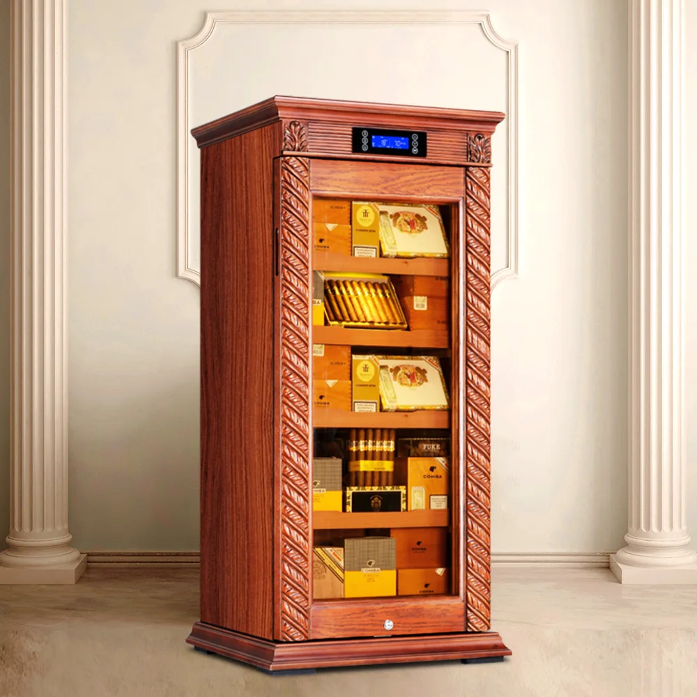 Luxury Cigar Humidor Cooler Cedar Wood Shelf Oak Solid Wood Cabinet Intelligent Control Humidity Temperature With WiFi Function