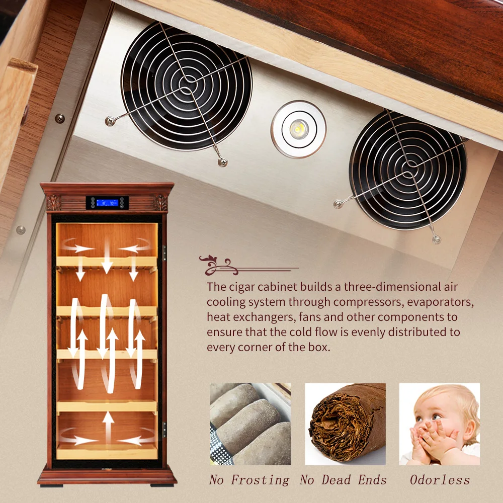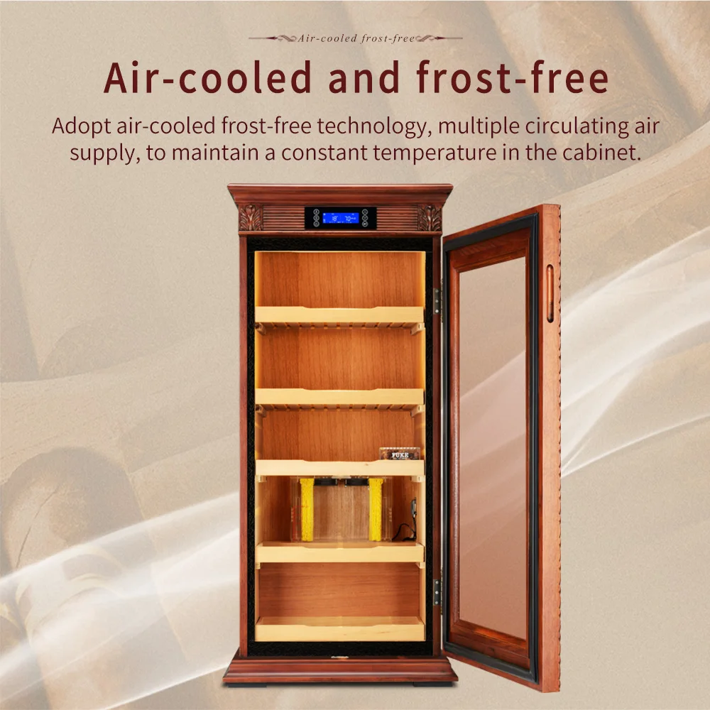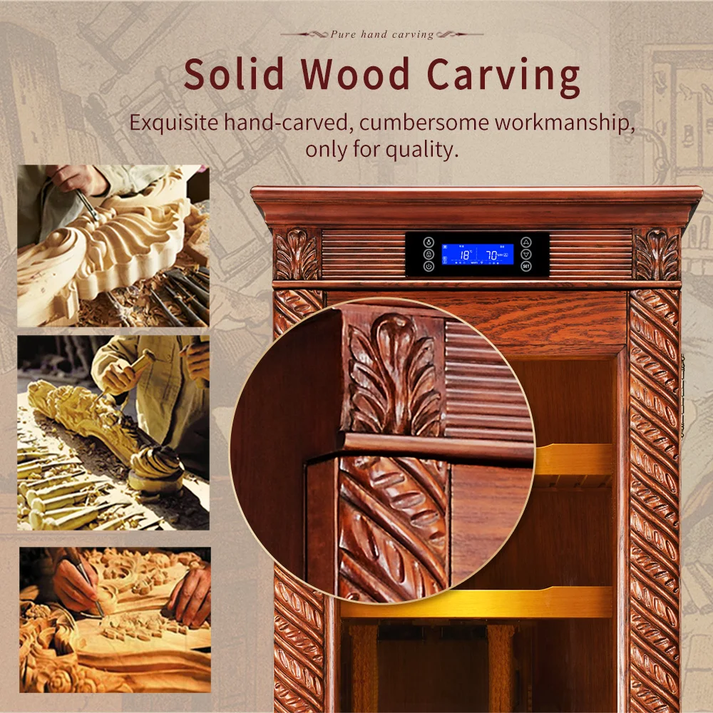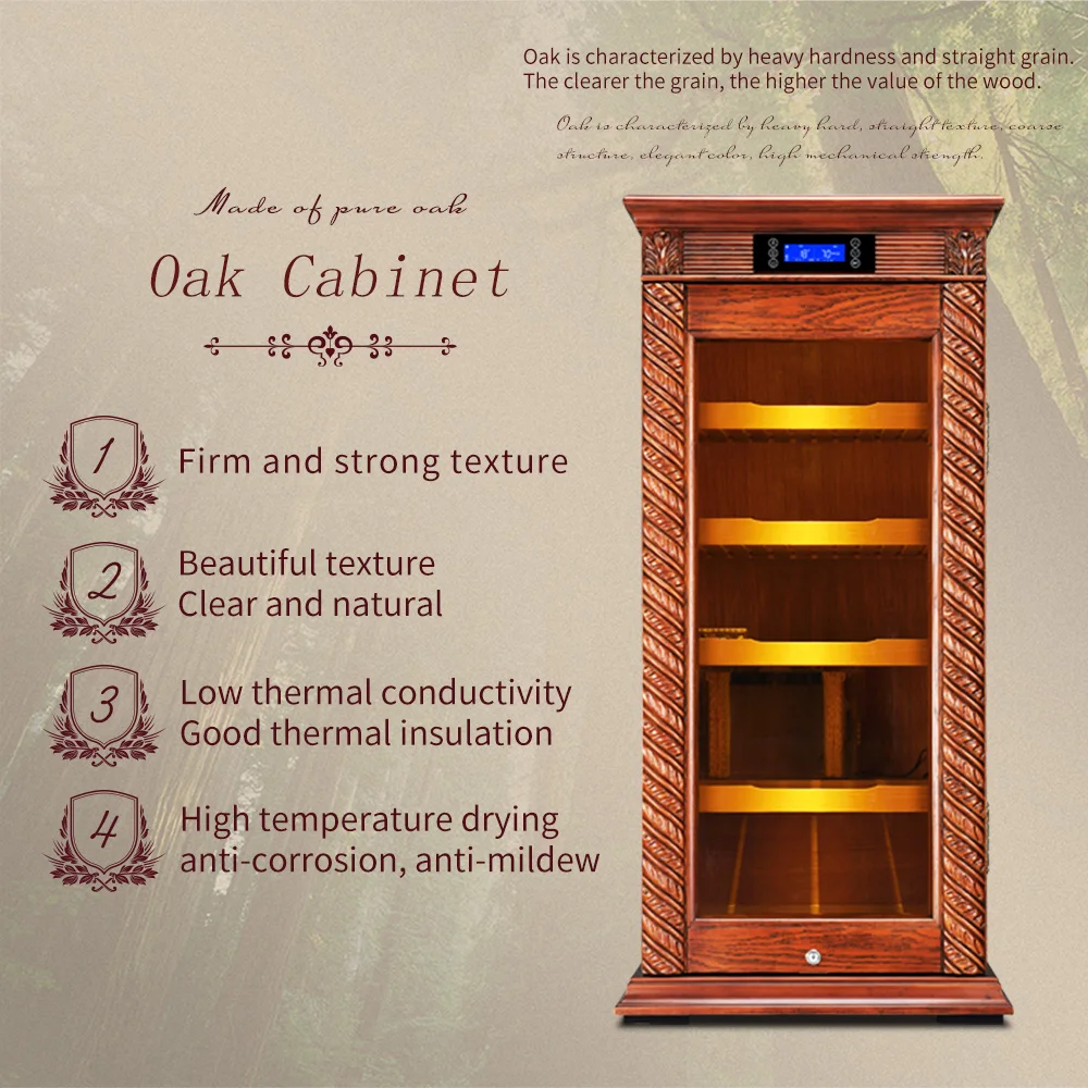 Luxury Cigar Humidor Cooler Cedar Wood Shelf Oak Solid Wood Cabinet Intelligent Control Humidity Temperature with Wi-Fi Function KF-339C