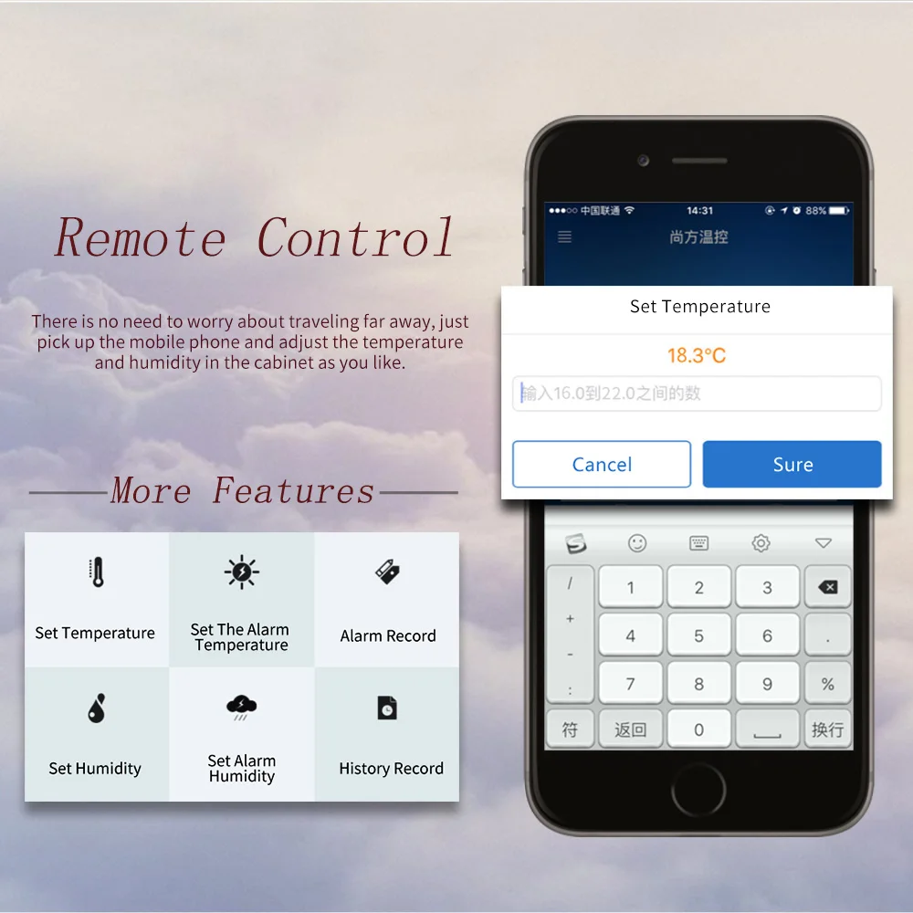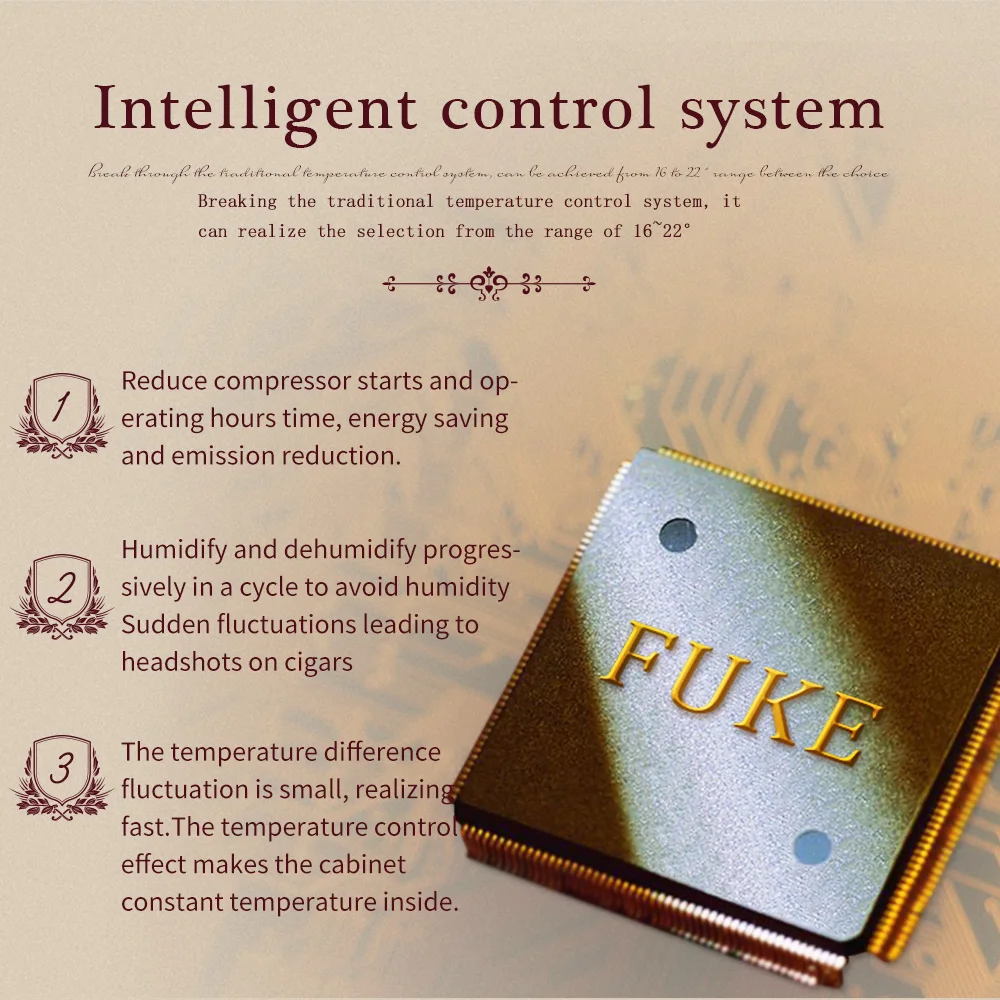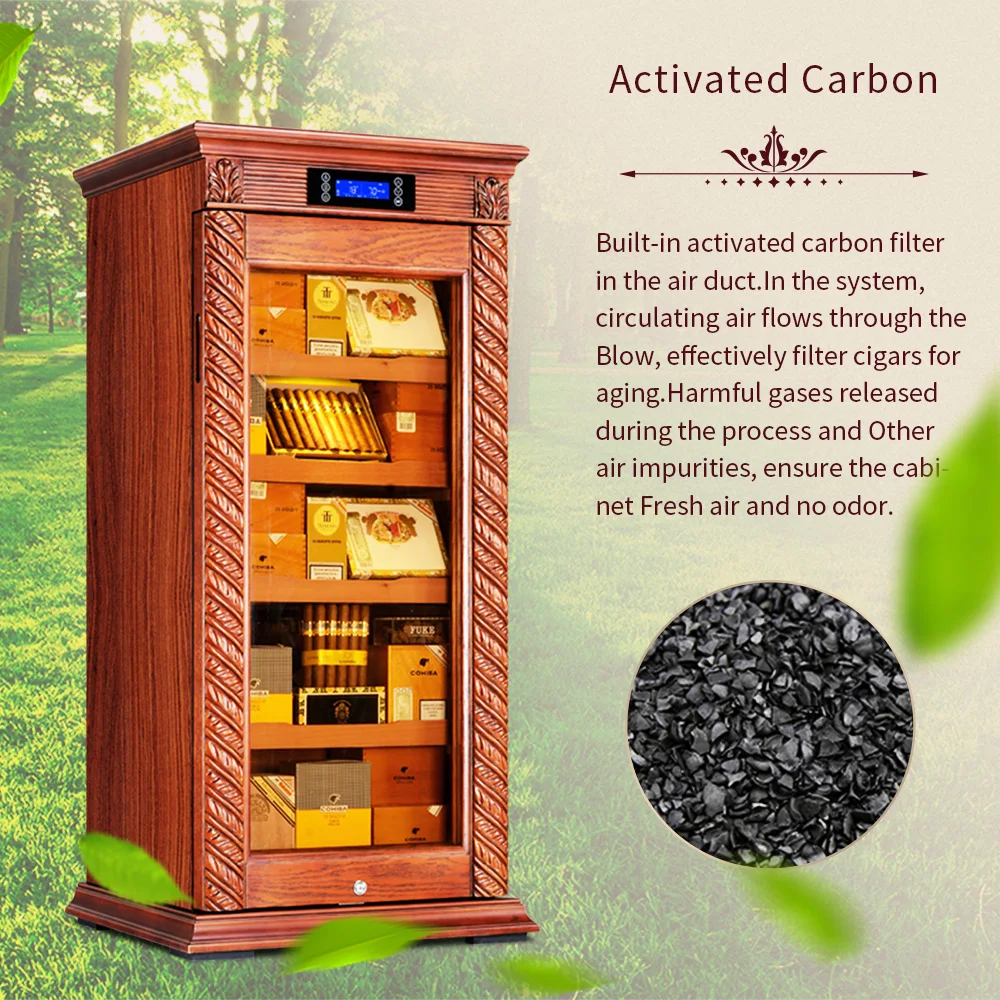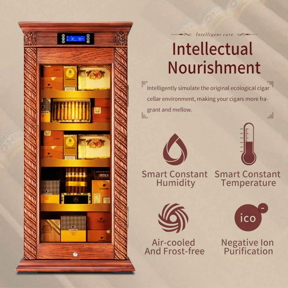 Luxury Cigar Humidor Cooler Cedar Wood Shelf Oak Solid Wood Cabinet Intelligent Control Humidity Temperature with Wi-Fi Function KF-339C