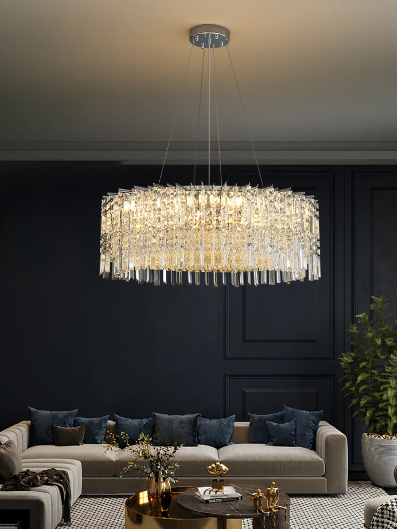 Luxury crystal chandelier living room LED modern villa decorative lighting round island fixture