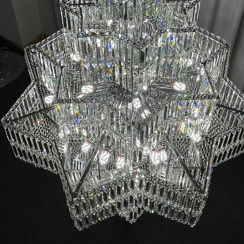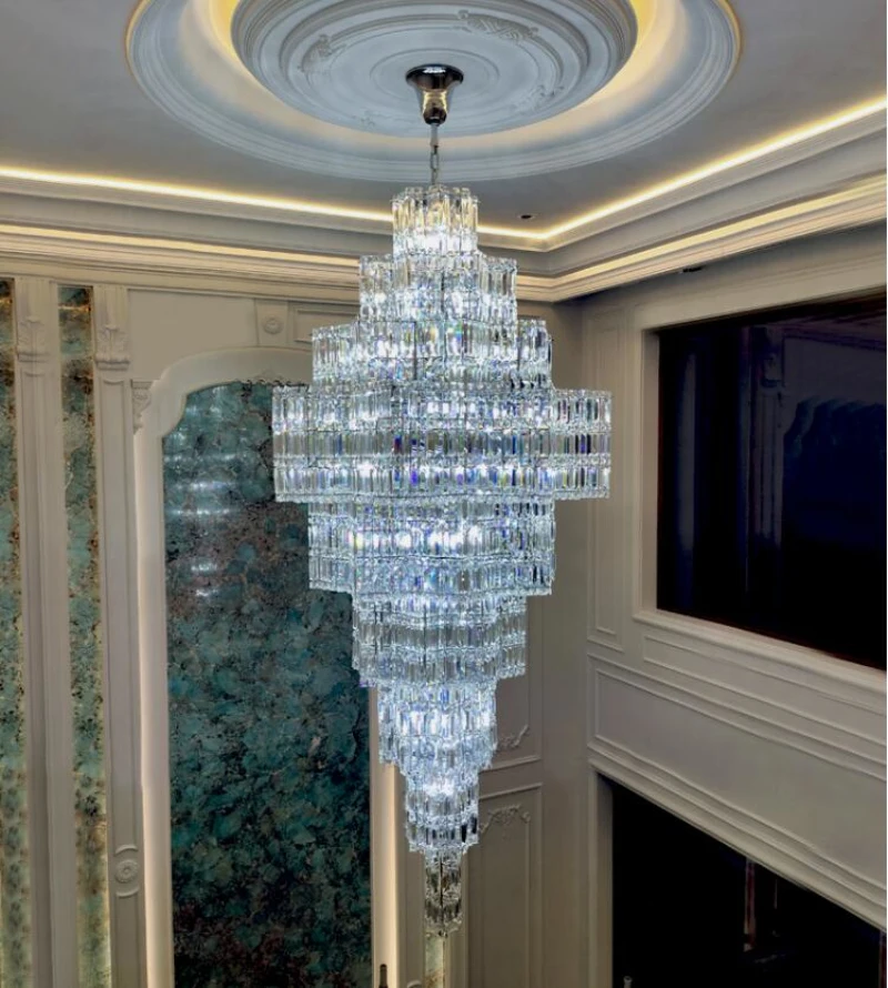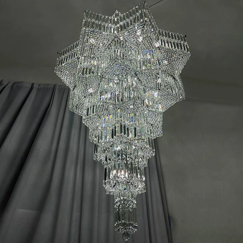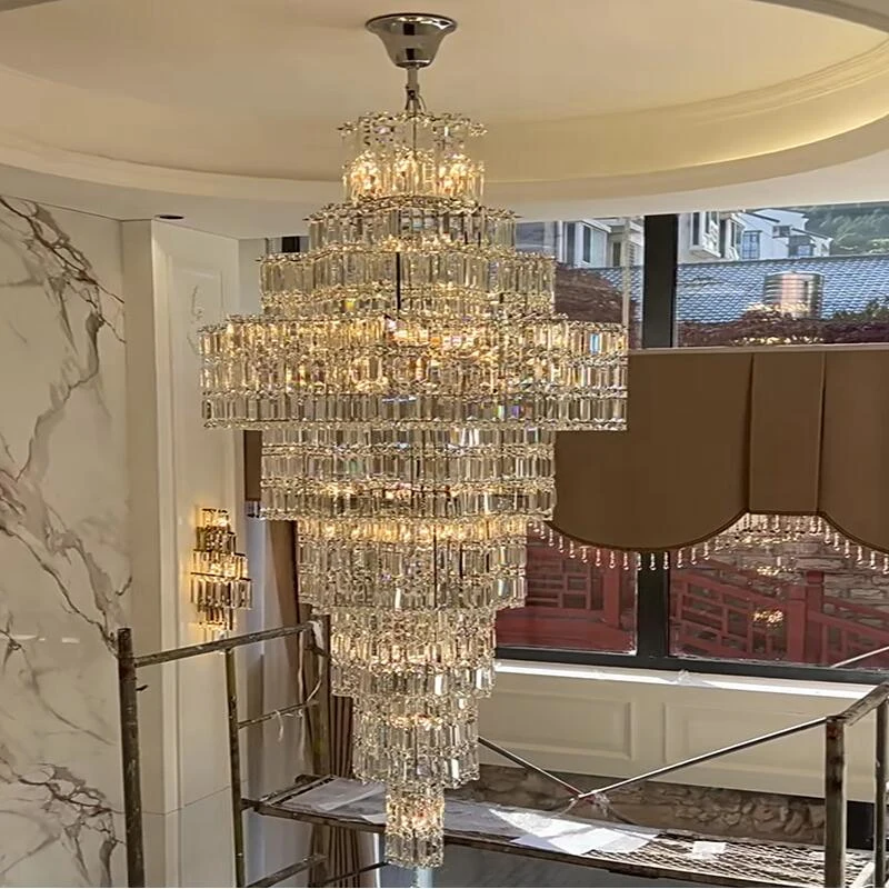 Luxury crystal chandelier modern staircase long chandelier villa lobby decor custom lighting