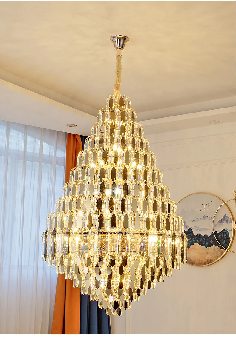 Luxury Crystal Chandelier Villa Duplex Staircase Living Room Ceiling Pendant Lights Modern Home Decoration New Led Gloss Lamps